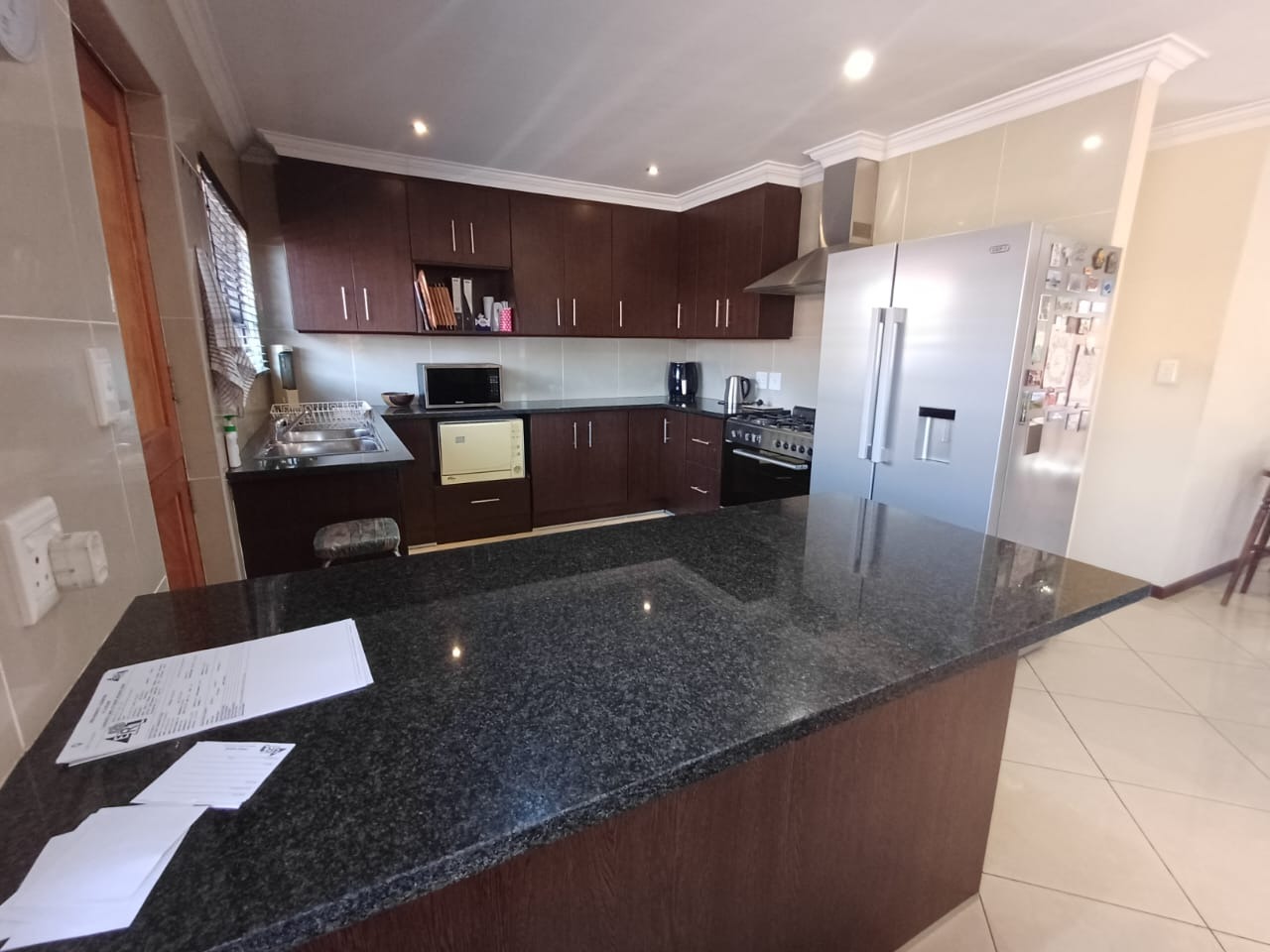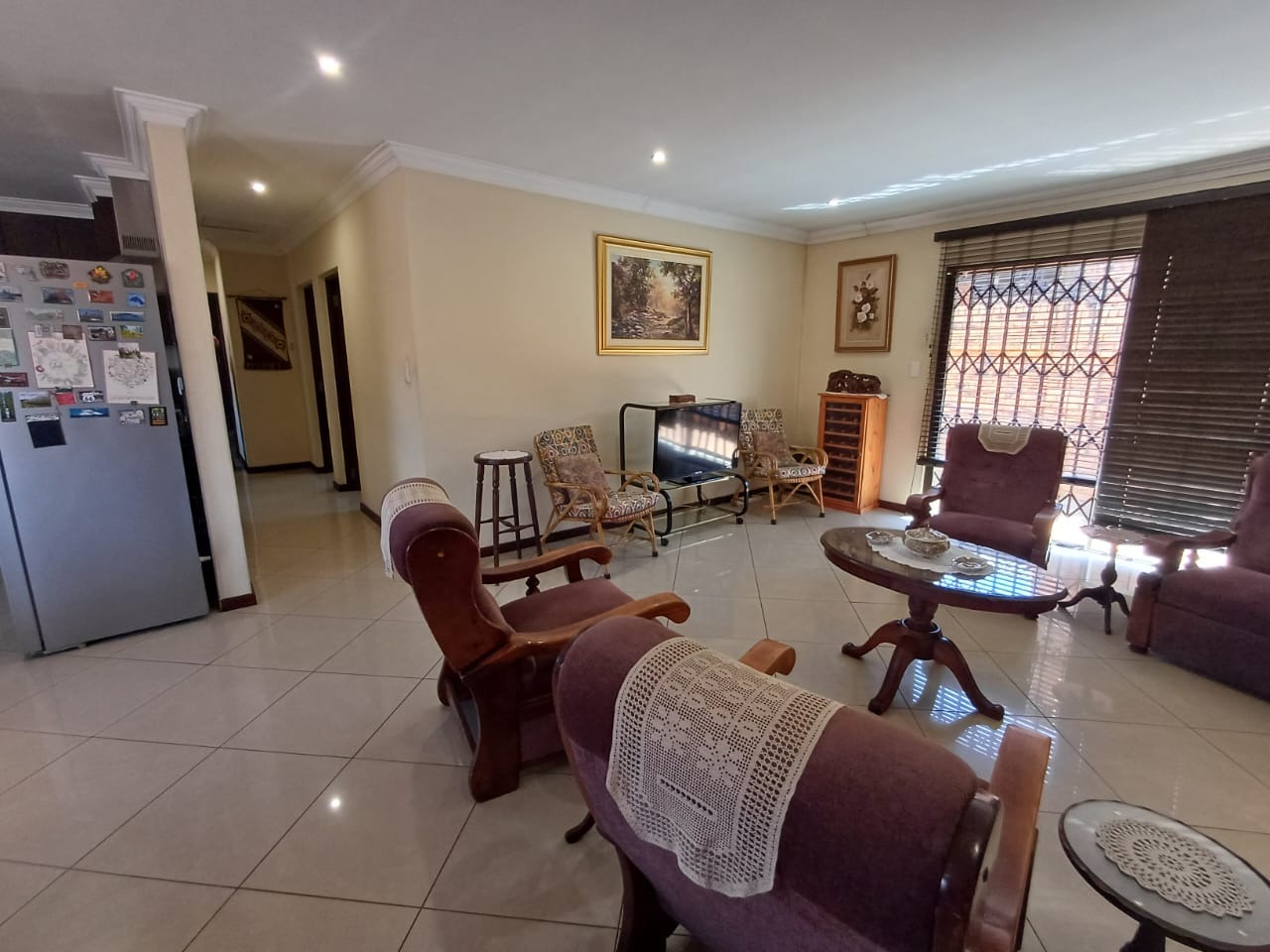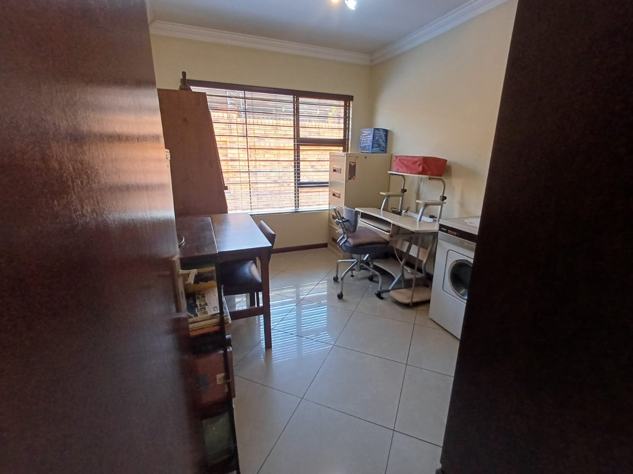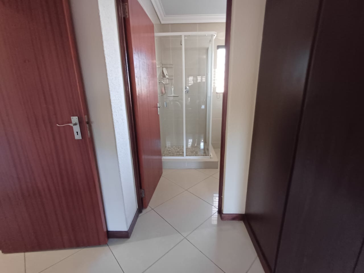 Security is a priority, with features such as electric fencing, burglar bars, a security gate, and an intercom system, all within a totally walled perimeter, providing peace of mind. This home also embraces sustainable living with solar panels, a battery inverter, and a solar geyser, contributing to energy efficiency and reduced utility costs.