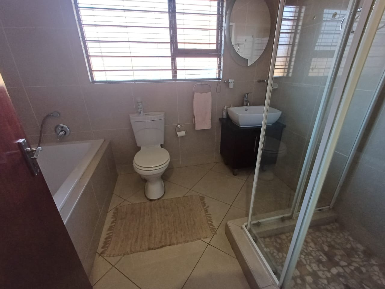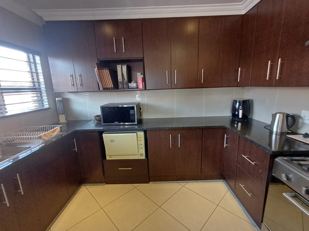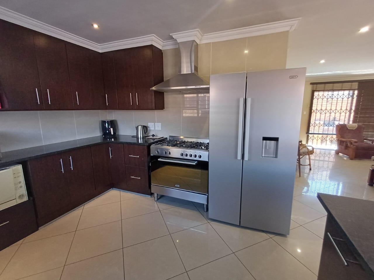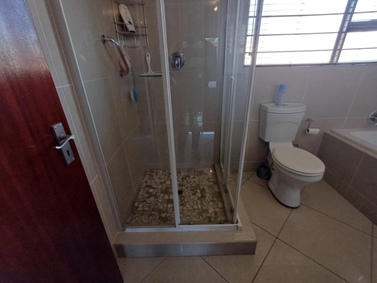 Security is a priority, with features such as electric fencing, burglar bars, a security gate, and an intercom system, all within a totally walled perimeter, providing peace of mind. This home also embraces sustainable living with solar panels, a battery inverter, and a solar geyser, contributing to energy efficiency and reduced utility costs.