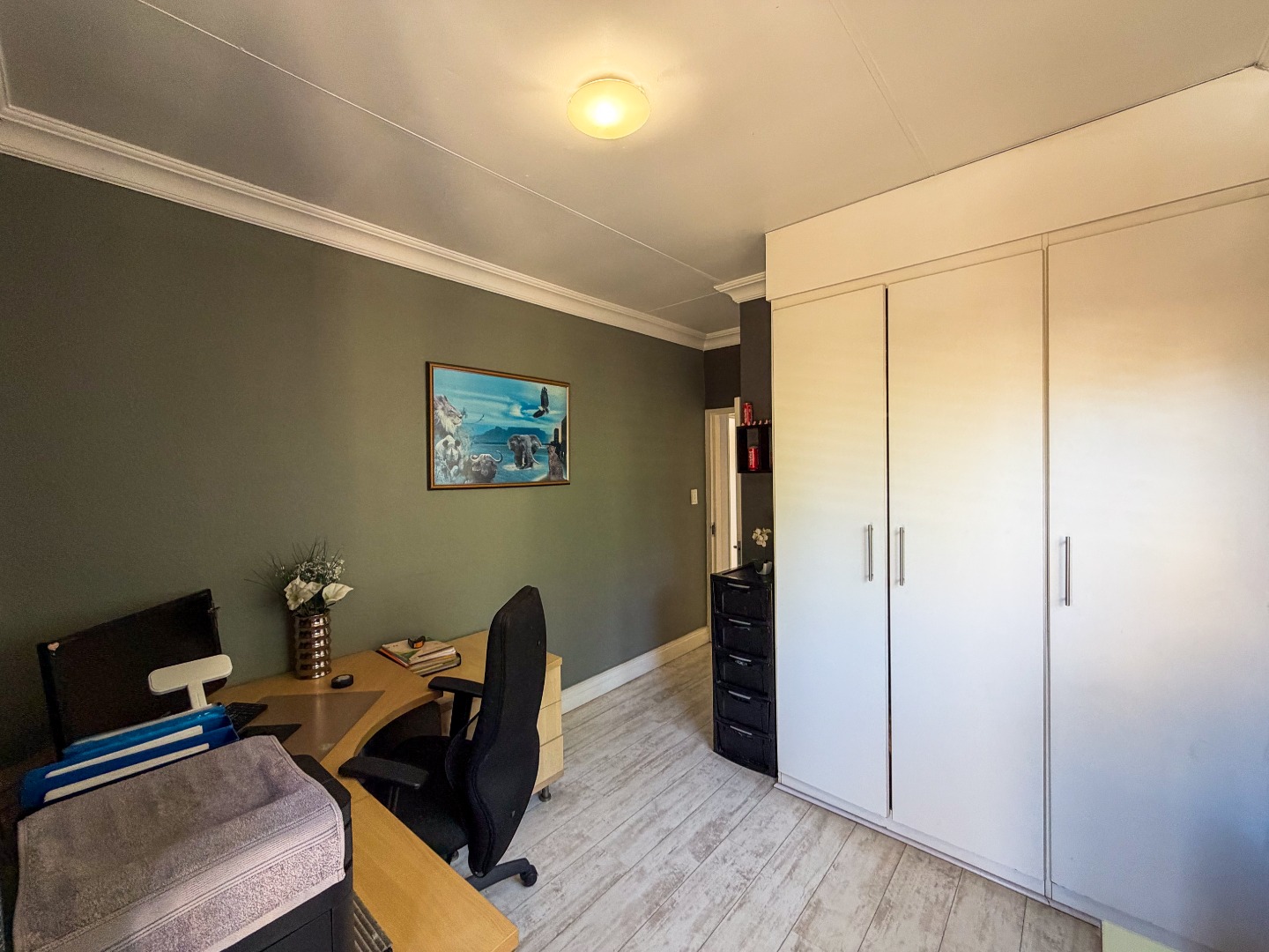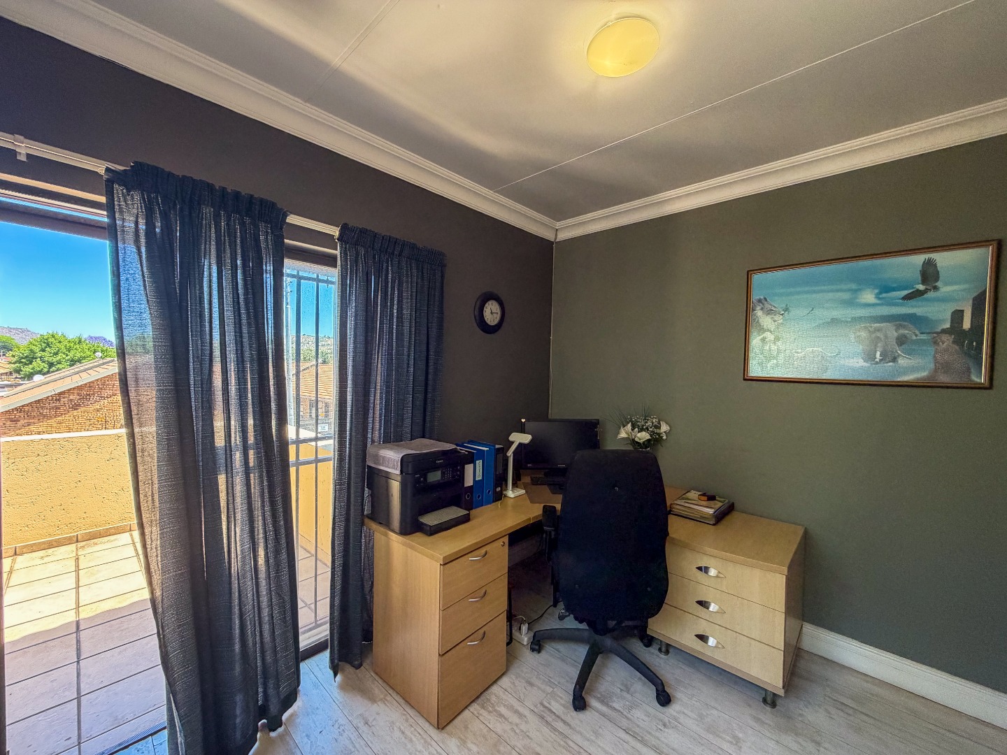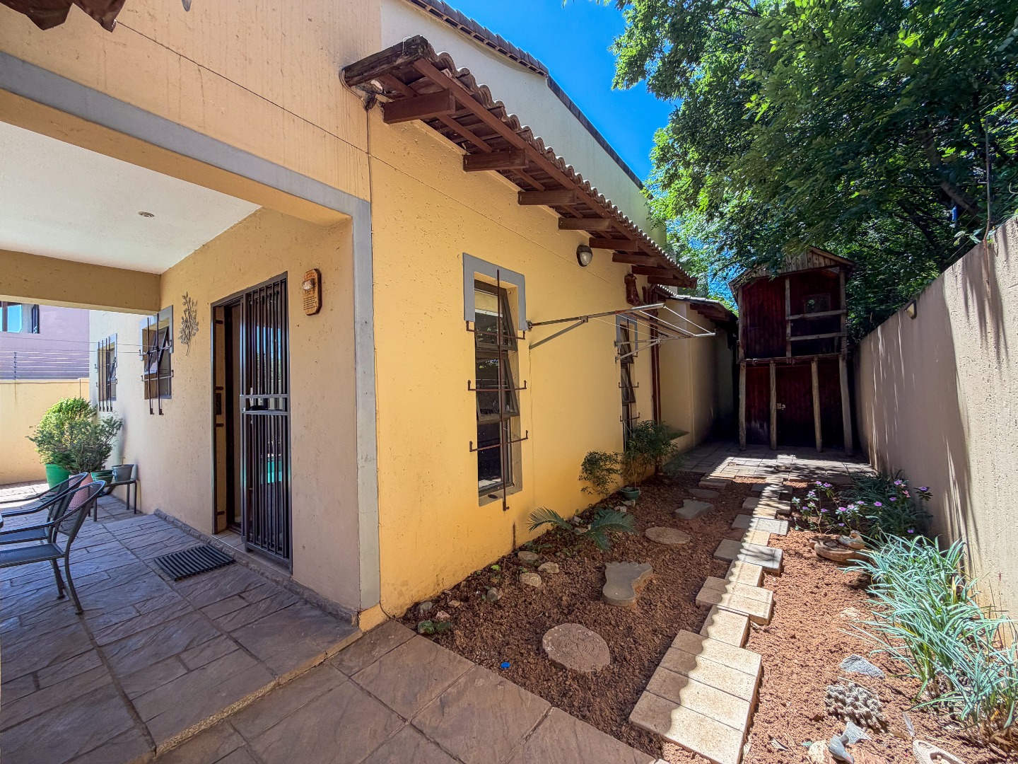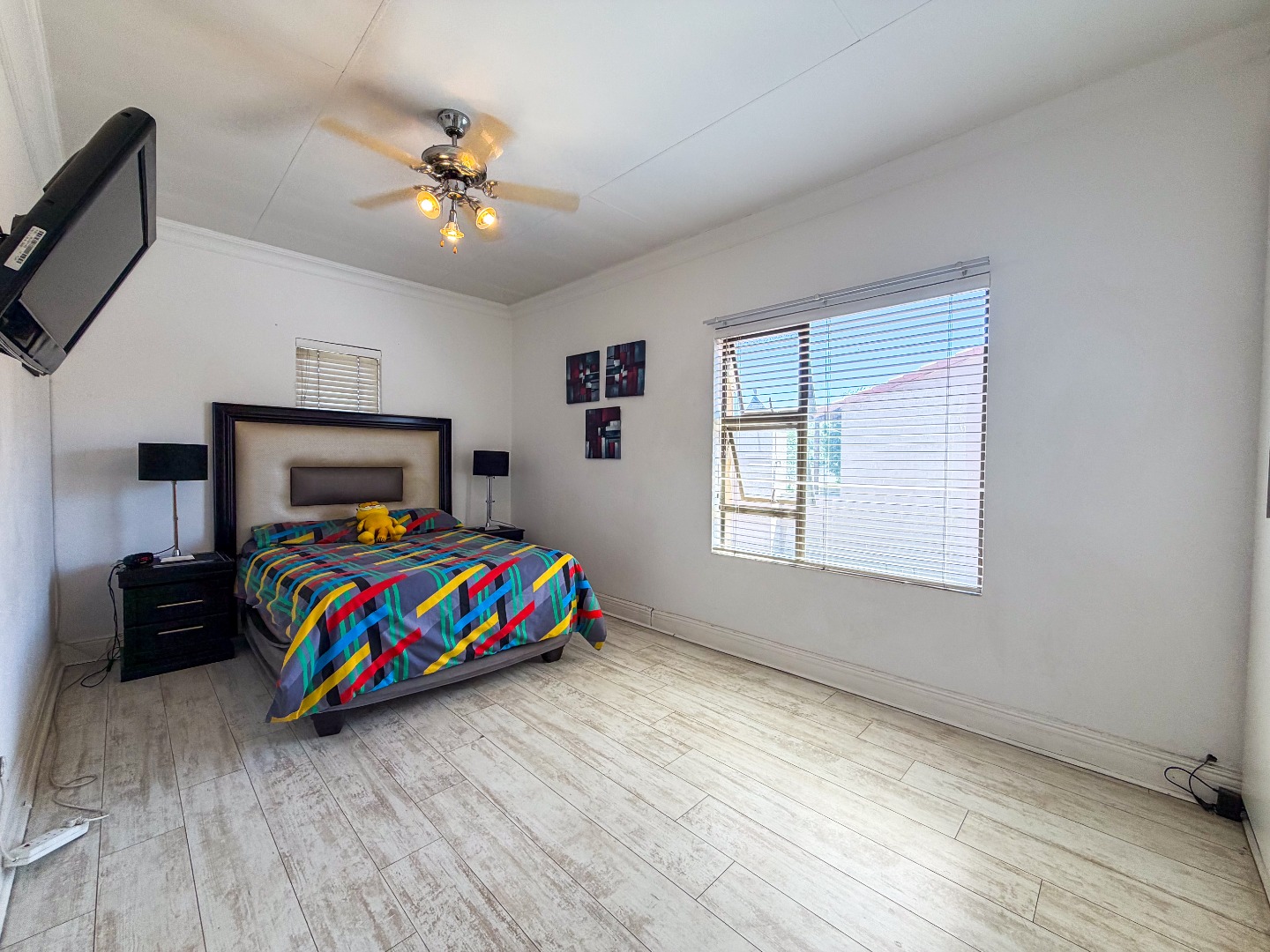 Upstairs, you’ll find three well-appointed bedrooms with built-in cupboards and elegant laminated flooring. The home includes two and a half modern bathrooms, featuring a combination of a bath, shower, basin, and toilet, as well as a guest toilet downstairs.