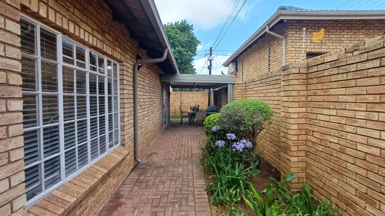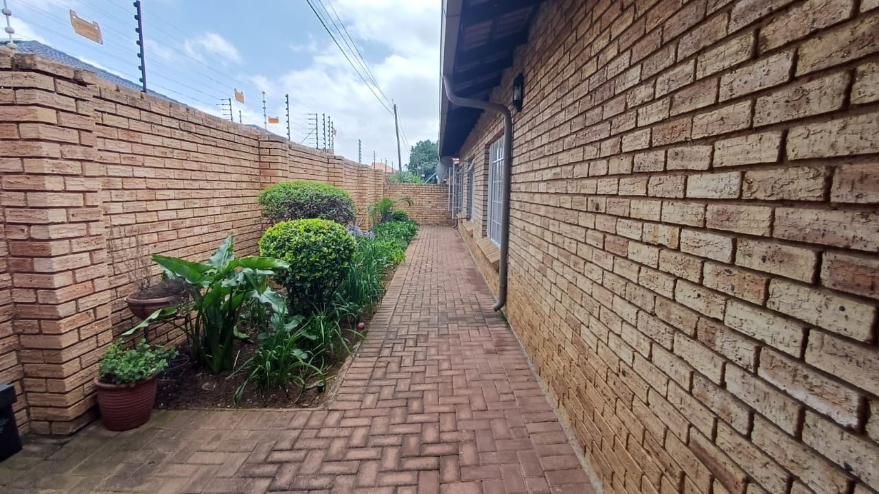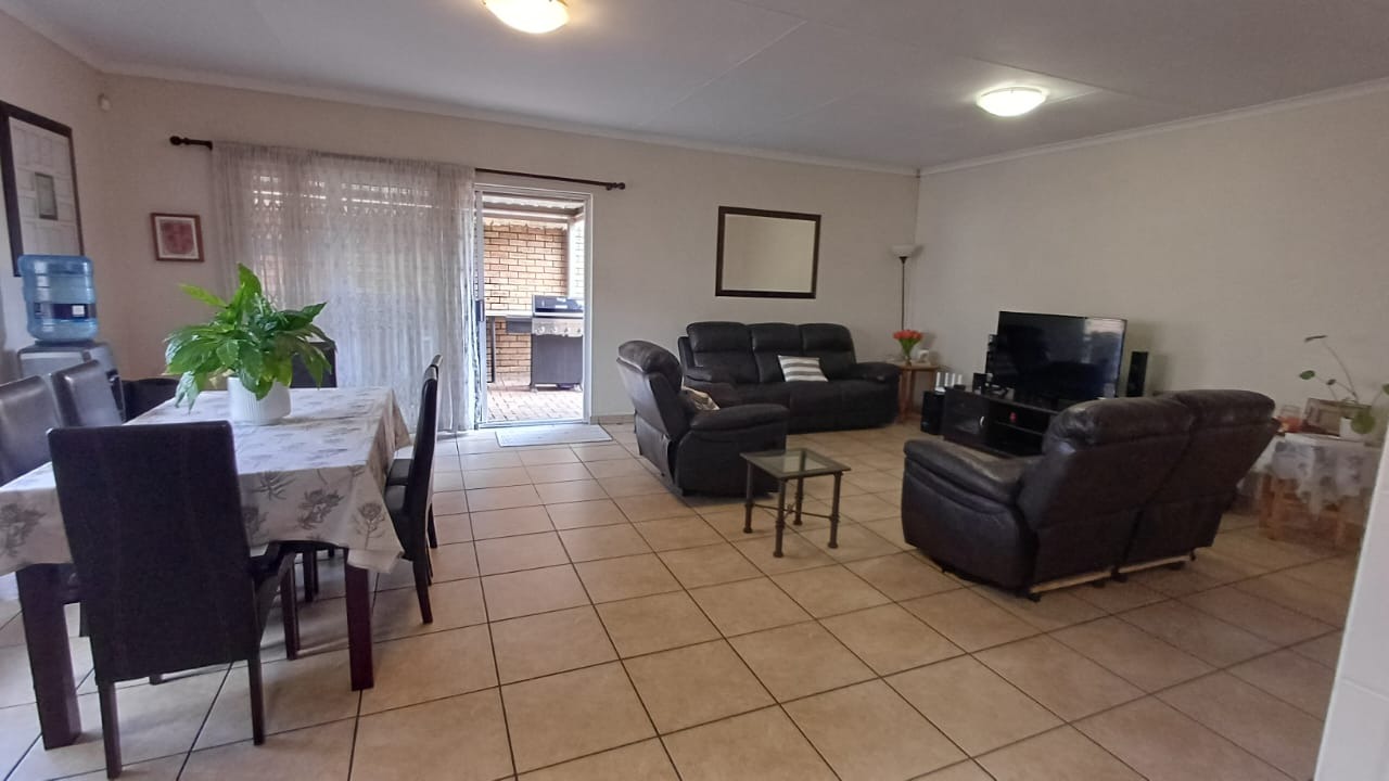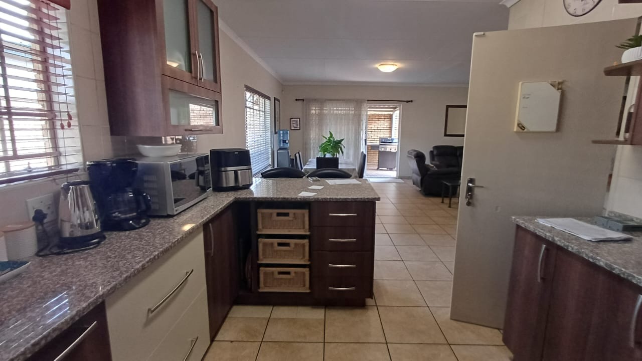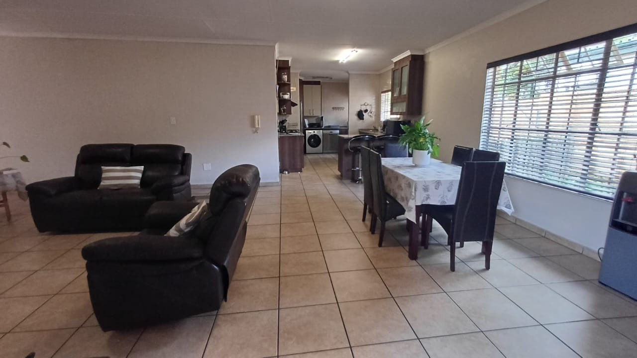 This charming single-story residence, nestled within a desirable complex of Geranium Gardens in New Redruth, Alberton, presents a robust and welcoming exterior. Constructed with durable brick and a tiled roof, the property features a spacious paved driveway leading to a double garage, offering ample parking. Enhanced by a secure side access gate, electric fencing, and burglar bars, the home ensures peace of mind from the moment you arrive, contributing to its strong kerb appeal.