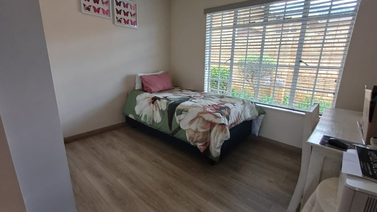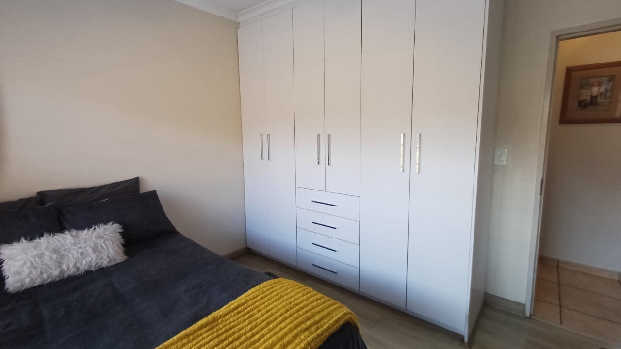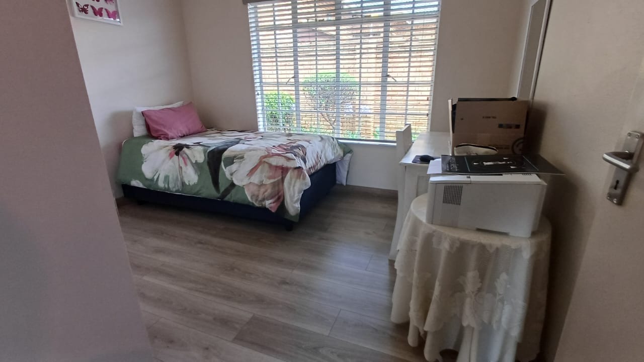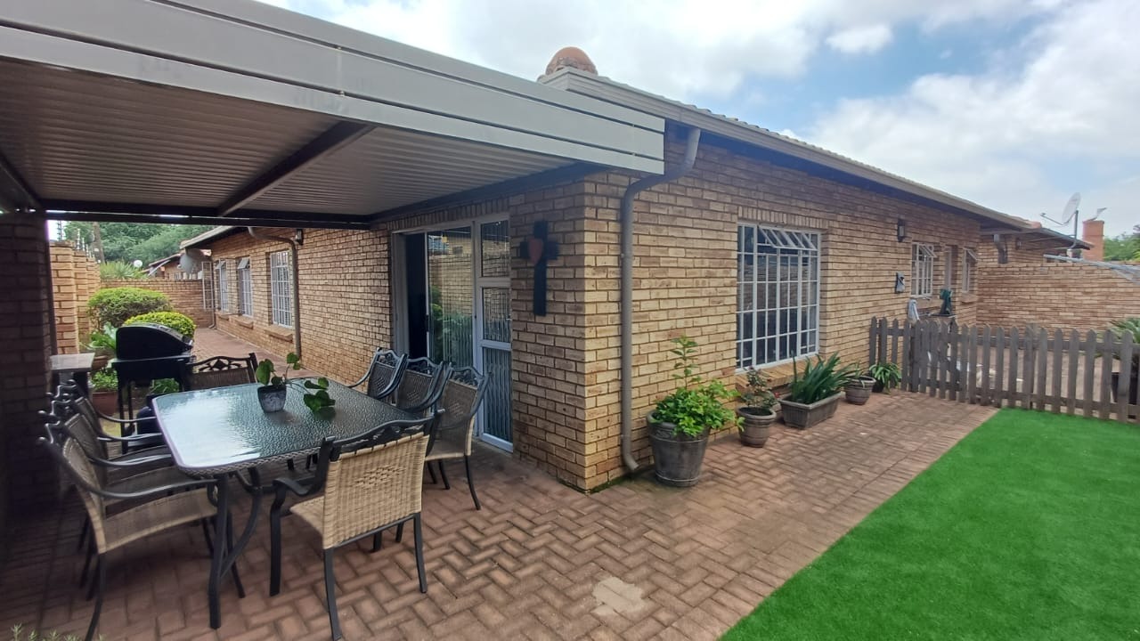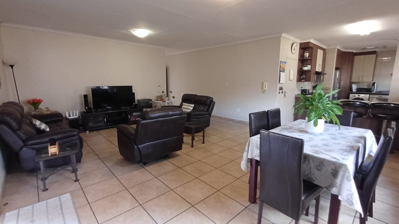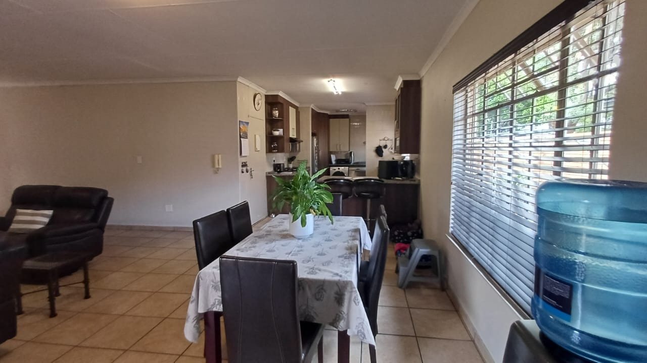 This charming single-story residence, nestled within a desirable complex of Geranium Gardens in New Redruth, Alberton, presents a robust and welcoming exterior. Constructed with durable brick and a tiled roof, the property features a spacious paved driveway leading to a double garage, offering ample parking. Enhanced by a secure side access gate, electric fencing, and burglar bars, the home ensures peace of mind from the moment you arrive, contributing to its strong kerb appeal.