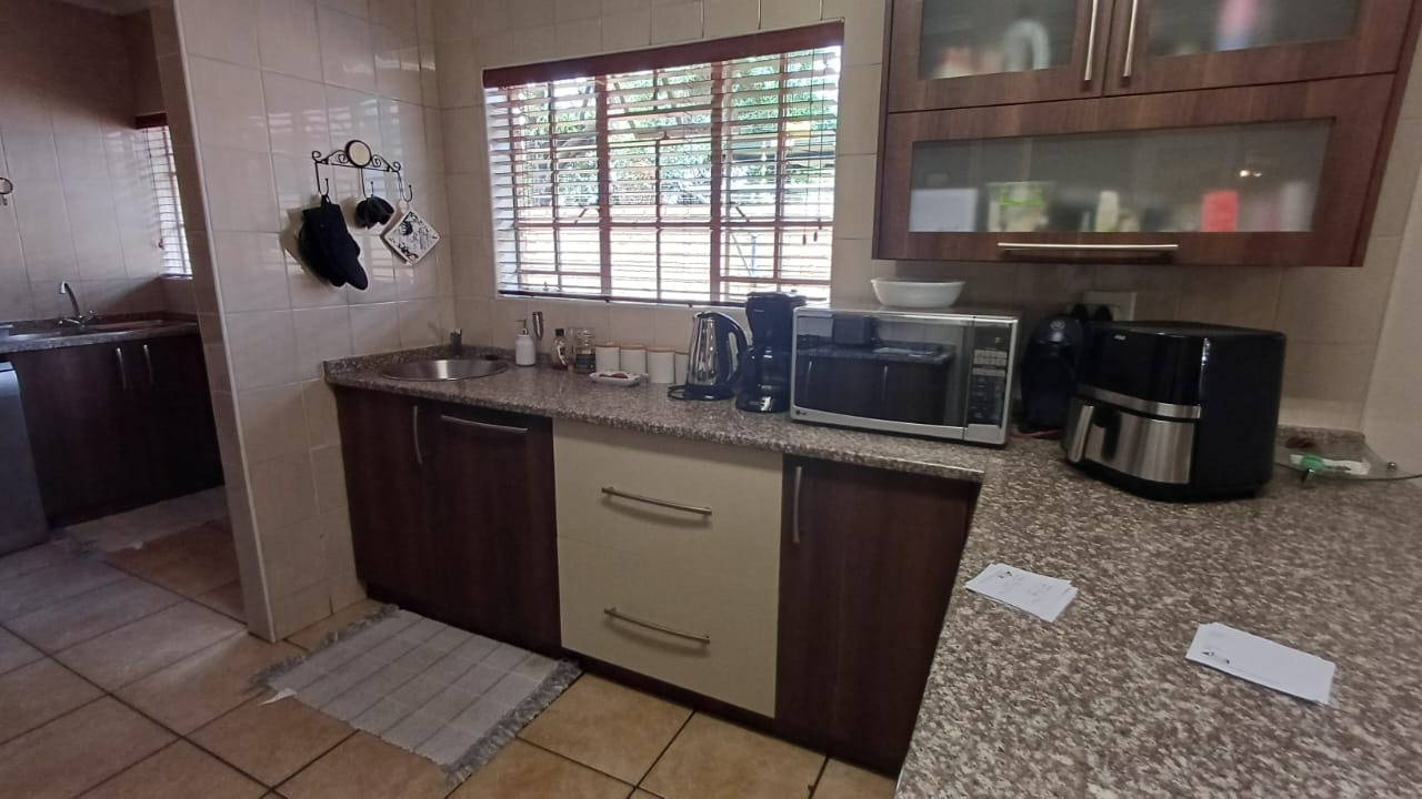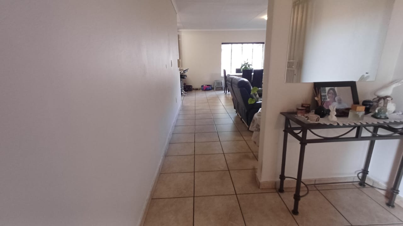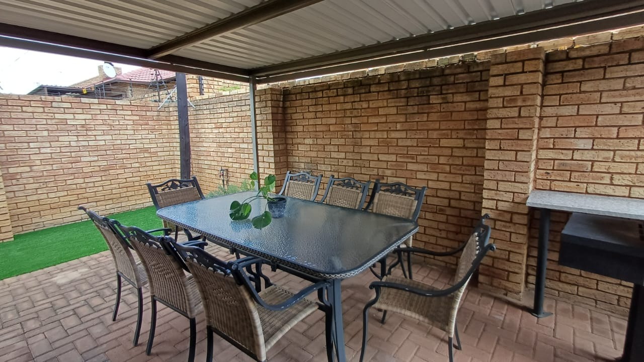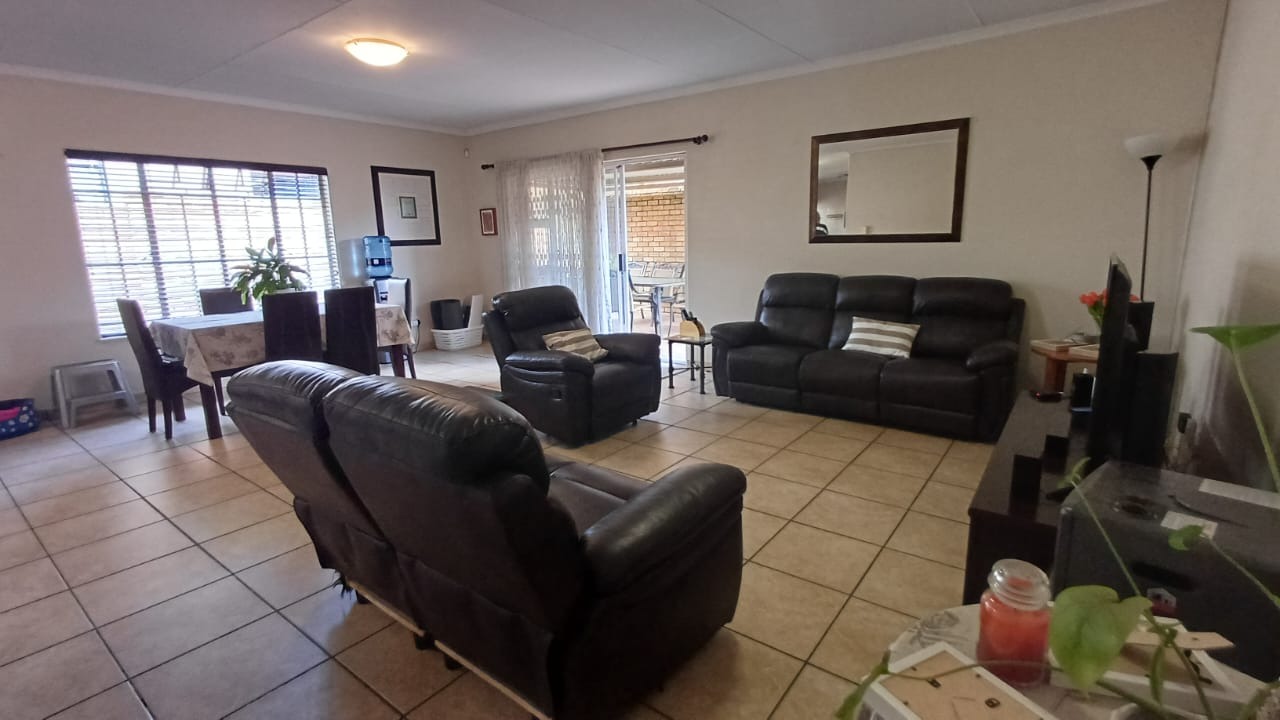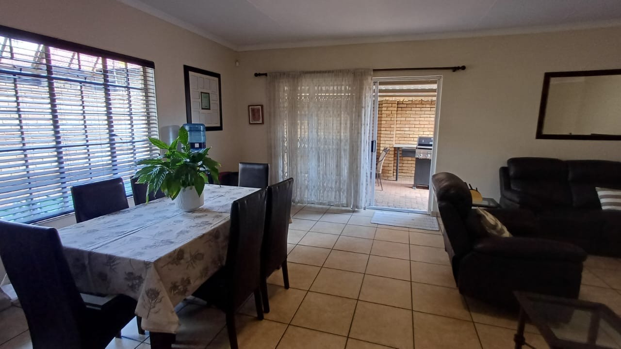 This charming single-story residence, nestled within a desirable complex of Geranium Gardens in New Redruth, Alberton, presents a robust and welcoming exterior. Constructed with durable brick and a tiled roof, the property features a spacious paved driveway leading to a double garage, offering ample parking. Enhanced by a secure side access gate, electric fencing, and burglar bars, the home ensures peace of mind from the moment you arrive, contributing to its strong kerb appeal.