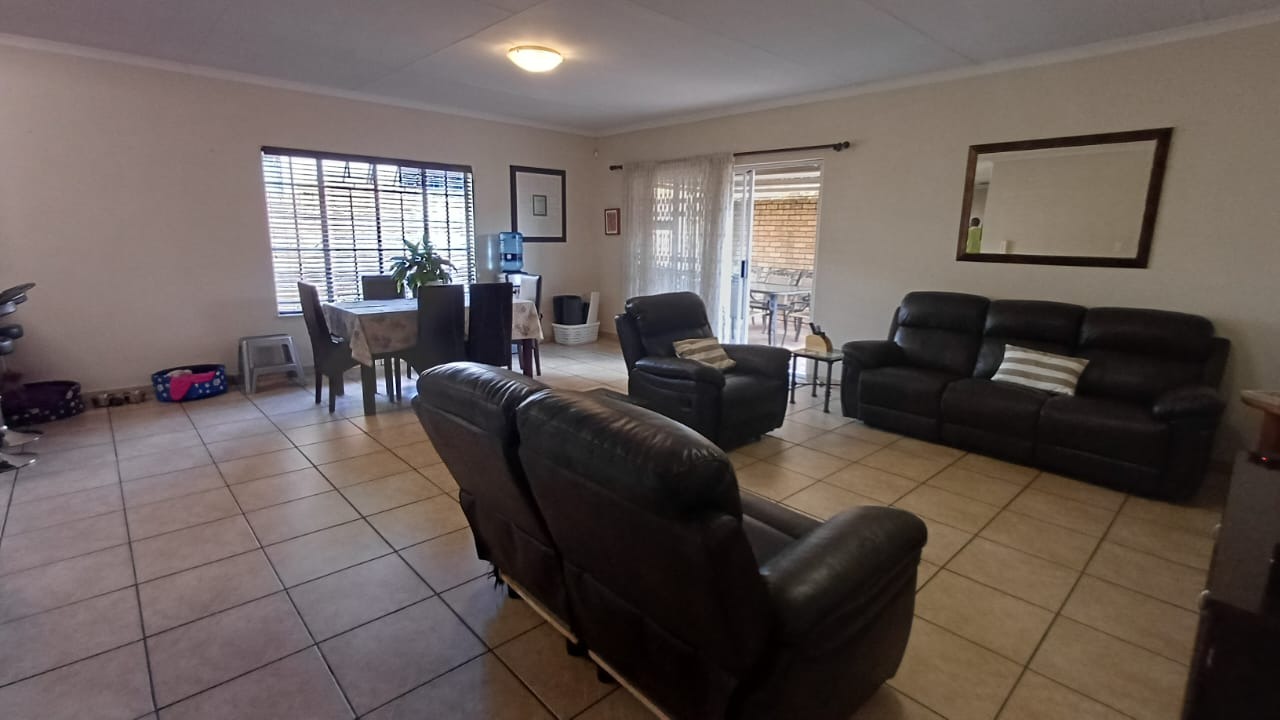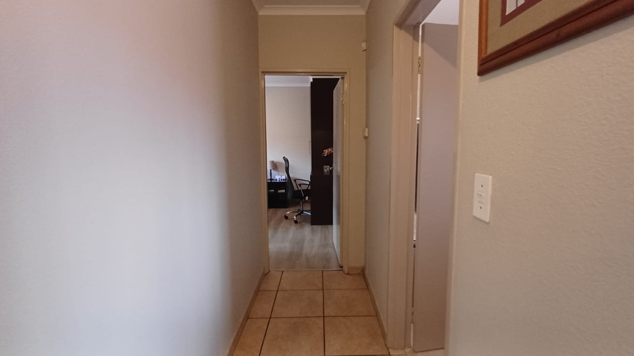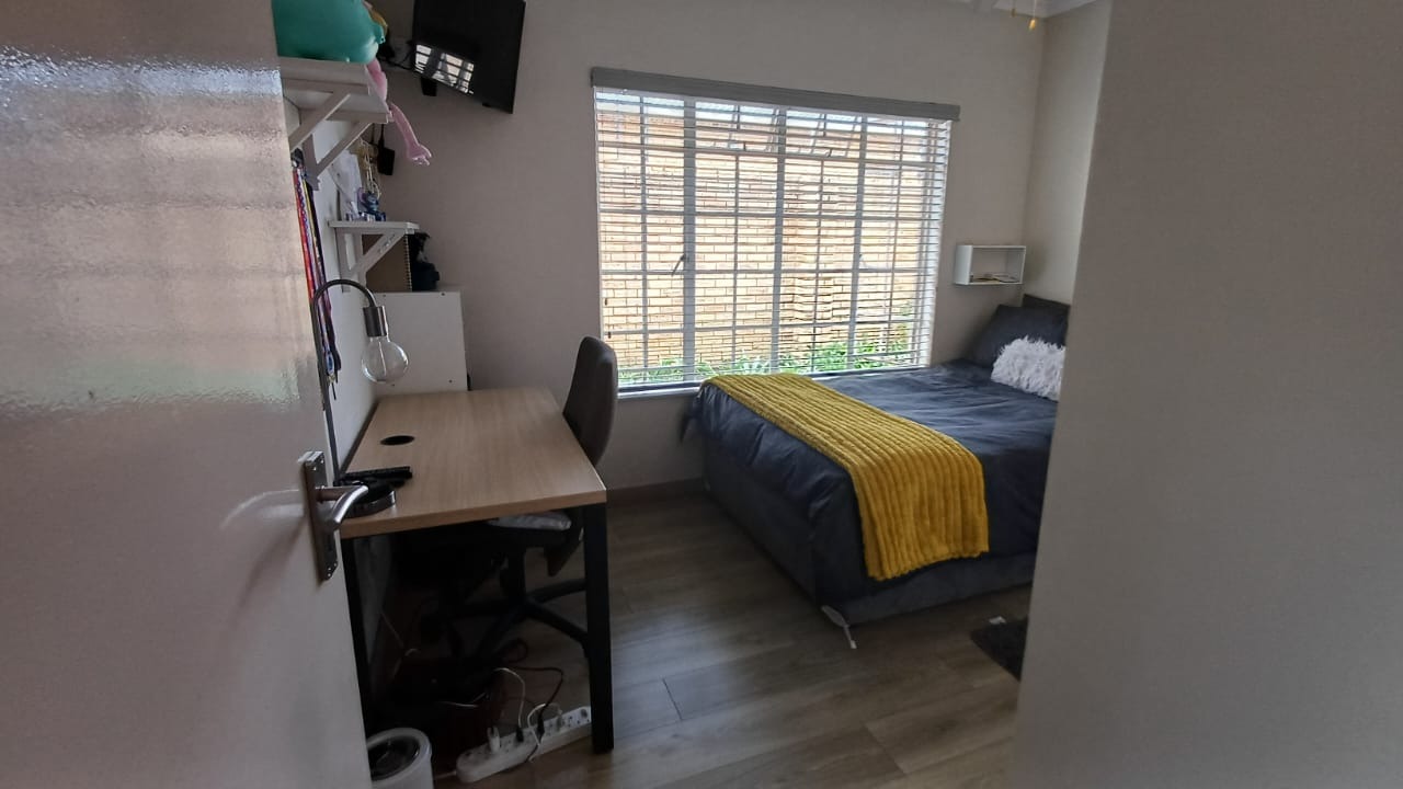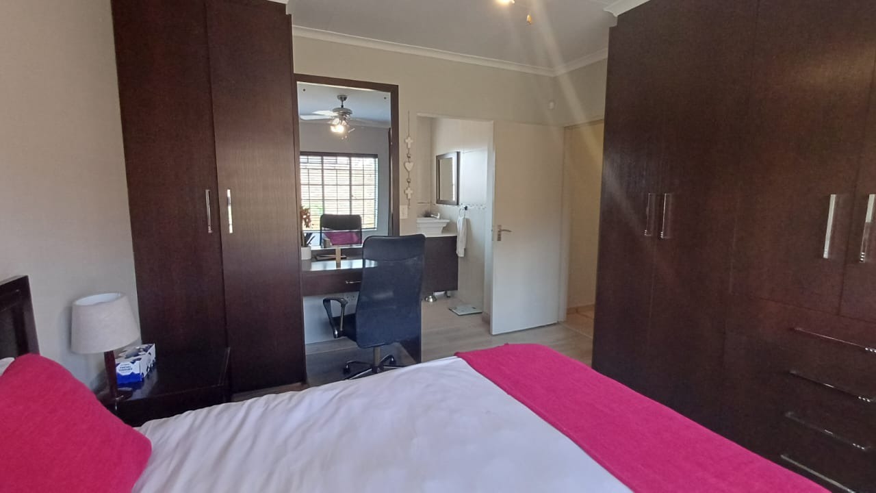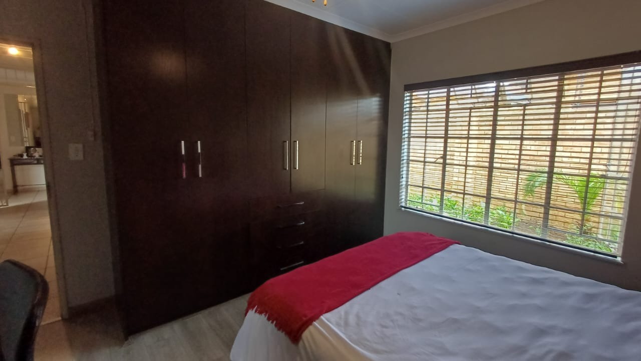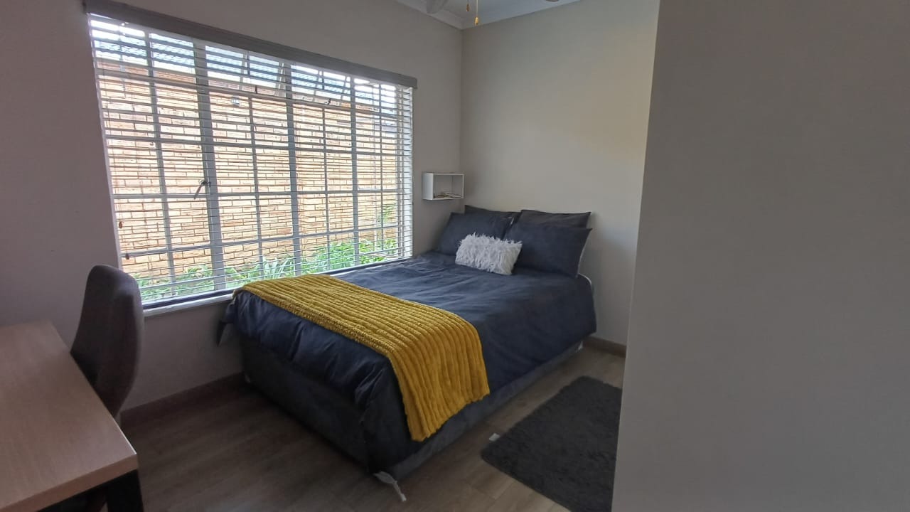 This charming single-story residence, nestled within a desirable complex of Geranium Gardens in New Redruth, Alberton, presents a robust and welcoming exterior. Constructed with durable brick and a tiled roof, the property features a spacious paved driveway leading to a double garage, offering ample parking. Enhanced by a secure side access gate, electric fencing, and burglar bars, the home ensures peace of mind from the moment you arrive, contributing to its strong kerb appeal.
