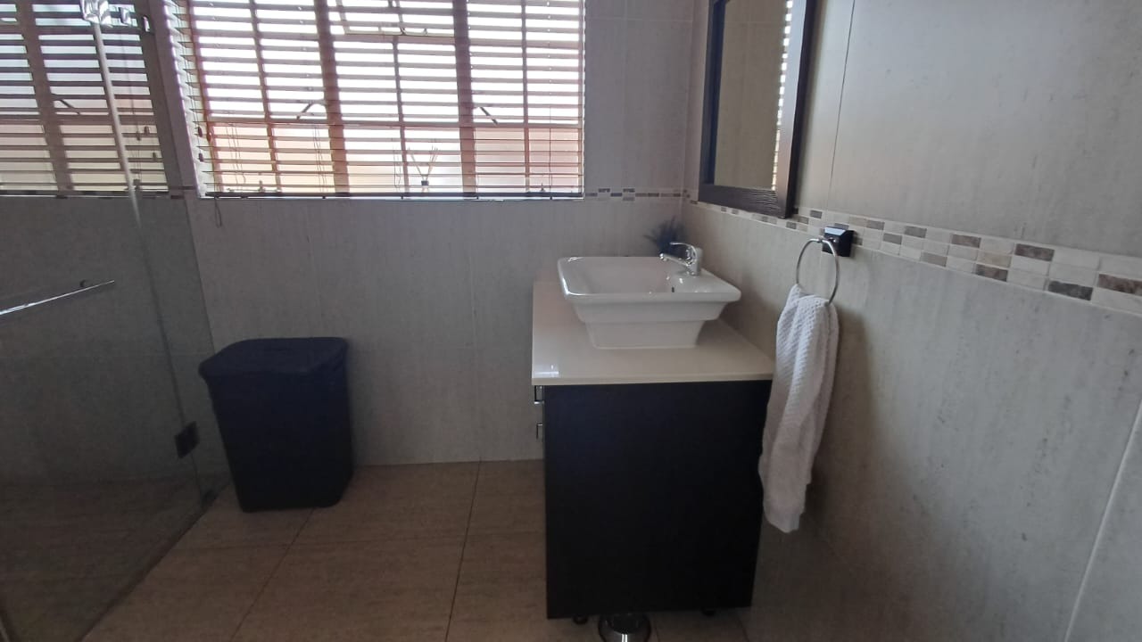 Security is paramount, with features such as electric fencing, a security gate, burglar bars, and an intercom system providing a secure living environment. The inclusion of a battery inverter offers a valuable backup power solution, ensuring uninterrupted comfort and modern living.