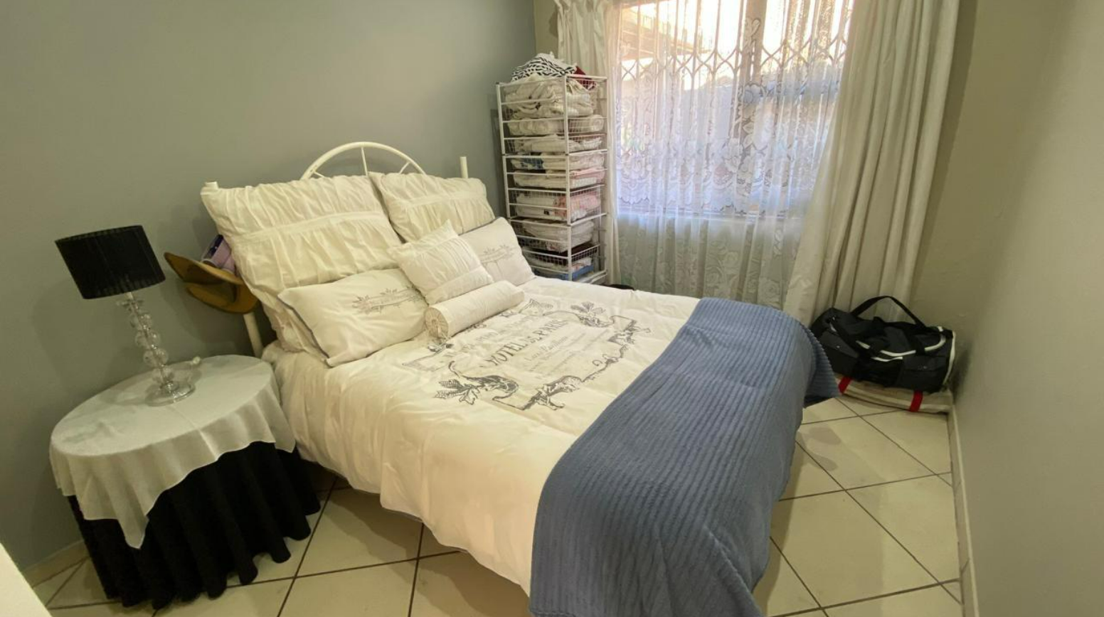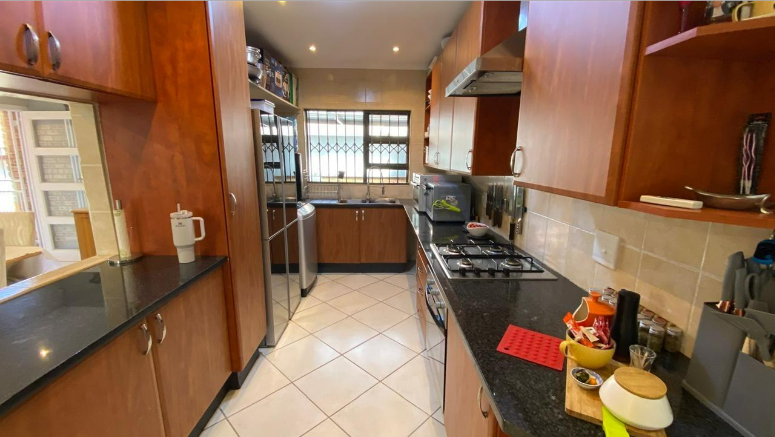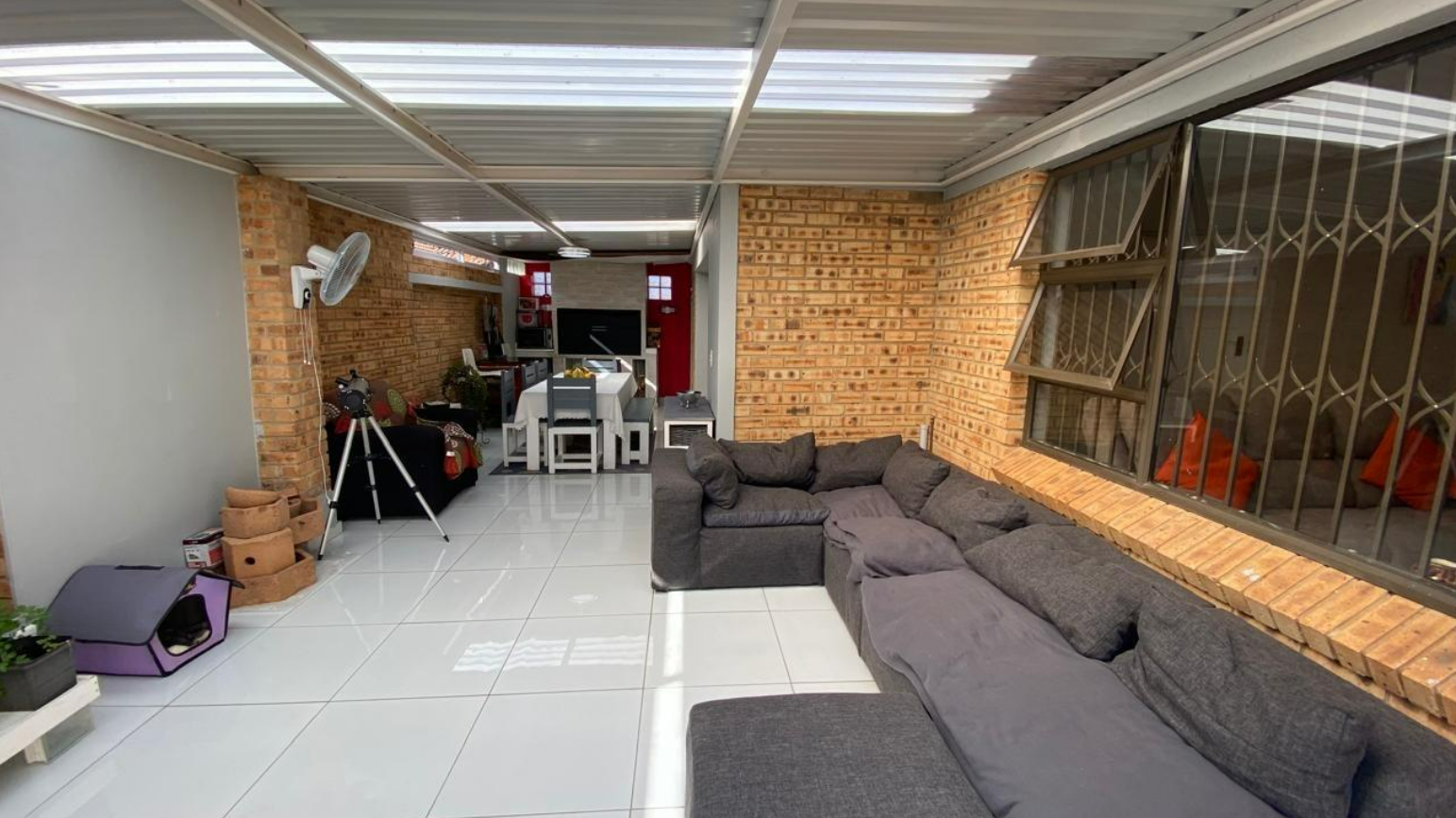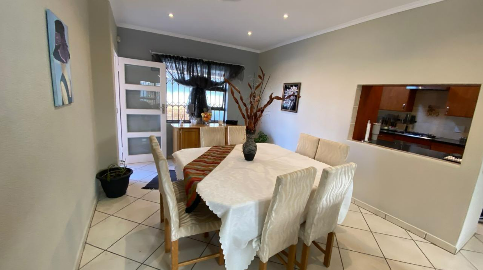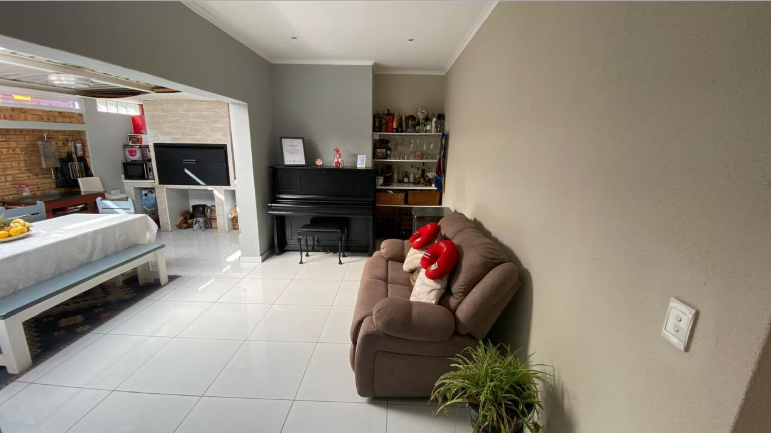 Inside, the home features a practical layout designed for comfortable living. It includes a dedicated lounge and dining room, providing ample space for relaxation and entertaining. The kitchen is functional, catering to daily needs. Tiled flooring throughout the interior ensures easy maintenance, while neutral wall colours offer a versatile canvas for personal touches.