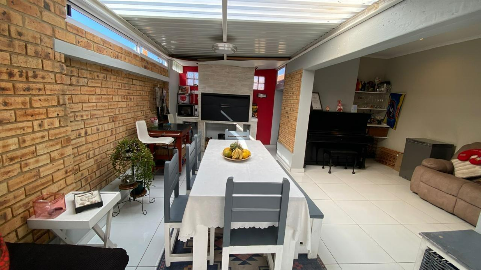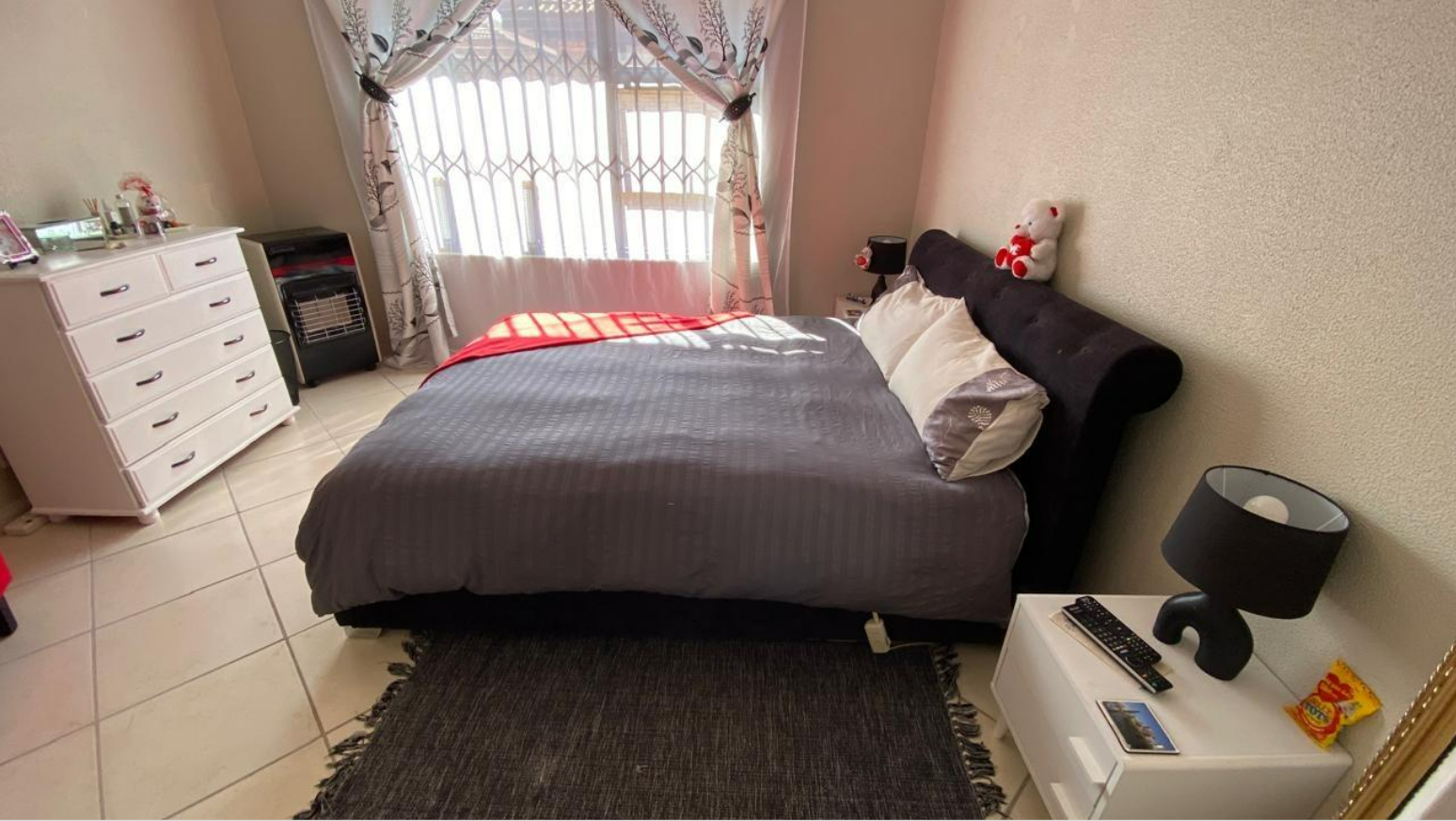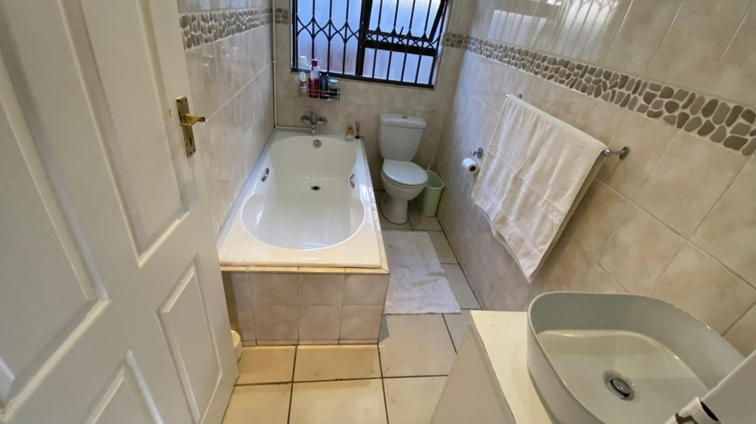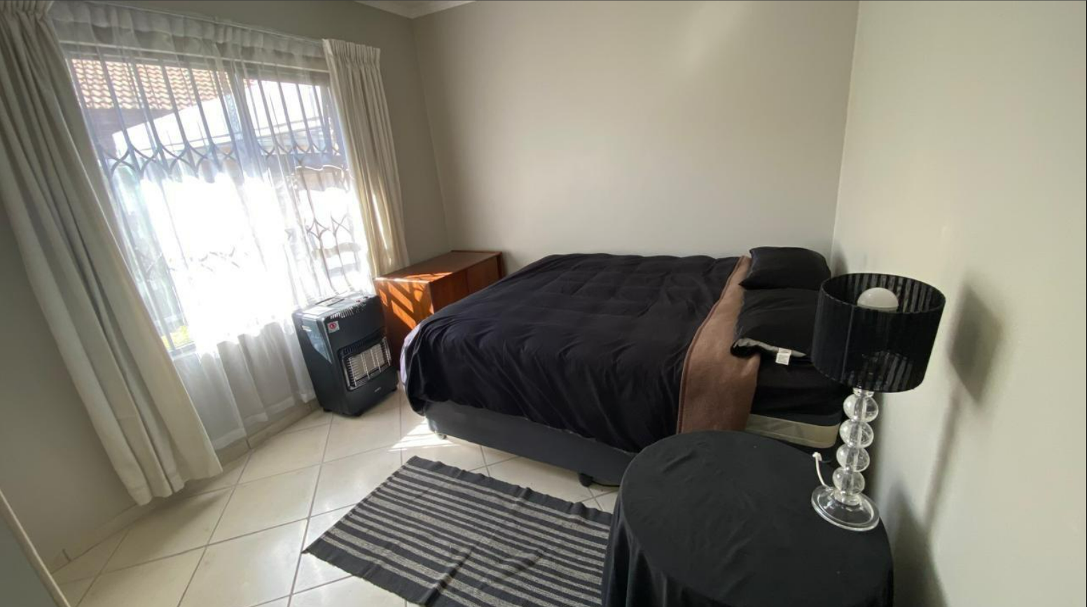 Discover this inviting 3-bedroom, 2-bathroom residence located within a secure complex in the suburban area of New Redruth, Alberton. The property offers a welcoming kerb appeal with its brick exterior, well-maintained tiled roofs, and a gated entrance ensuring peace of mind. Security is a key feature, enhanced by 24-hour armed response signage, an electric fence, and security bars on windows, providing a safe environment for residents.