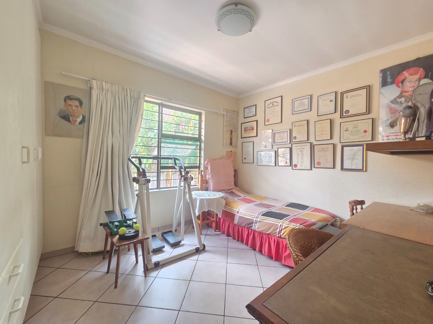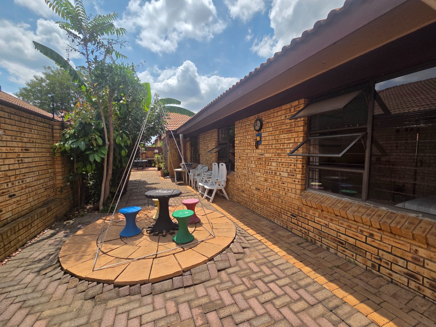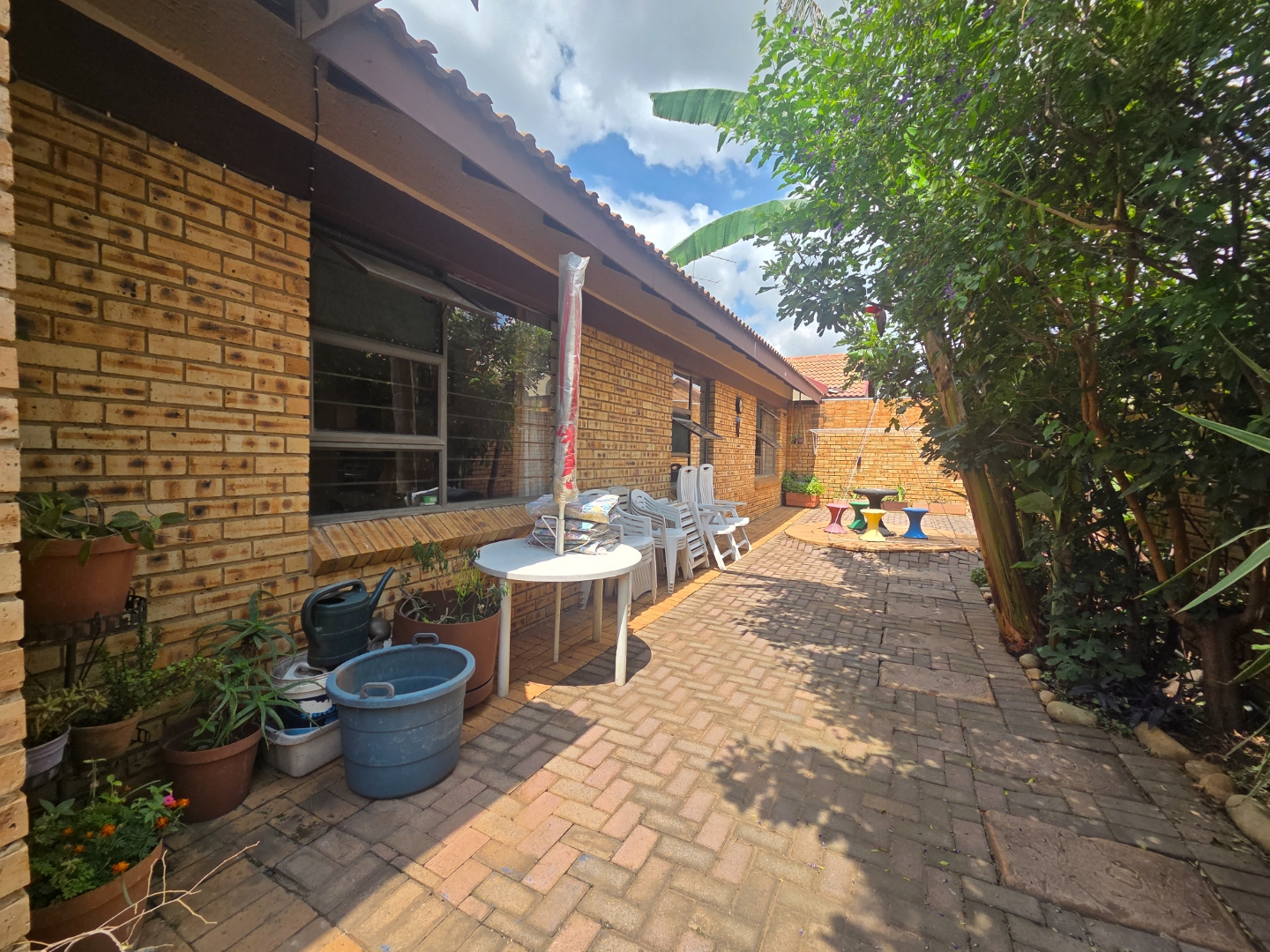 Step outside to a patio with a built-in braai, overlooking a private, pet-friendly garden, ideal for outdoor enjoyment. Additional features include an automated double garage, solar geyser, electric fencing, and intercom system for added security and efficiency.