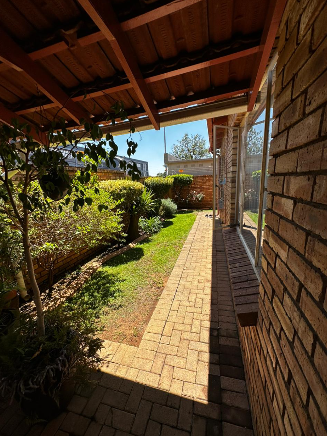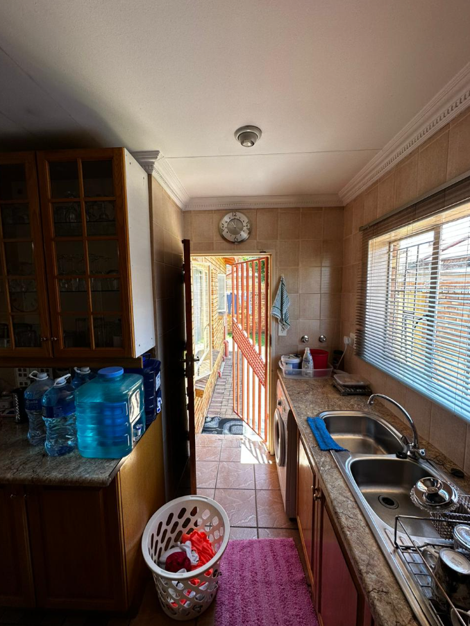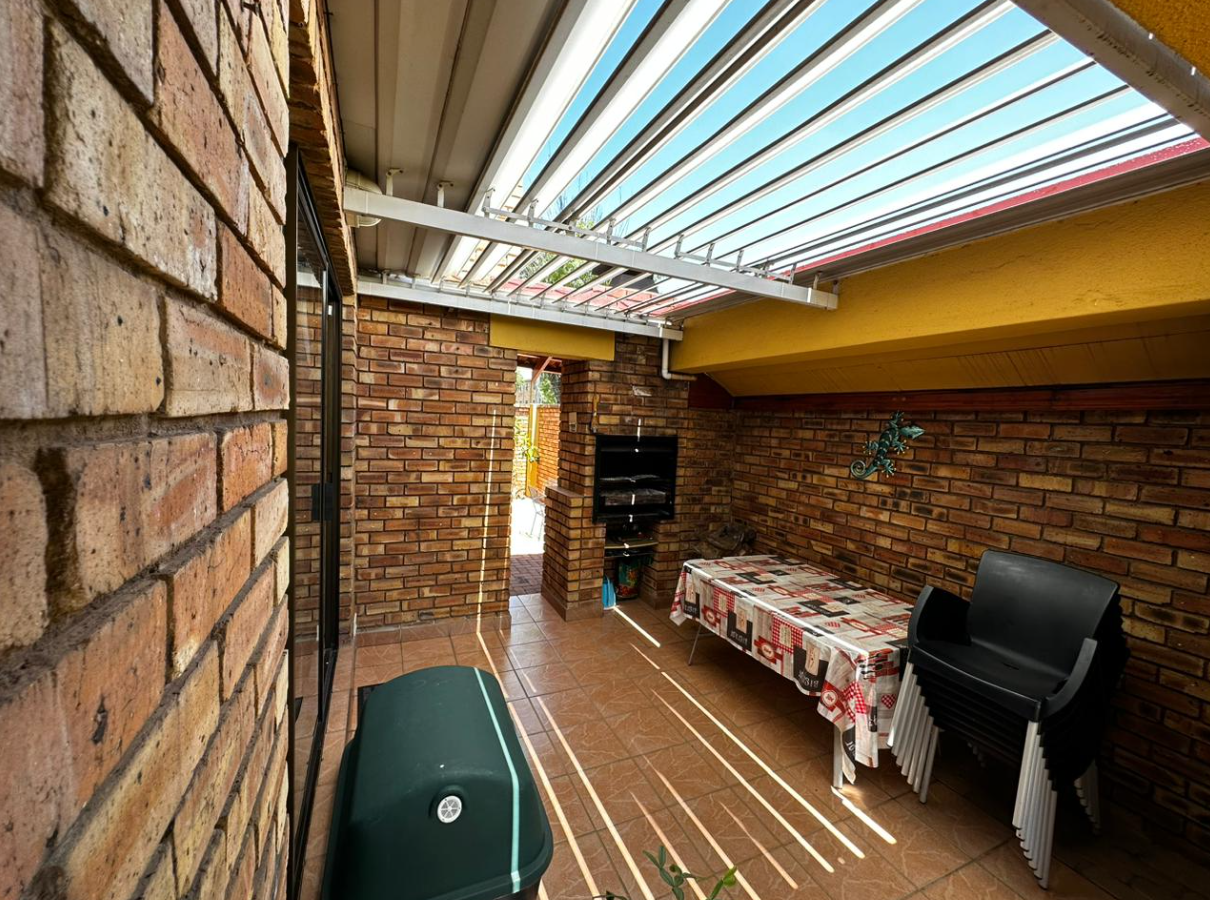 Nestled in the suburban heart of Alberton, New Redruth offers a convenient and established lifestyle, providing easy access to local amenities and transport routes. This inviting residential sale property presents a durable brick and painted exterior, complemented by a large, stylish wooden garage door. A paved driveway and a gated pedestrian entrance enhance both functionality and security, offering a welcoming first impression. Step inside to discover an open-concept living, dining, and kitchen area, featuring continuous tiled flooring and crown molding for a touch of architectural detail. The kitchen, while offering ample wooden cabinetry and natural light from a window above the sink, includes both a standard oven/stove and a portable gas hob. A separate galley-style kitchen area provides a double sink and dedicated space for a washing machine, with tiled walls for easy maintenance. The home comprises three comfortable bedrooms, each benefiting from ample natural light. Two bedrooms feature built-in wardrobes, ensuring practical storage solutions. The two bathrooms are fully tiled, with one offering a modern glass-enclosed shower and the other an enclosed shower with a window for ventilation. Outdoor living is a highlight with a covered patio, perfect for entertaining. This space boasts a built-in brick braai and durable tiled flooring, providing a dedicated area for social gatherings. The property also includes a private garden and paving around the exterior. Security features include a fenced perimeter, an access gate, security gates, and burglar bars, contributing to peace of mind within this suburban setting. Key Features: * 3 Bedrooms, 2 Bathrooms * 1 Garage, Paved Driveway * Open-plan Living & Dining Area * Covered Patio with Built-in Braai * Tiled Flooring Throughout * Gated Access & Security Features * Pets Allowed * Erf Size: 330 sqm