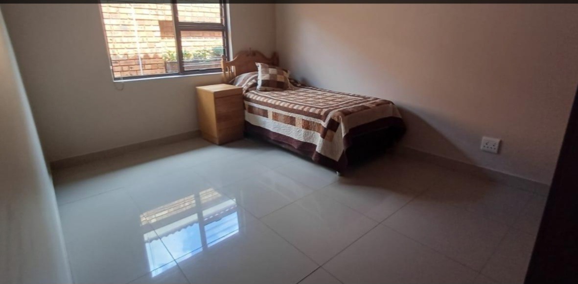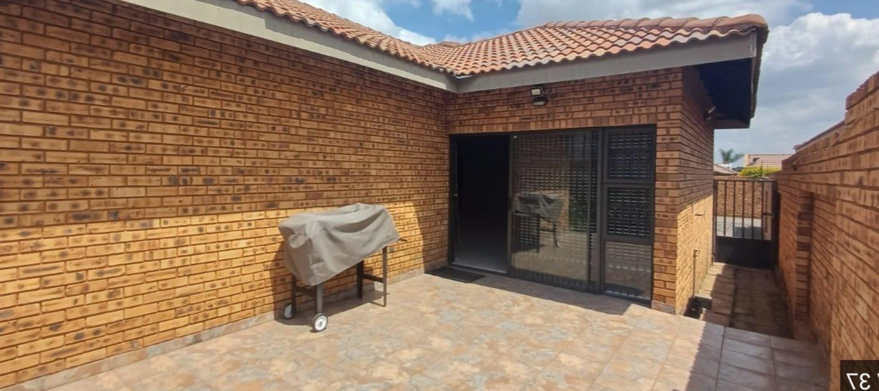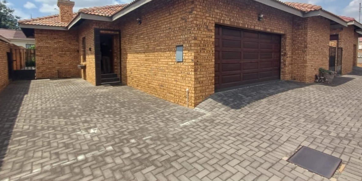 Exterior amenities include a double garage, offering secure parking for two vehicles, complemented by an additional parking bay. The property's location within a complex in New Redruth, Alberton, underscores its appeal for those seeking a managed and community-oriented lifestyle in South Africa. This suburban setting provides convenient access to local amenities and transport routes, enhancing the overall desirability of the address.