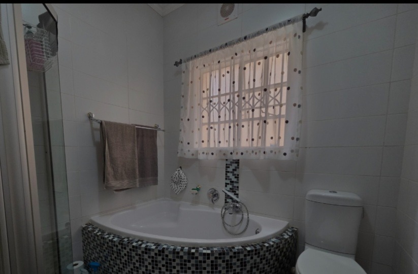 The private quarters comprise three generously proportioned bedrooms, offering serene retreats for rest and rejuvenation. Two exquisitely finished bathrooms, including a luxurious en-suite, provide ultimate comfort and convenience. Outside, the expansive 1983 square metre erf unfolds into a beautifully landscaped garden, complete with elegant paving and a charming lapa, ideal for alfresco entertaining and enjoying the South African climate. Enhanced security features, including an access gate, electric fencing, and robust burglar bars, ensure peace of mind within this exclusive complex.