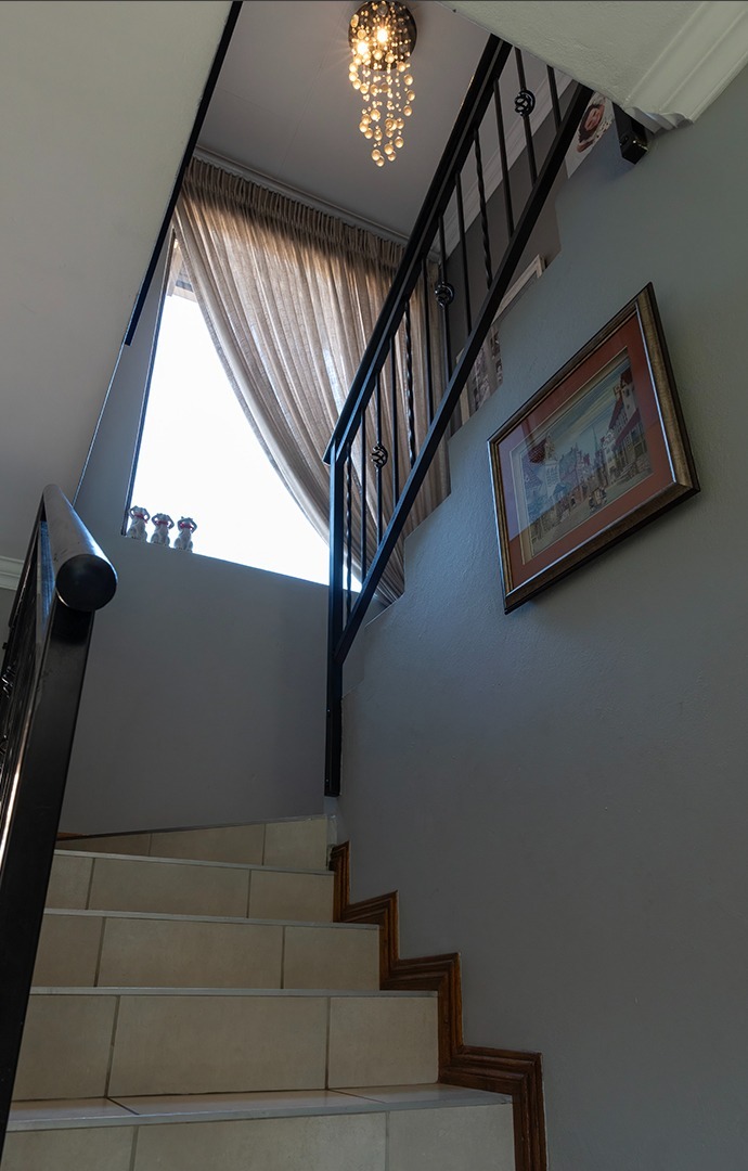 Upstairs, a striking chandelier sets the tone for refined living, leading to three generously sized bedrooms and two full bathrooms. The main suite offers air conditioning and a luxurious en-suite, creating a private sanctuary. Enhanced with pink insulation, the home remains comfortably cool in summer and warm in winter.