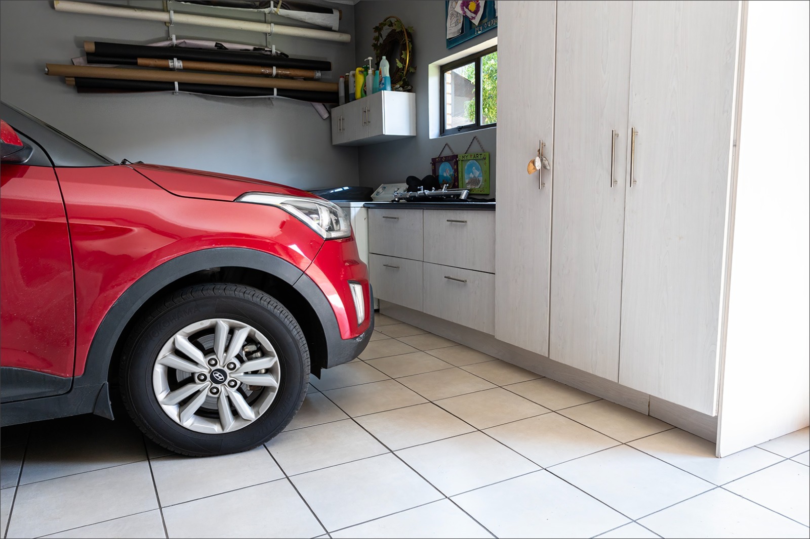 The double garage provides ample storage and includes connections for a washing machine and dryer, adding to the home’s practicality.