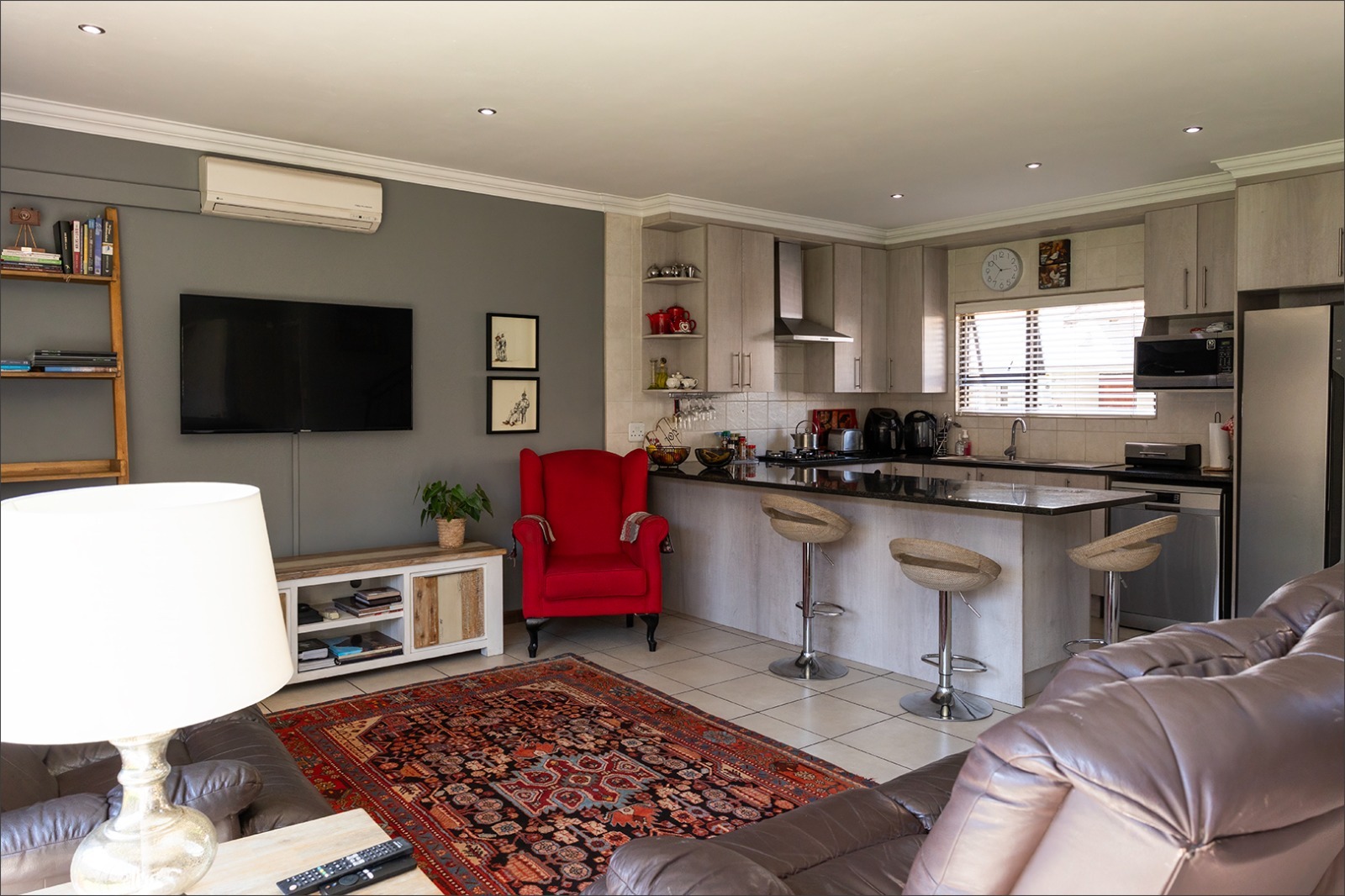 Step into a sun-drenched, north-facing home where sleek tiled floors and open-plan living spaces create an inviting and sophisticated atmosphere. The lounge and dining area flow effortlessly through sliding doors into a private garden — a tranquil retreat perfect for both relaxed living and stylish entertaining.