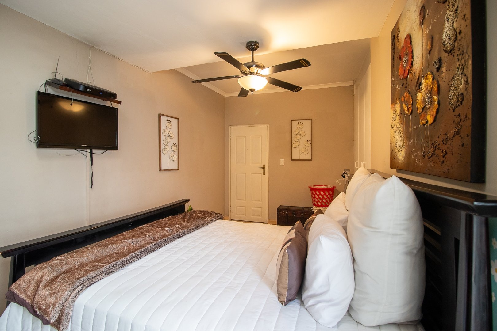Step through the welcoming entrance hall into an elegant stairs and open-plan layout featuring a modern kitchen with ample cupboard space, seamlessly connected to the spacious lounge and dining area. The lounge opens through sliding doors to an entertainment room complete with a built-in braai and built-in bar — perfect for hosting family and friends all year round.