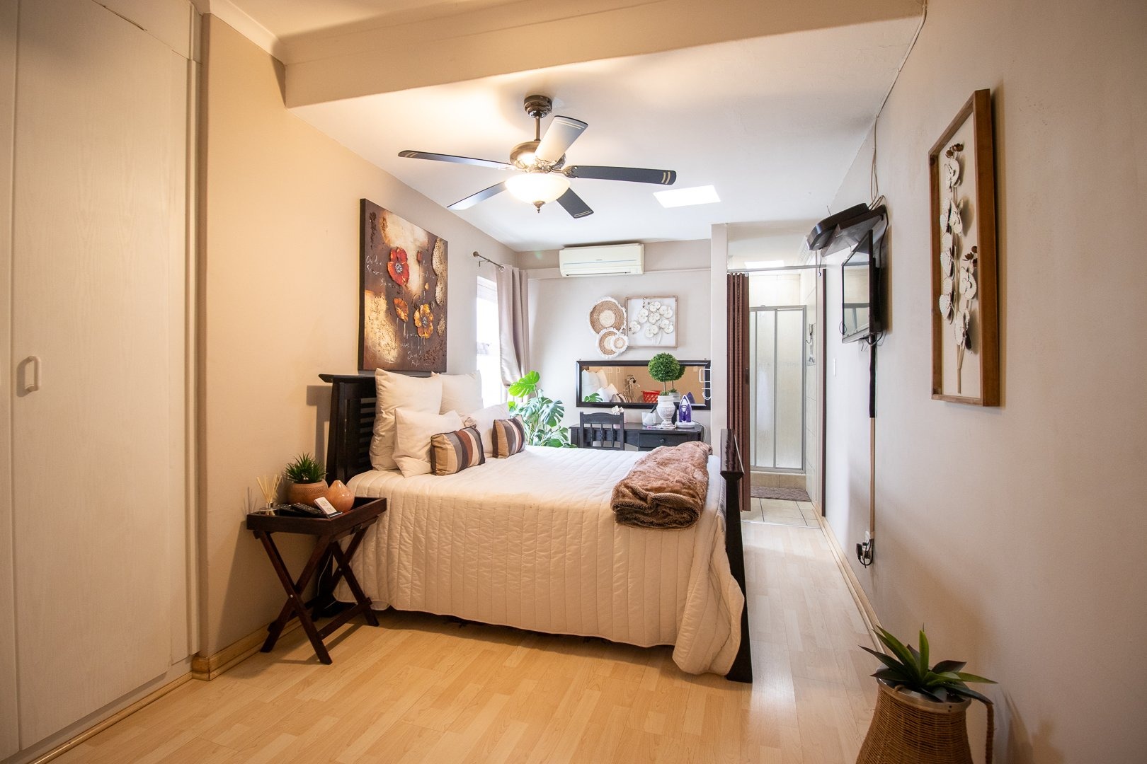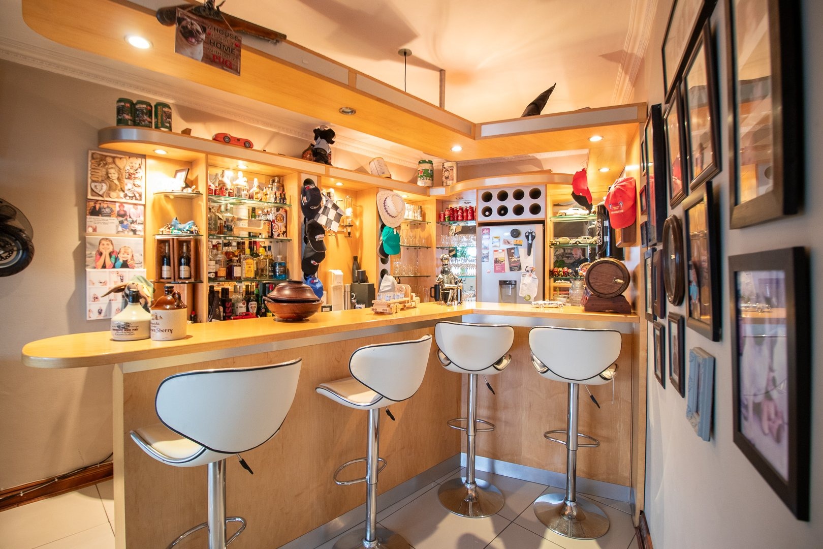 Step through the welcoming entrance hall into an elegant stairs and open-plan layout featuring a modern kitchen with ample cupboard space, seamlessly connected to the spacious lounge and dining area. The lounge opens through sliding doors to an entertainment room complete with a built-in braai and built-in bar — perfect for hosting family and friends all year round.