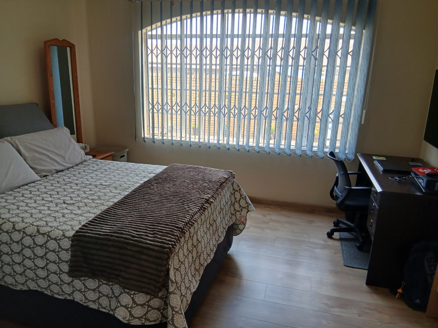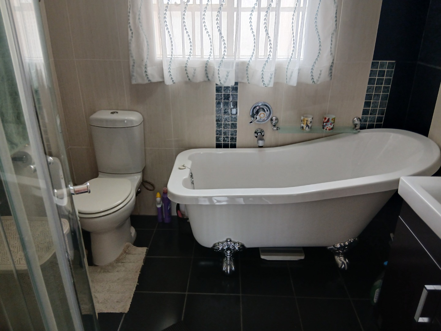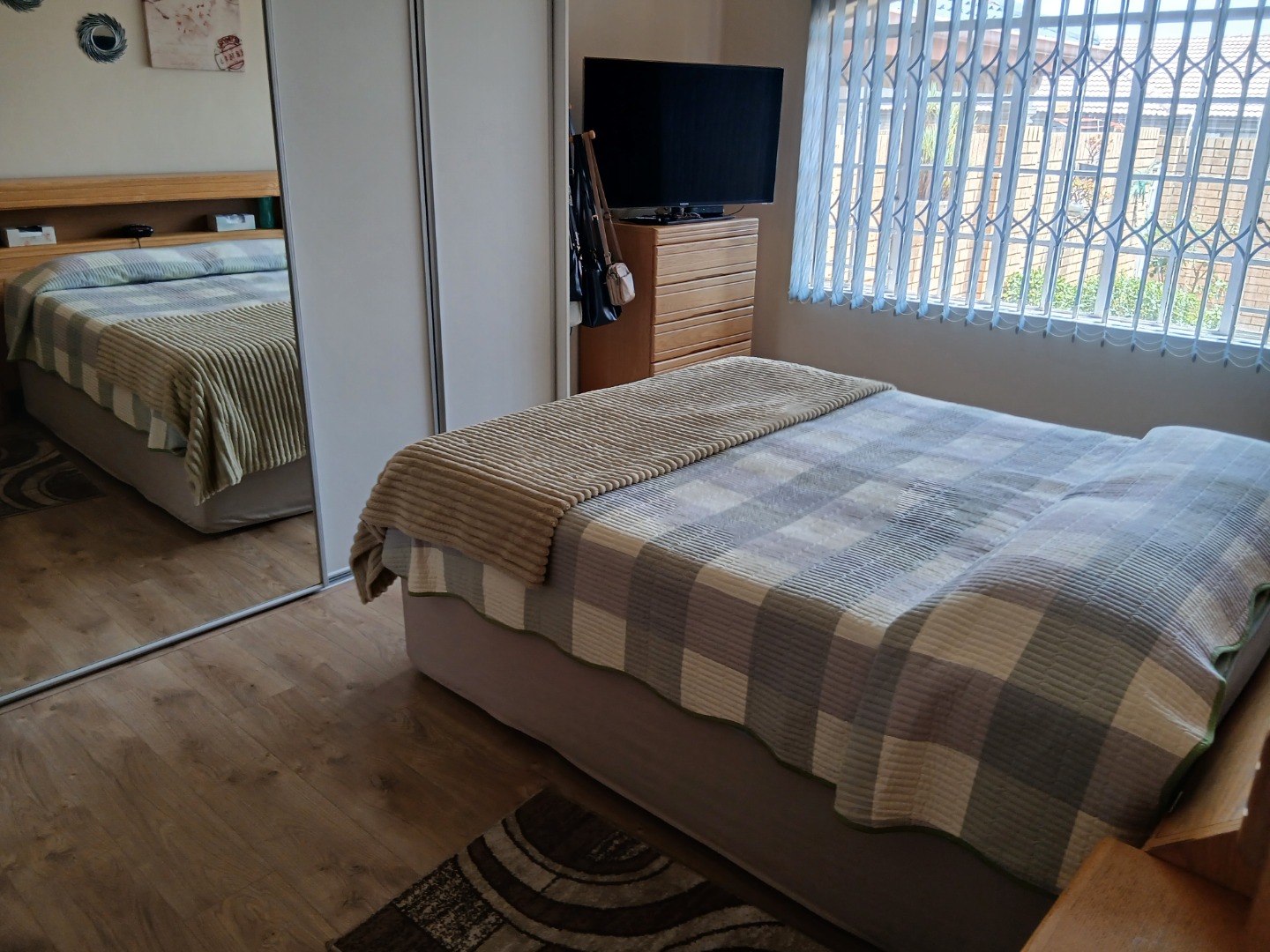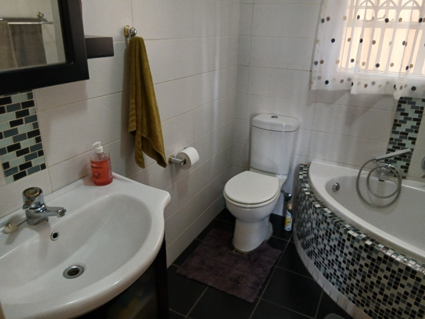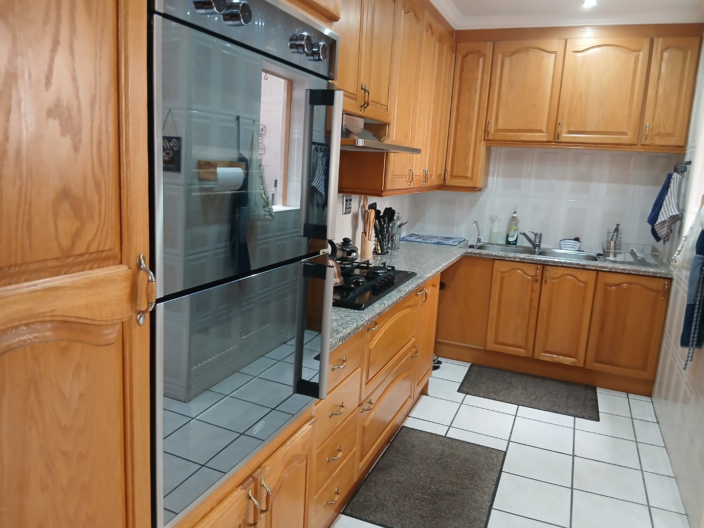 This elegant and immaculately maintained ground-floor townhouse offers comfort, security, and modern convenience — a true move-in-ready home! A neat paved driveway leads to two automated double garages equipped with shelving for storage and an additional shaded carport. The front door opens to a spacious open-plan tiled lounge and dining area, which flows seamlessly into a covered recreation room — perfect for an additional lounge set and dining area for entertaining family and friends. A guest toilet adds extra convenience. The home features four spacious bedrooms with ample cupboard space and two full bathrooms, including a main en-suite. Outside, enjoy a well-kept green lawn, water tanks, and a charming thatched lapa for outdoor relaxation.Additional features include an inverter system, electric fencing, intercom, and an electric gate, ensuring comfort and security throughout.