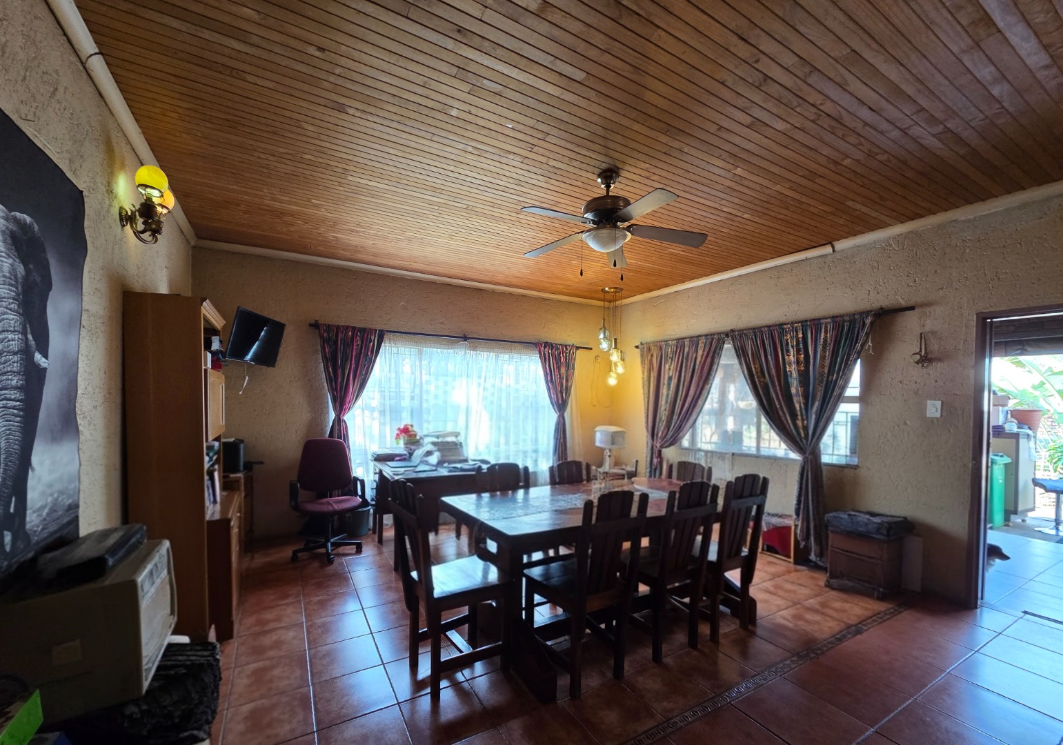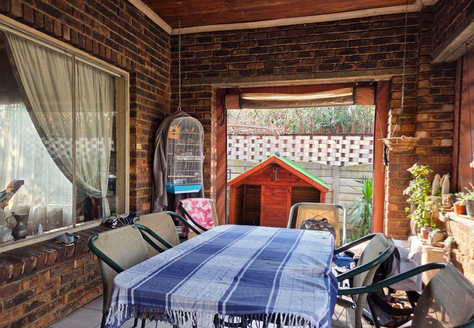 Entertain effortlessly on the patio fitted with roll-up blinds, creating a versatile indoor-outdoor living space.