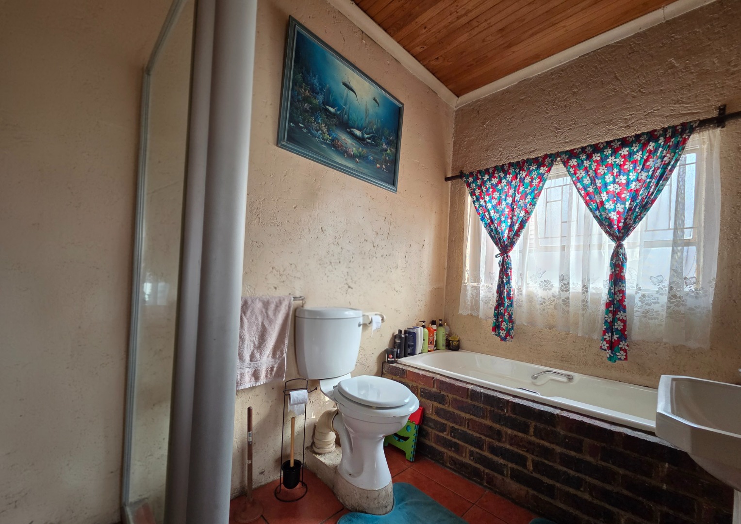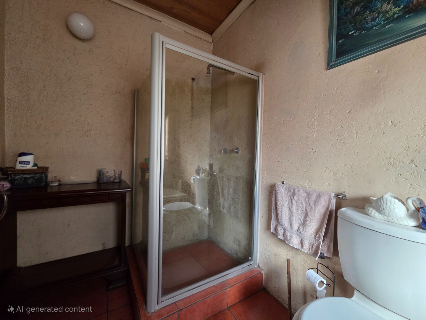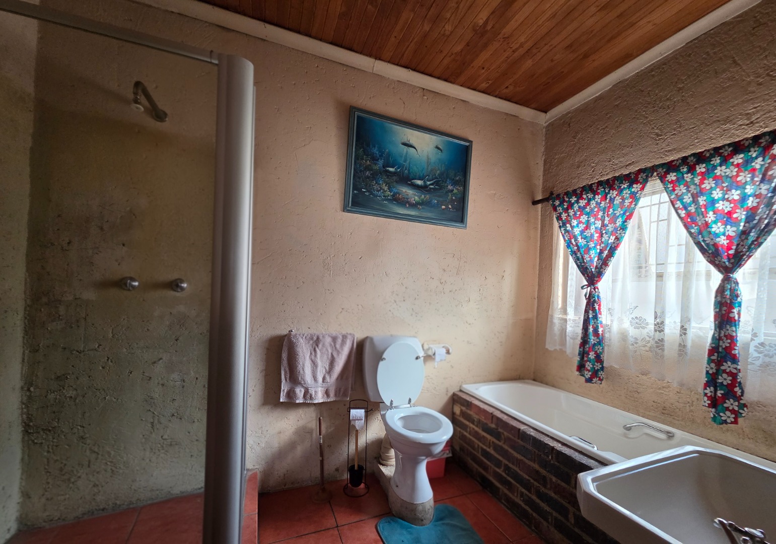 The main house features four spacious bedrooms. The main bedroom boasts a private en-suite bathroom, while two additional bedrooms share a convenient en-suite bathroom positioned between them. A guest toilet adds extra comfort for visitors.