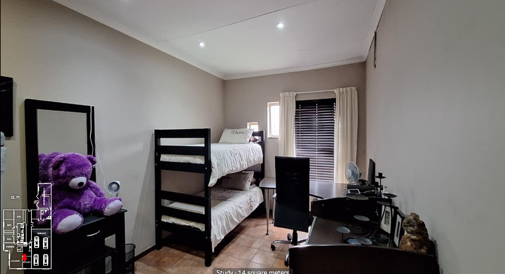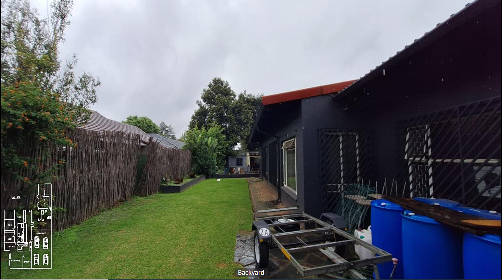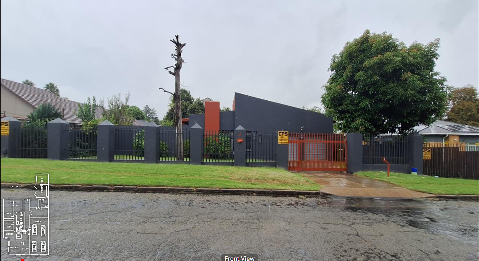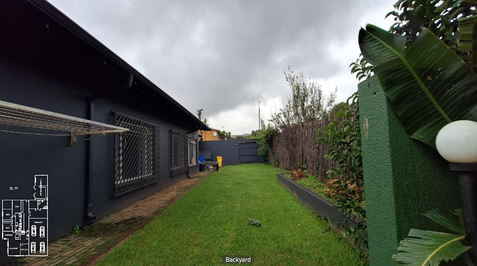- Enhanced security with fence, access gate, and burglar bars