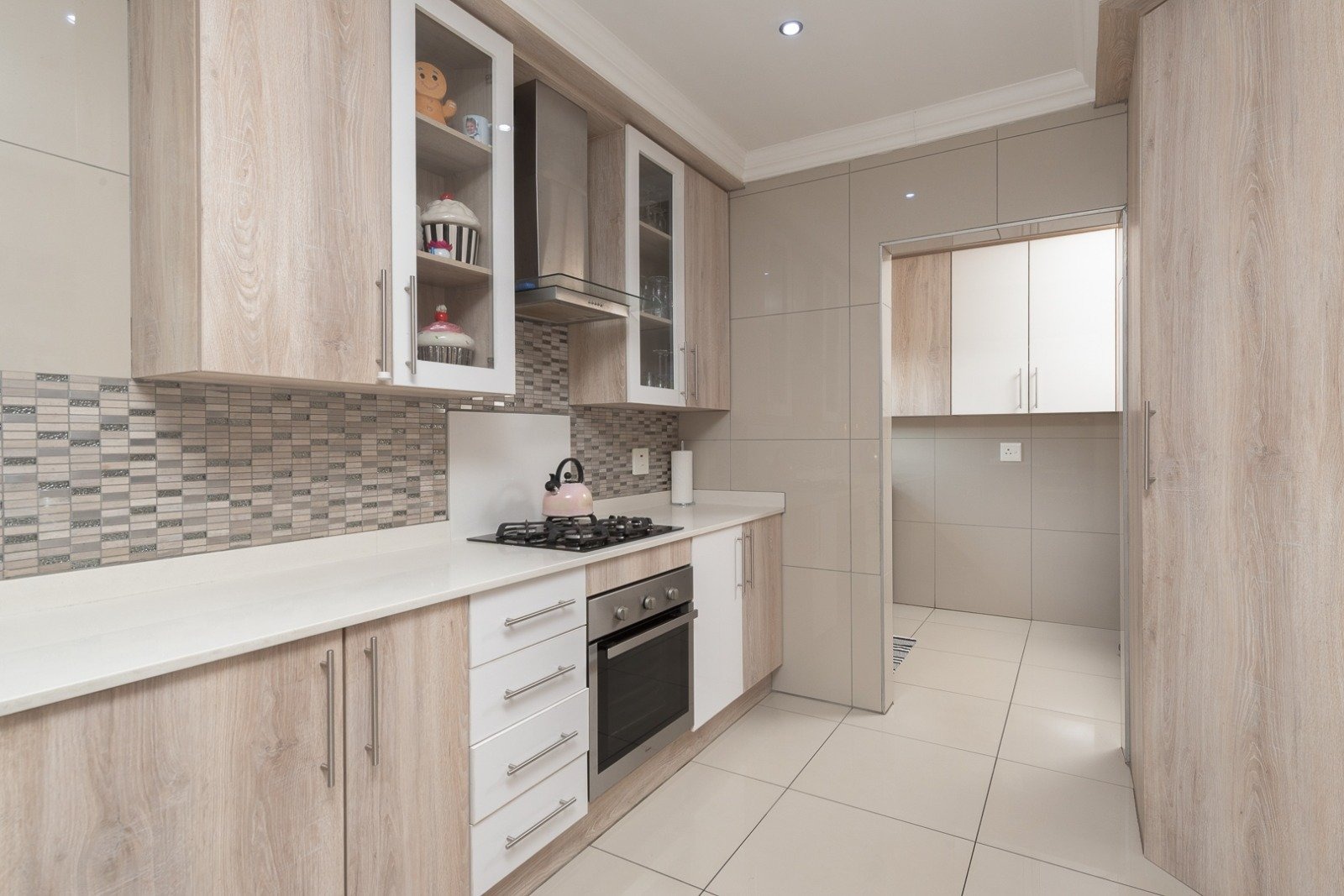 Step into a thoughtfully designed interior where the lounge and dining room create the perfect setting for family gatherings. The modern kitchen shines with light wood?grain cabinetry, white countertops, and a mosaic backsplash, offering ample storage and integrated appliance spaces. A functional breakfast bar and natural light make it the heart of the home.