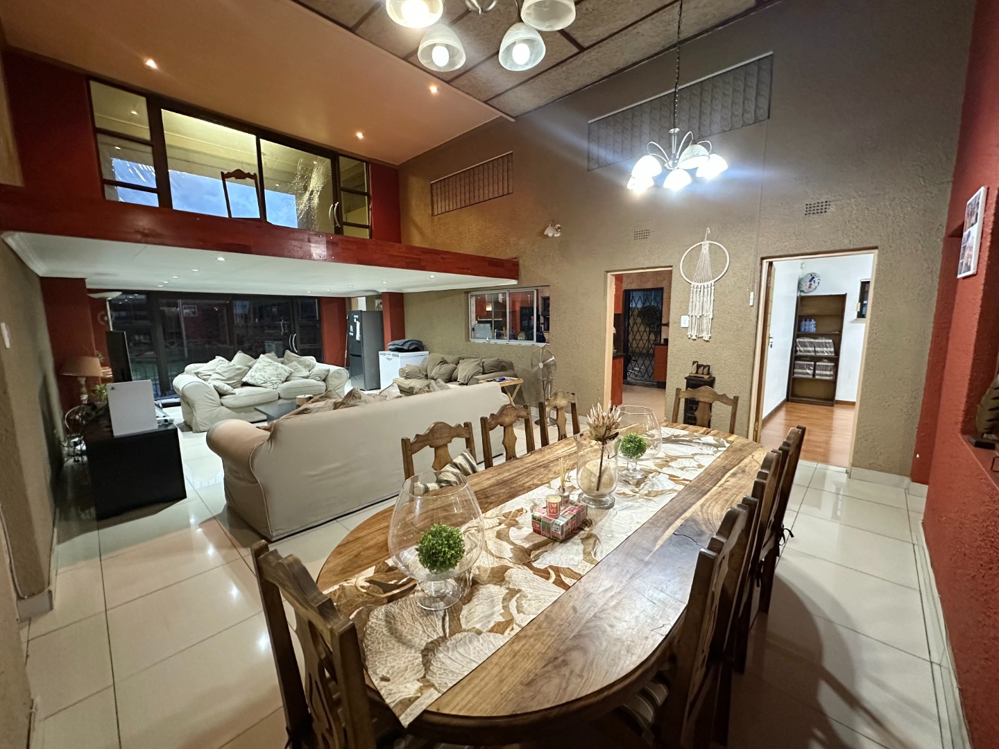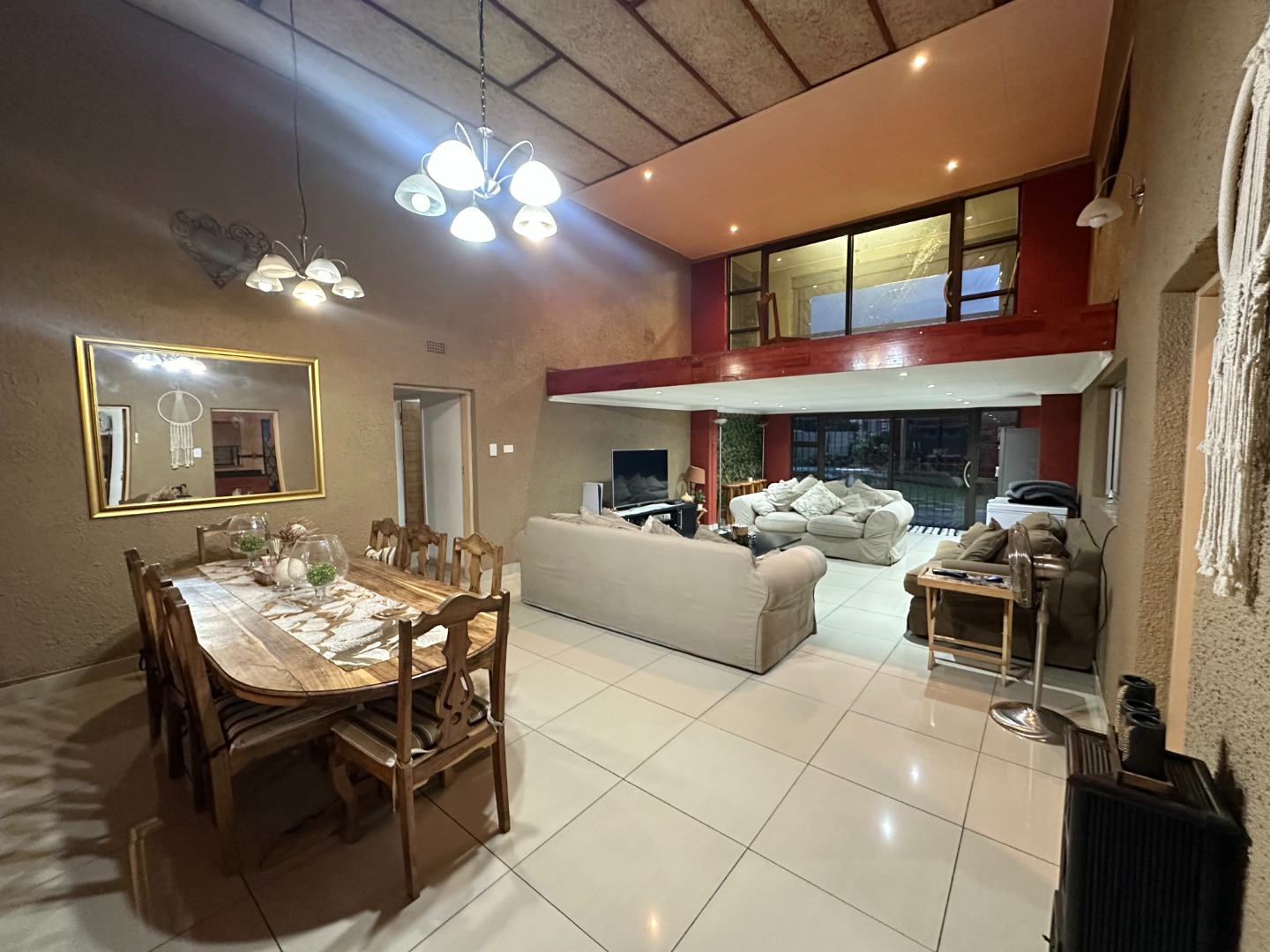 The home further opens into an expansive open-plan living and dining area complemented by a striking mezzanine level with balcony—perfect as a cozy retreat, home office, or additional relaxation space.