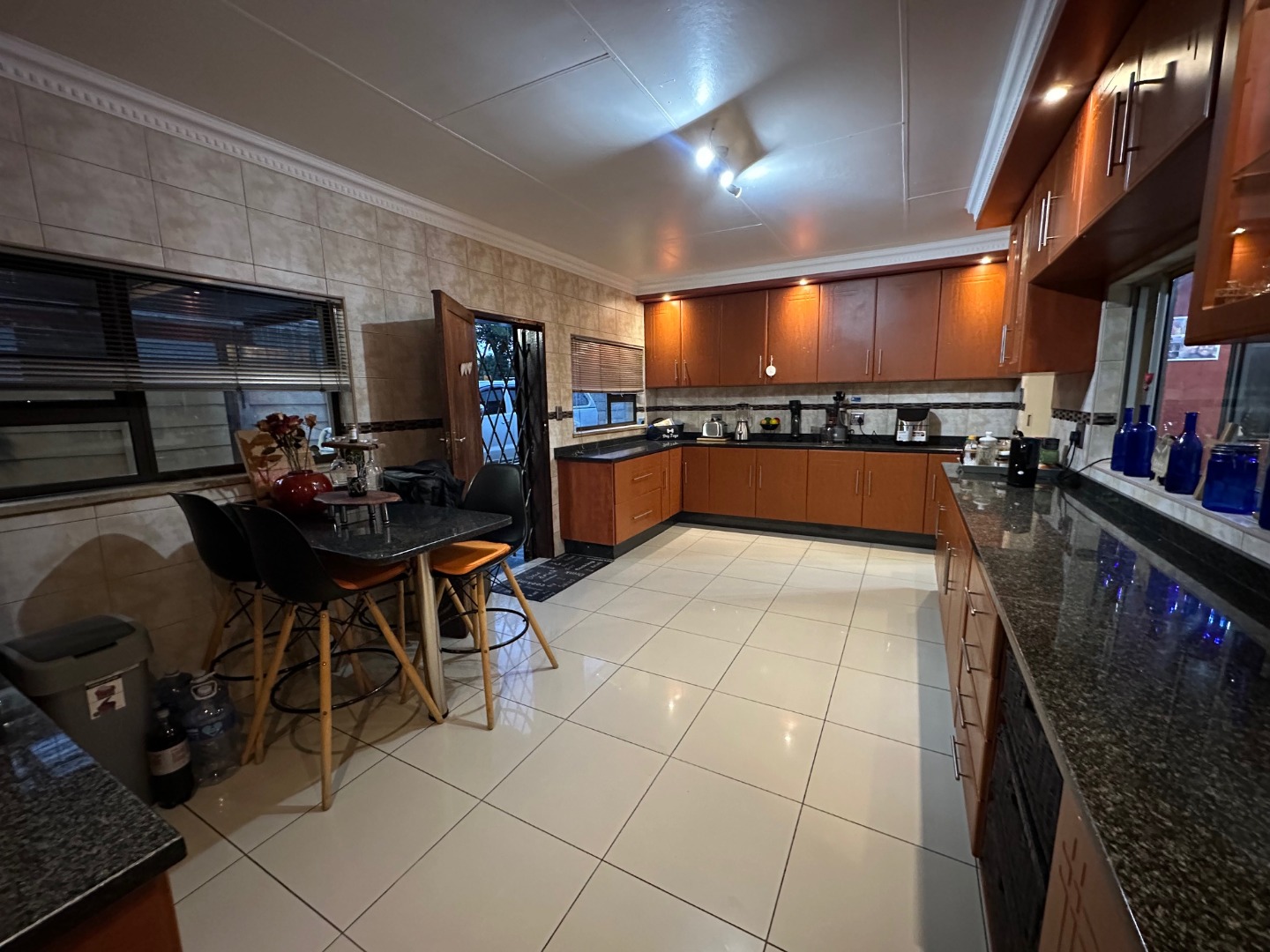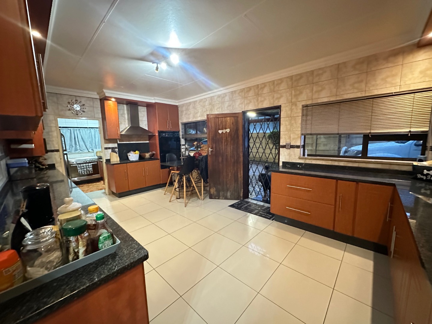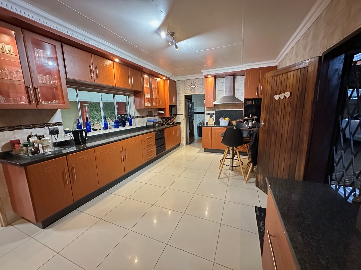 The kitchen is a standout feature, offering generous proportions, sleek granite countertops, and a separate scullery and laundry to keep your living spaces neat and organized.