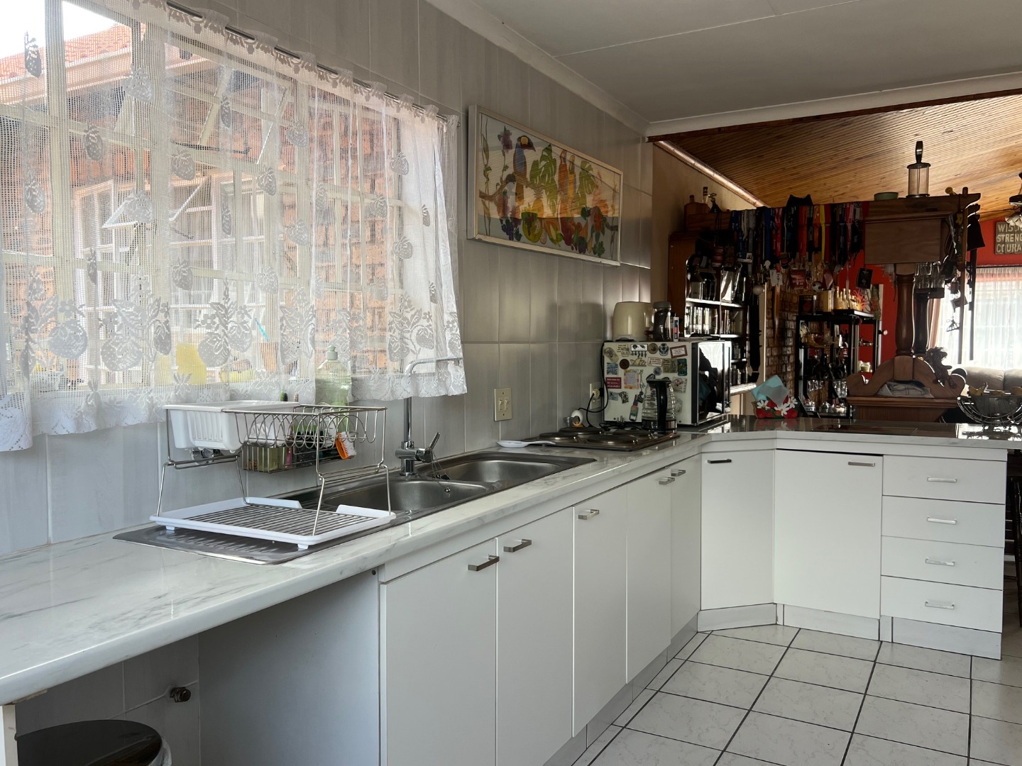 The kitchen is finished in beautiful white cabinetry and, while slightly dated, is exceptionally clean, neat, and spacious, offering excellent potential for modernisation.