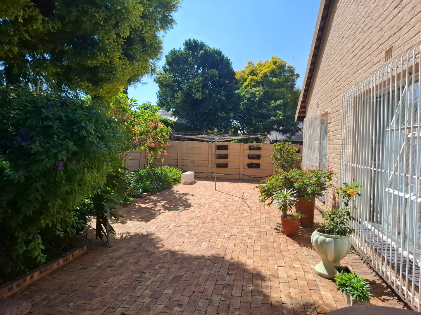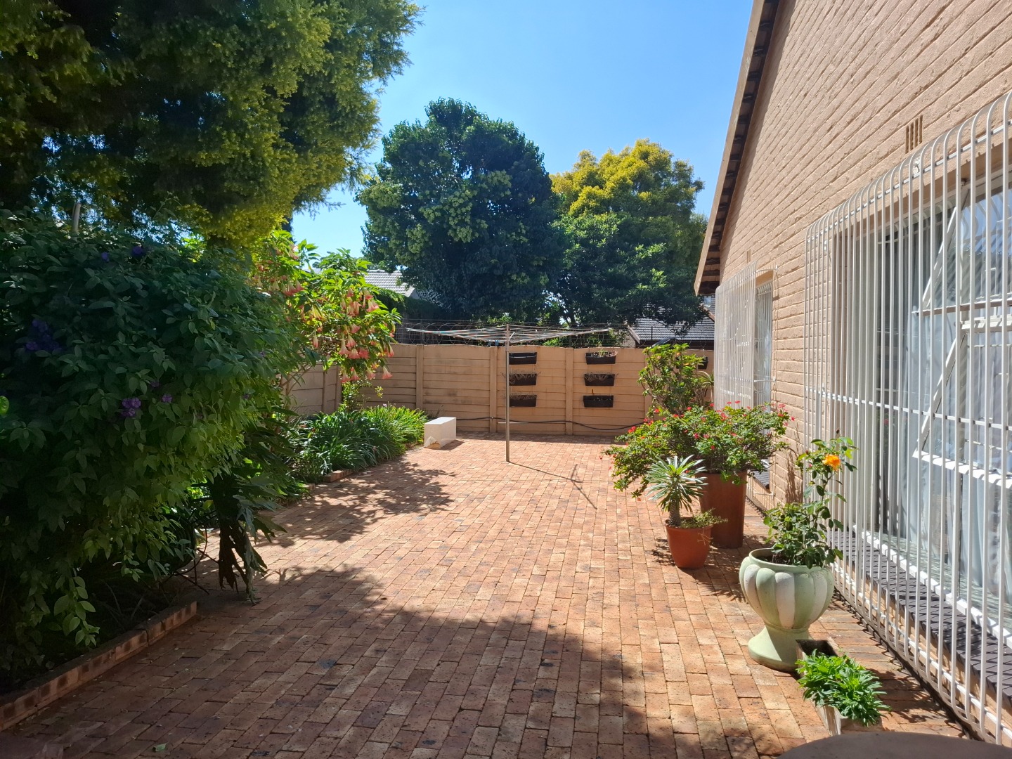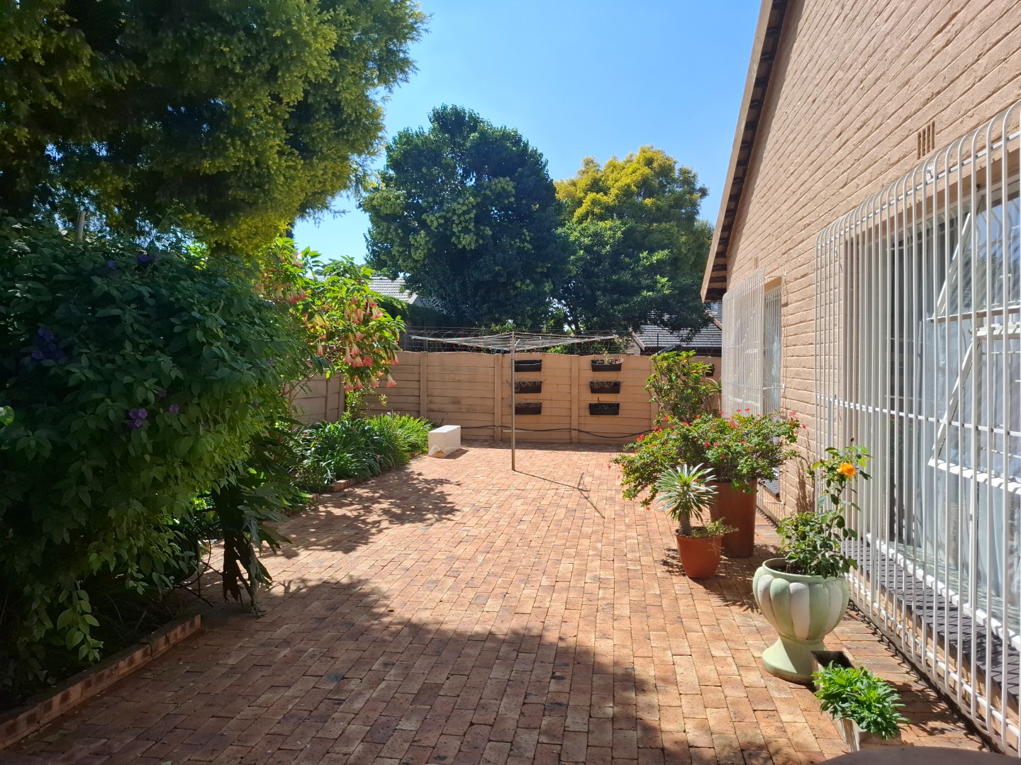 Security is comprehensive and designed for peace of mind, featuring an alarm system, security beams, automated gate, burglar bars, and a fully enclosed perimeter.