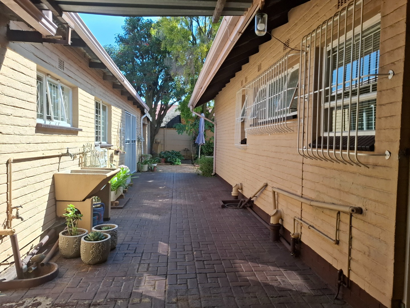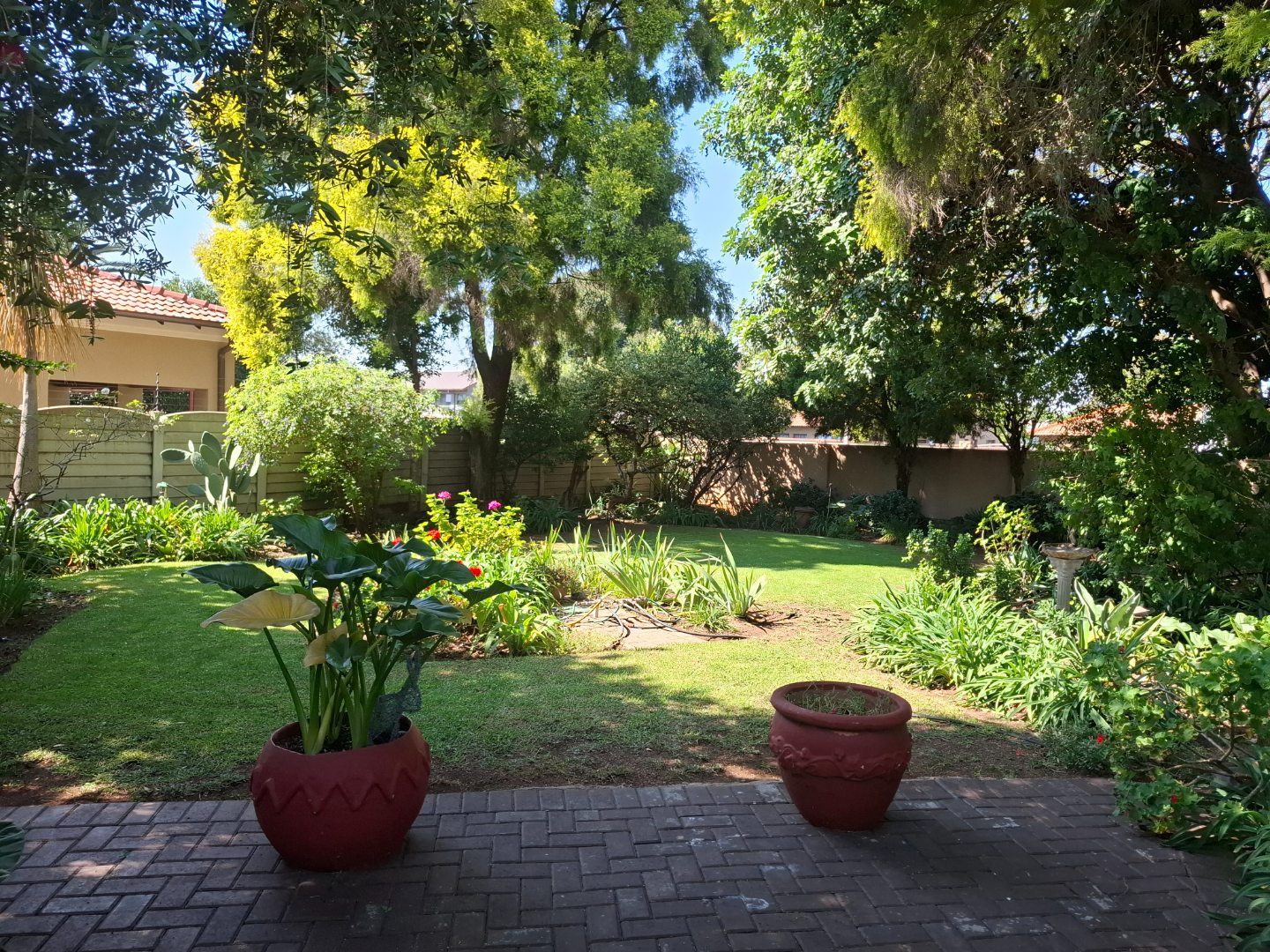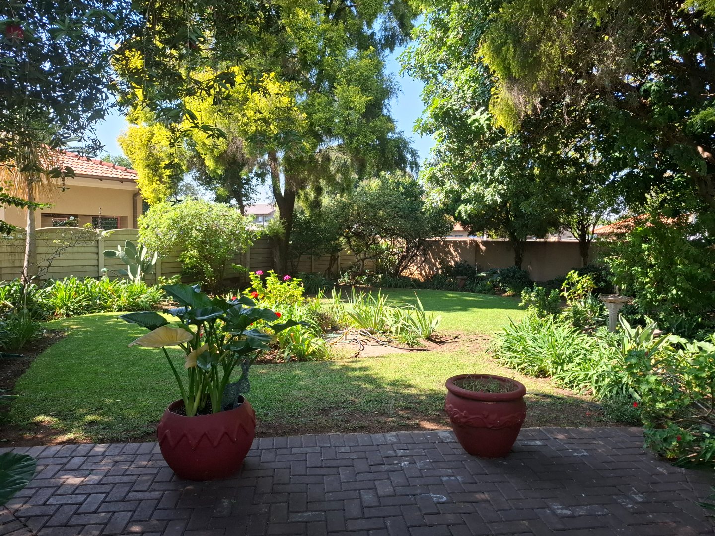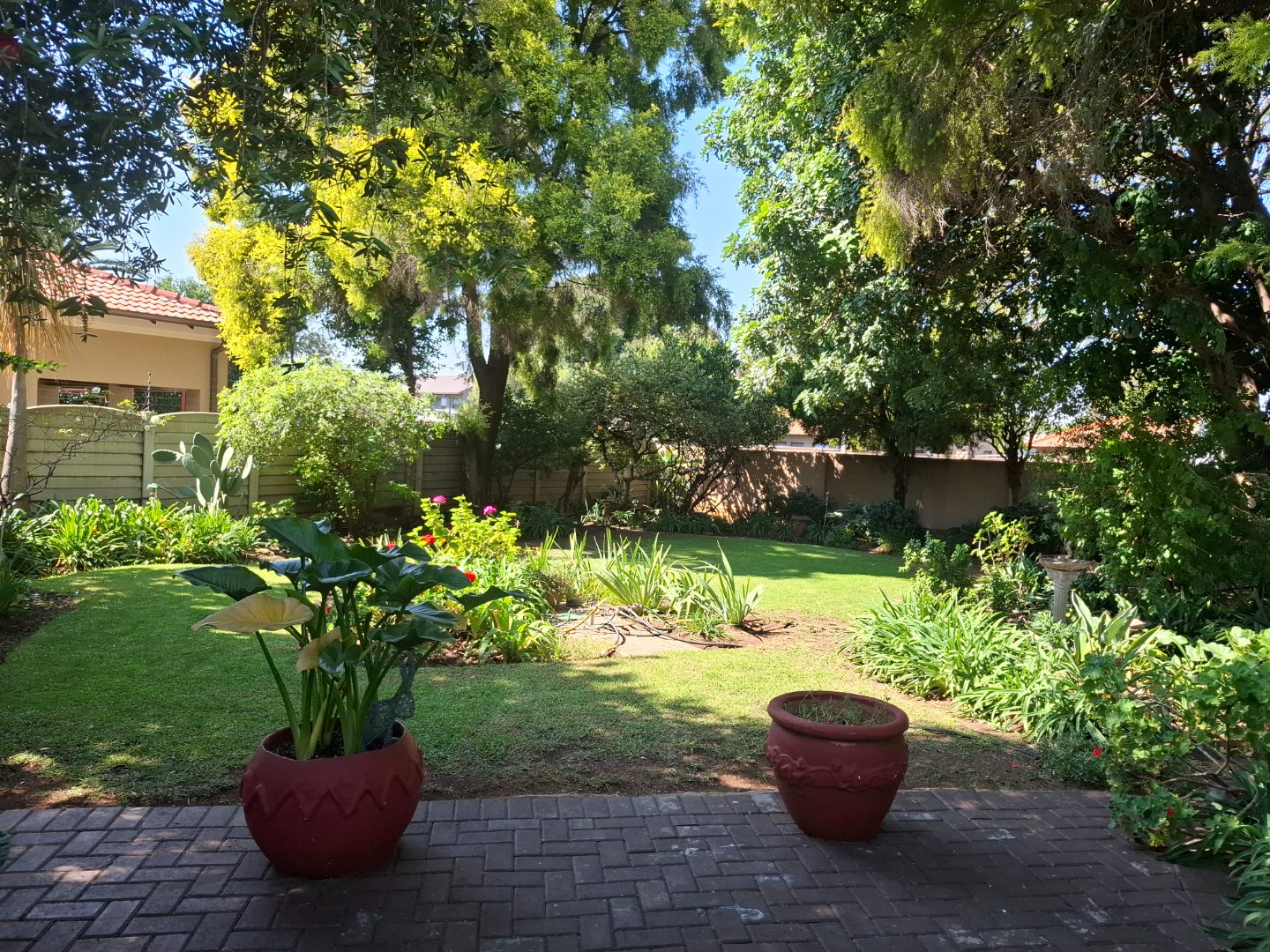 Security is comprehensive and designed for peace of mind, featuring an alarm system, security beams, automated gate, burglar bars, and a fully enclosed perimeter.