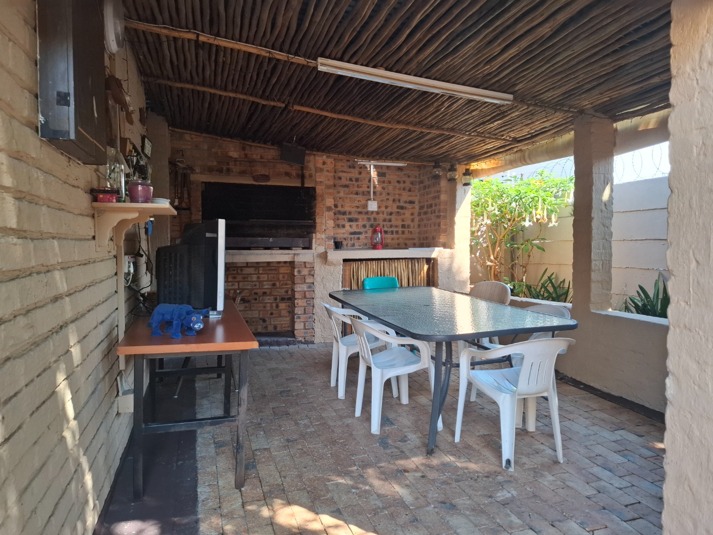 Enclosed patio with built-in braai