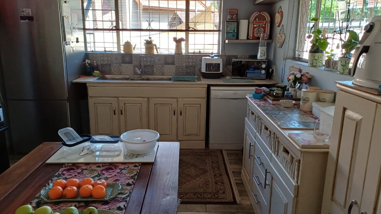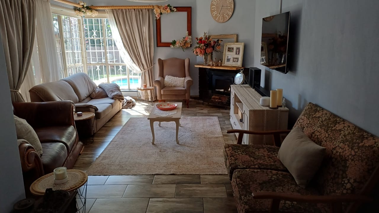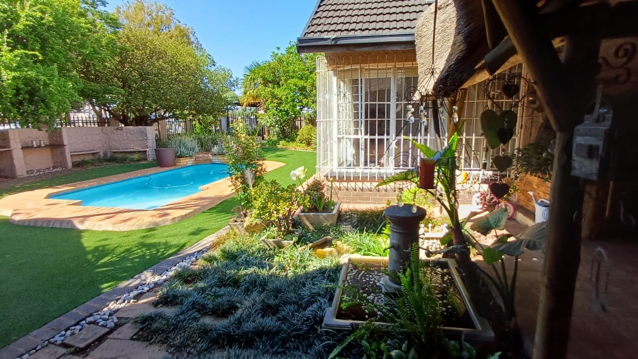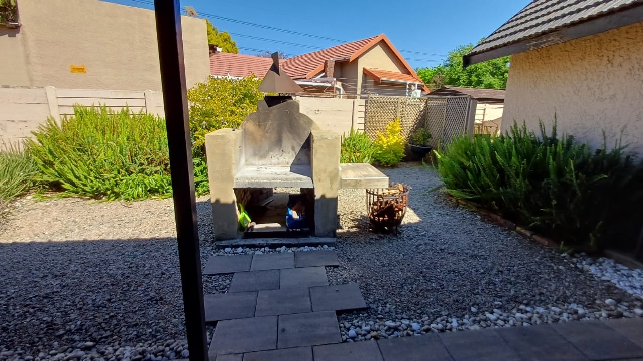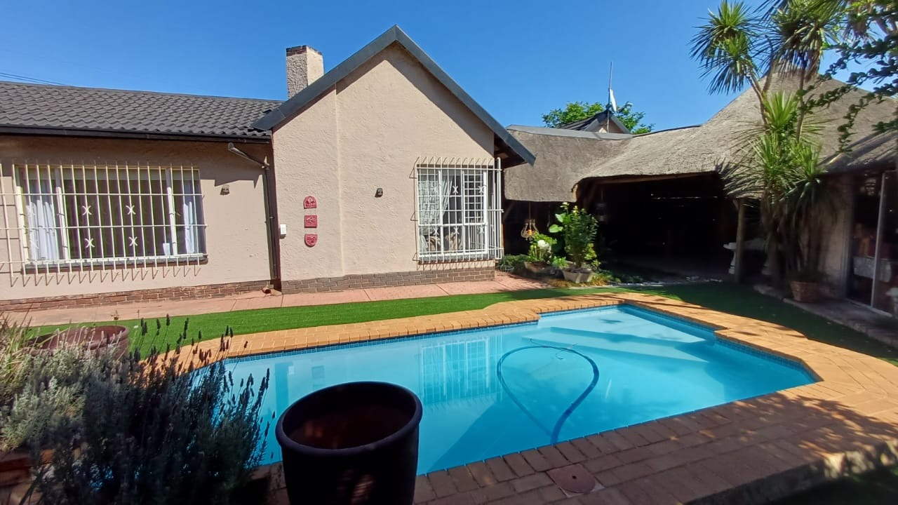 This home offers three comfortable bedrooms and two bathrooms, with one being a private ensuite for added luxury and convenience. Head outside to discover your very own private oasis! The sparkling swimming pool is perfect for cooling off on hot days, complemented by a large thatched lapa with a built-in braai – just imagine those lekker weekend get-togethers. There's also a lovely patio for outdoor relaxation, and the garden features low-maintenance artificial turf, making it super pet-friendly. Plus, you get to enjoy a scenic view!