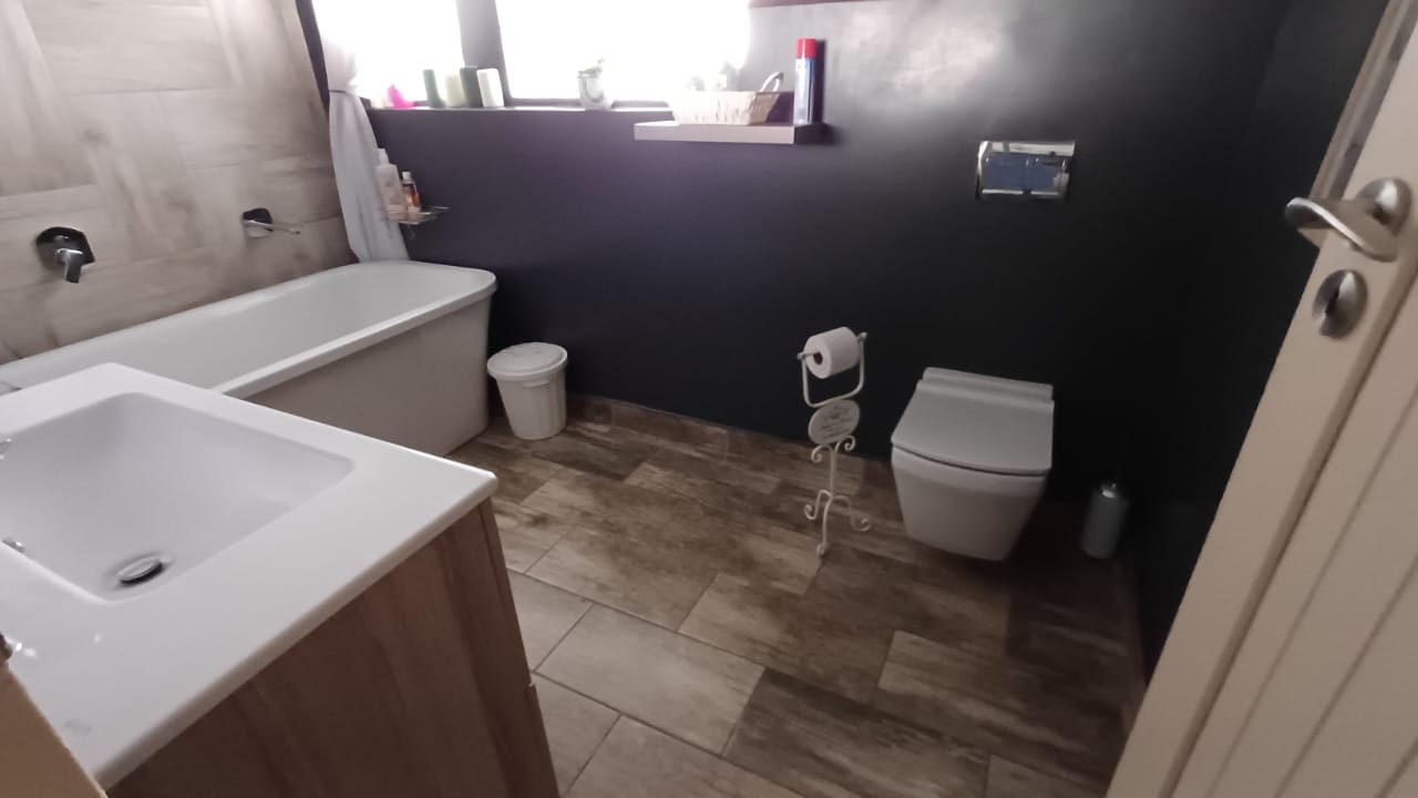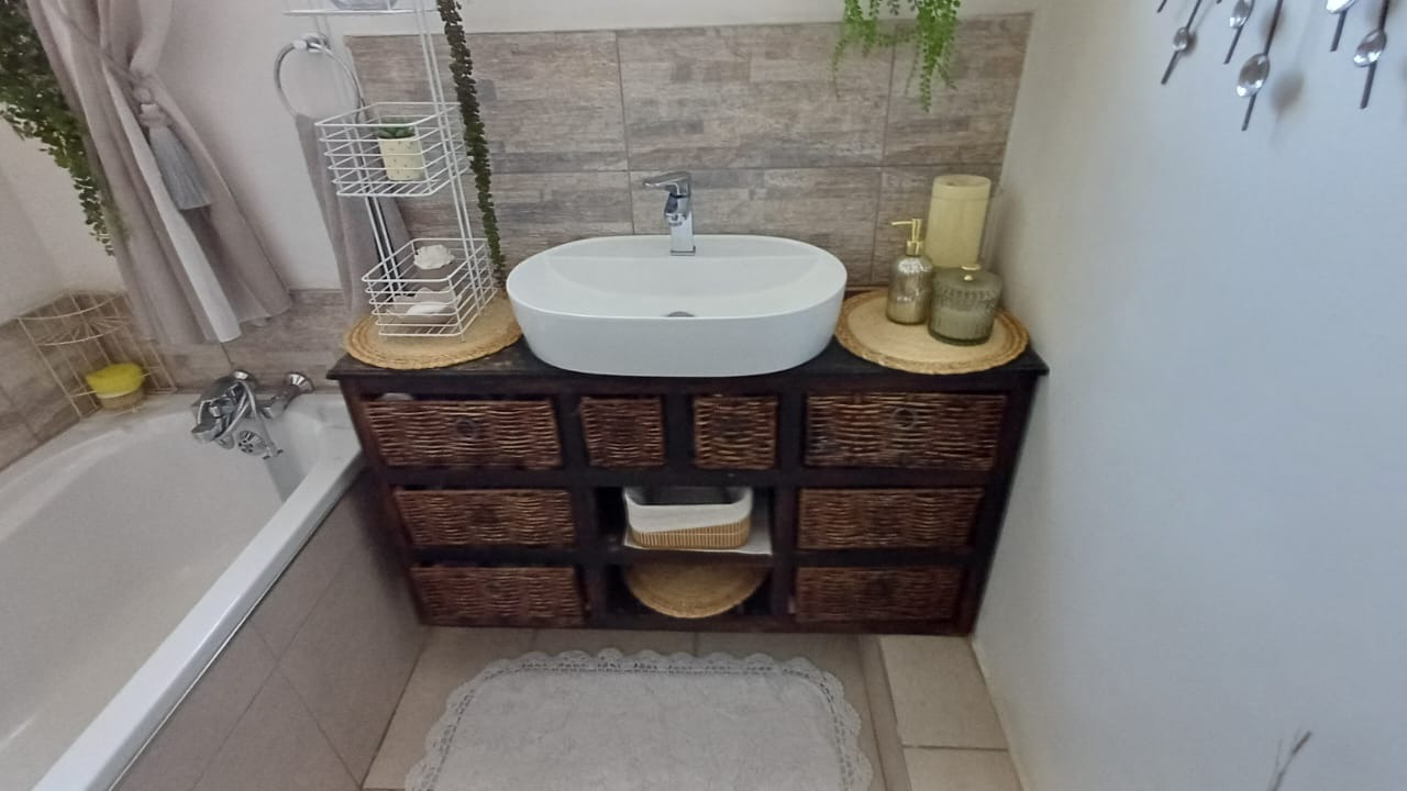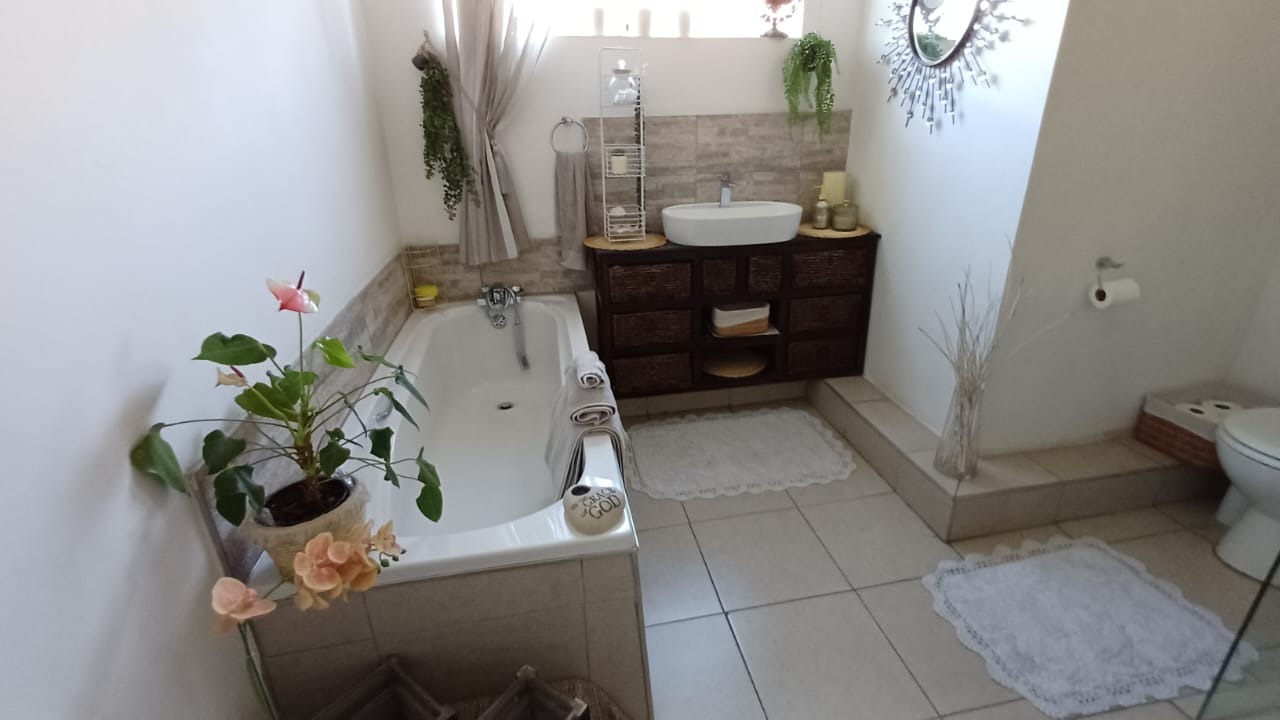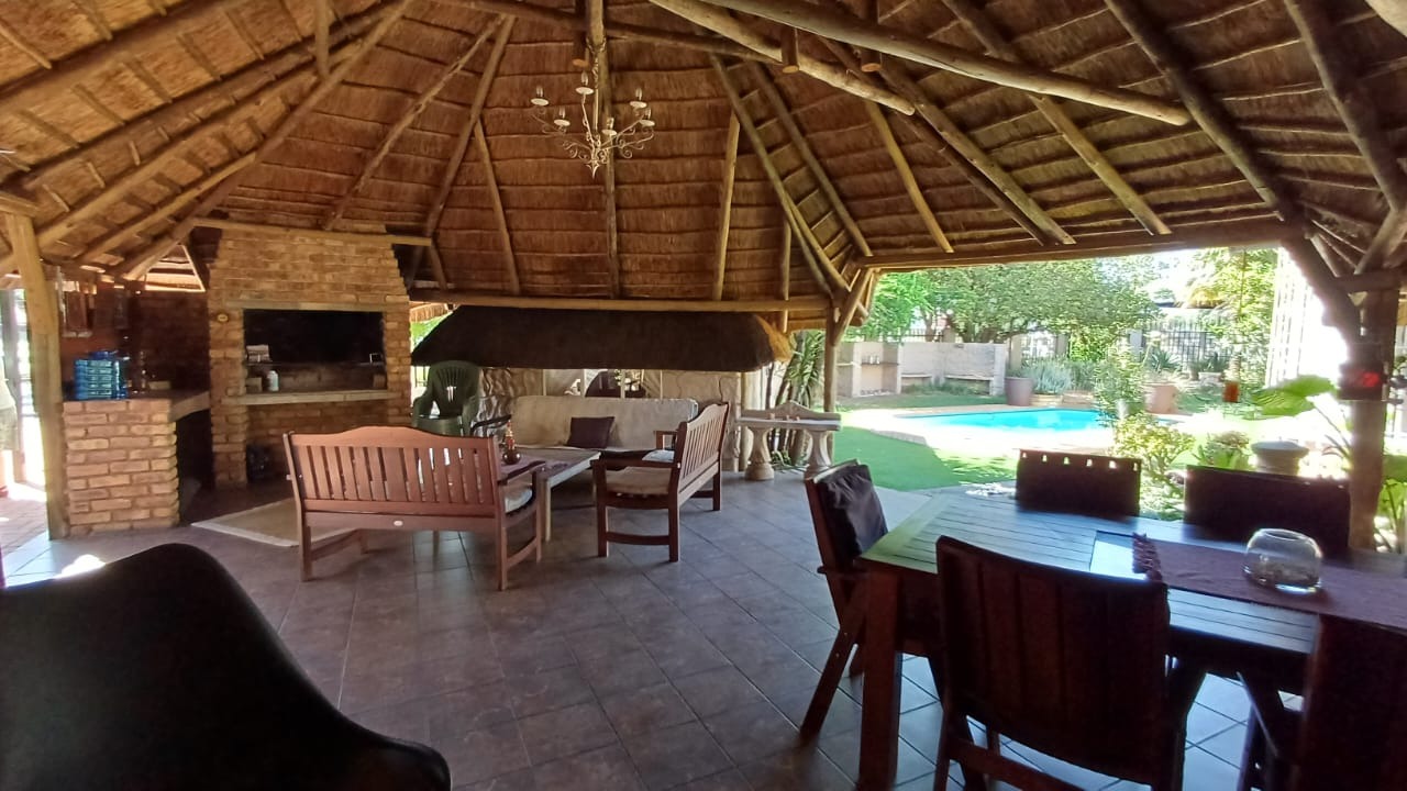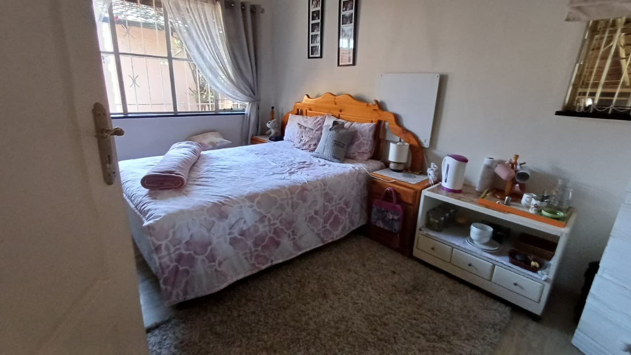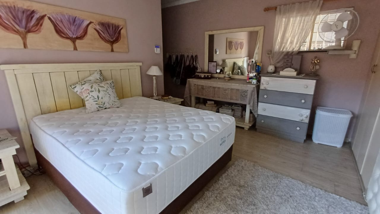 This home offers three comfortable bedrooms and two bathrooms, with one being a private ensuite for added luxury and convenience. Head outside to discover your very own private oasis! The sparkling swimming pool is perfect for cooling off on hot days, complemented by a large thatched lapa with a built-in braai – just imagine those lekker weekend get-togethers. There's also a lovely patio for outdoor relaxation, and the garden features low-maintenance artificial turf, making it super pet-friendly. Plus, you get to enjoy a scenic view!