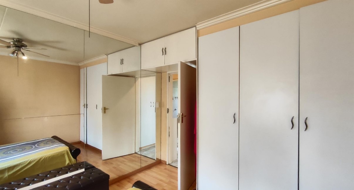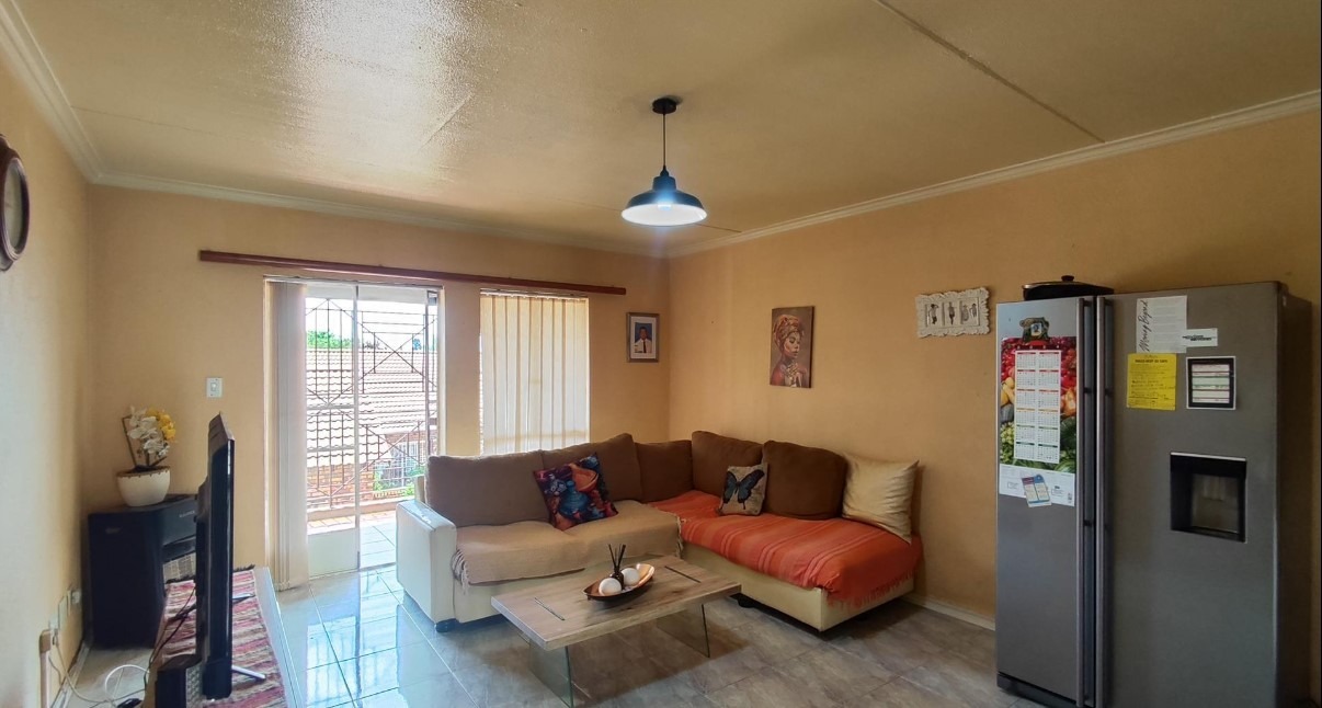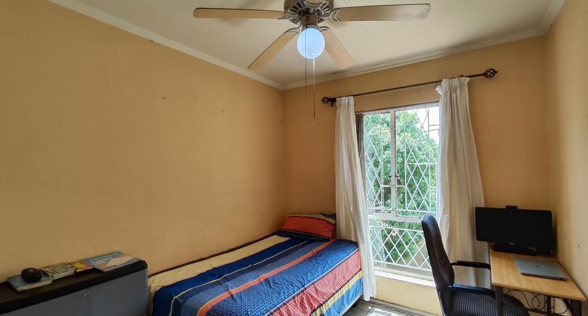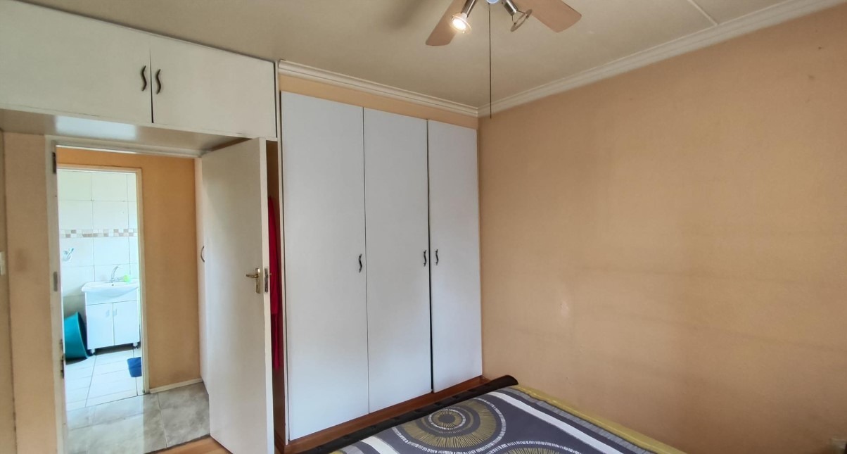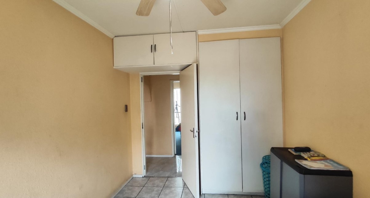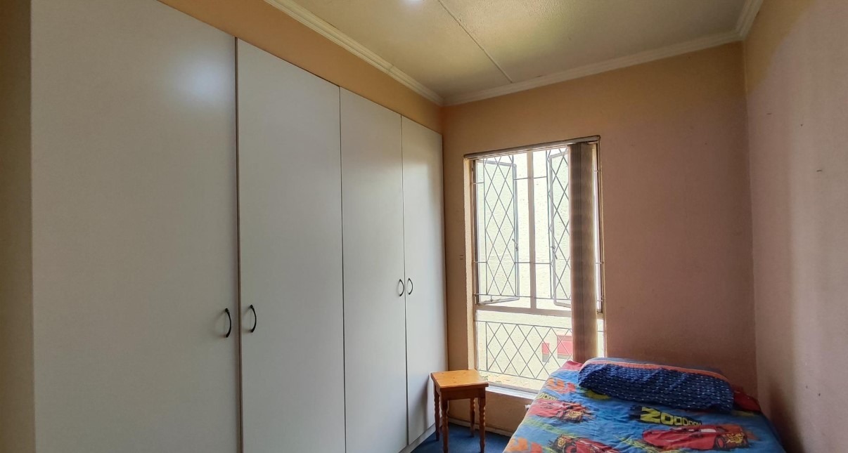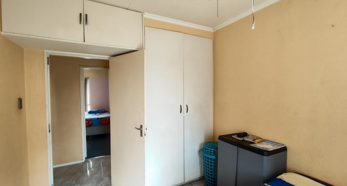 All three bedrooms are well-sized and fitted with built-in cupboards, providing practical storage while maintaining a clean, modern aesthetic. A neatly finished bathroom completes the home, while security bars and controlled complex access enhance peace of mind.