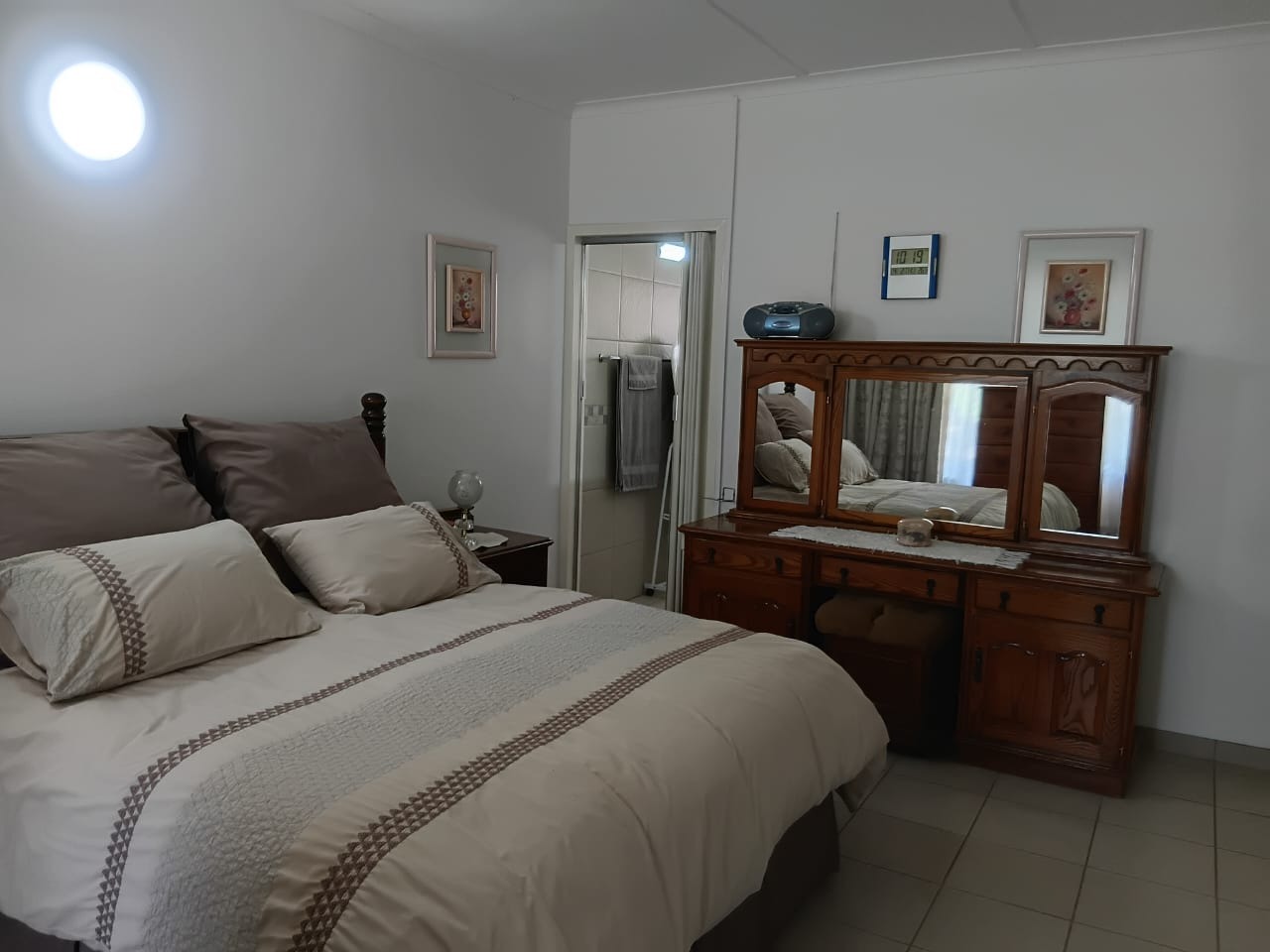 The home welcomes you with a well-maintained garden and fully walled exterior, ensuring privacy and peace of mind. Inside, you’ll find a thoughtfully designed layout featuring four generously sized bedrooms, all fitted with built-in cupboards. The main bedroom boasts a private en-suite bathroom, creating a peaceful retreat, while a second full bathroom caters to the rest of the home.