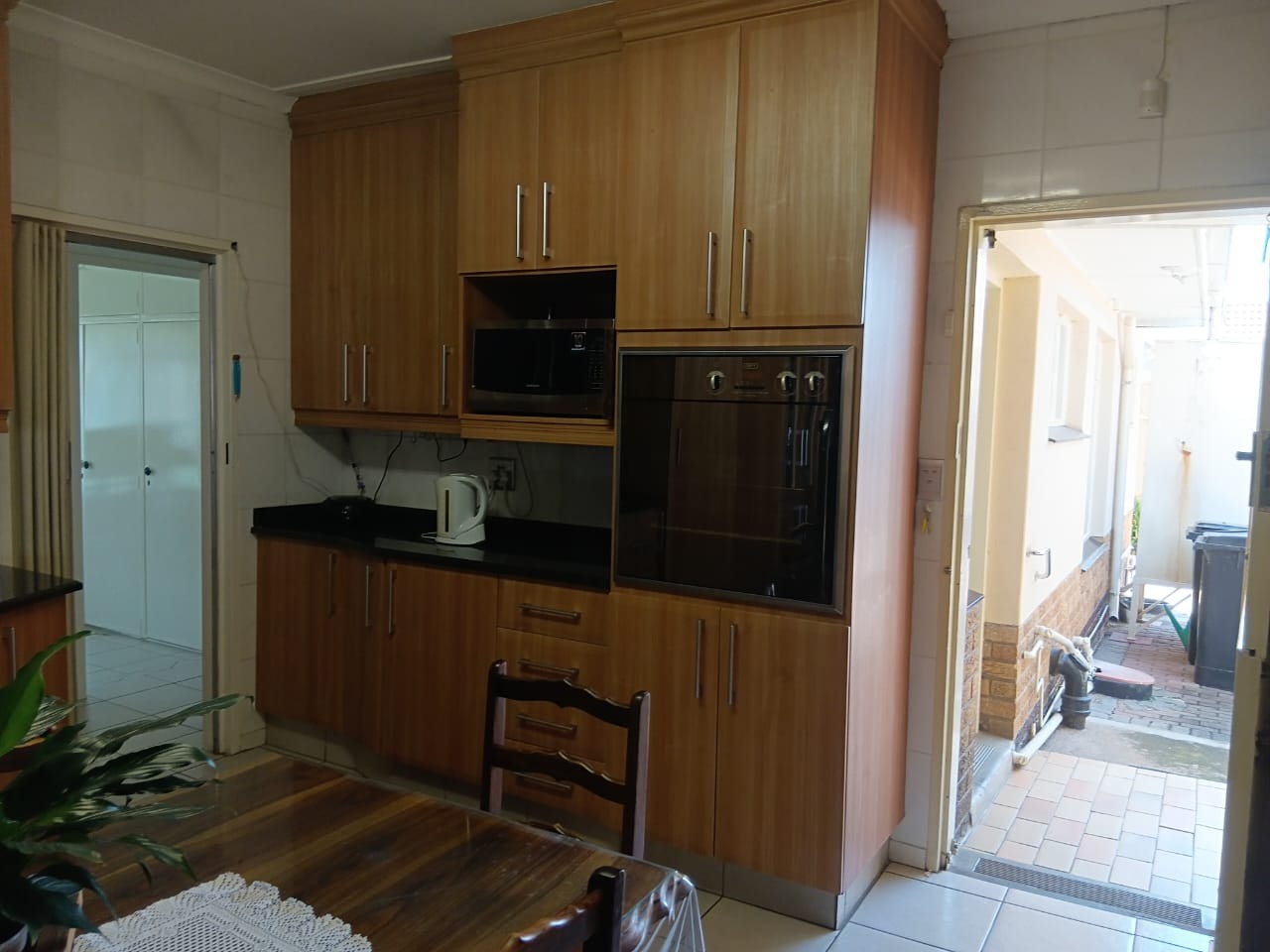 The home welcomes you with a well-maintained garden and fully walled exterior, ensuring privacy and peace of mind. Inside, you’ll find a thoughtfully designed layout featuring four generously sized bedrooms, all fitted with built-in cupboards. The main bedroom boasts a private en-suite bathroom, creating a peaceful retreat, while a second full bathroom caters to the rest of the home.