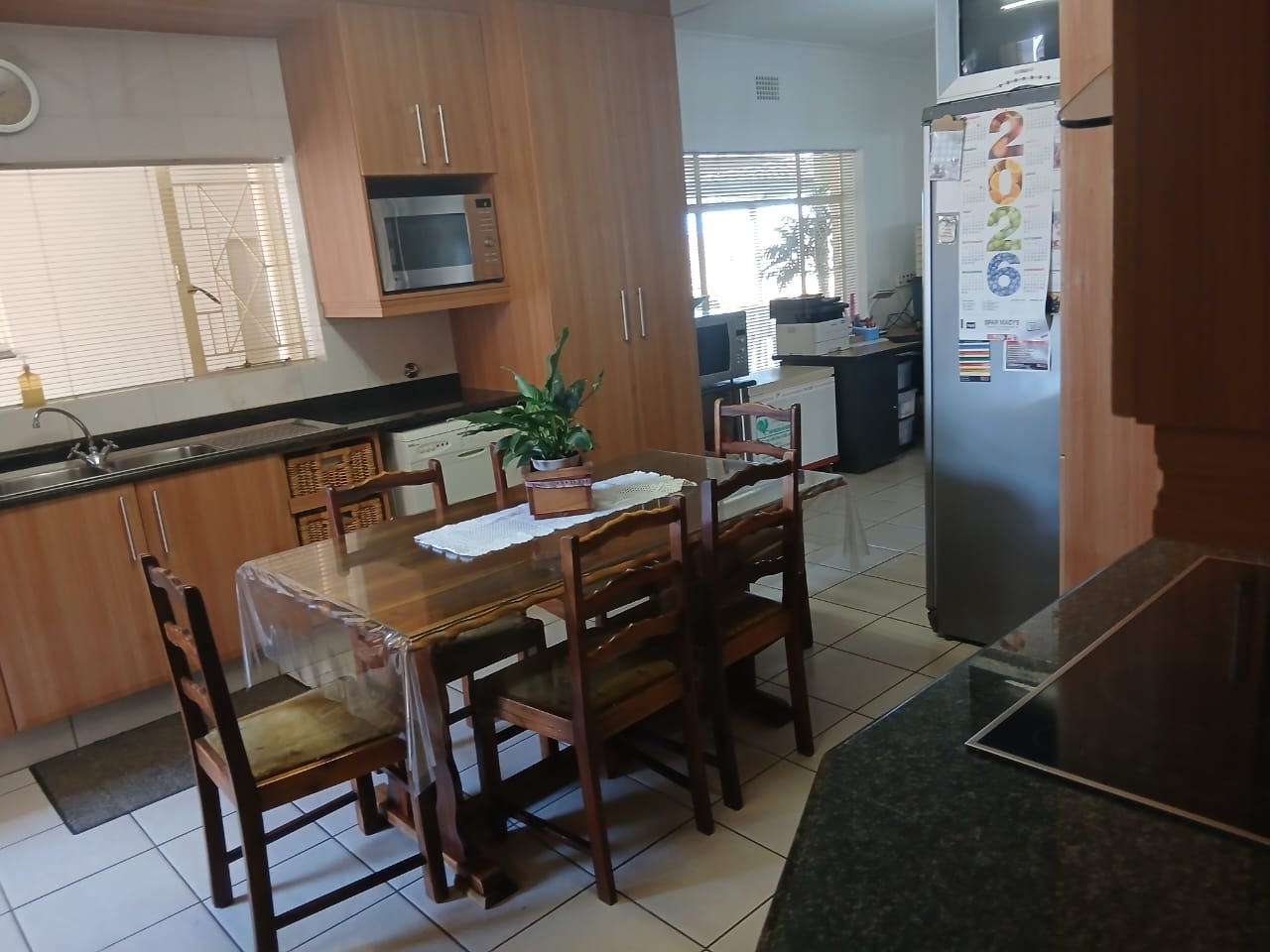 Security is a priority, with features such as 24-hour security, robust burglar bars, and secure security gates, all within a totally walled and fenced perimeter. This pet-friendly home provides a secure and convenient suburban lifestyle. With an erf size of 433 sqm, it offers a substantial footprint for family life.