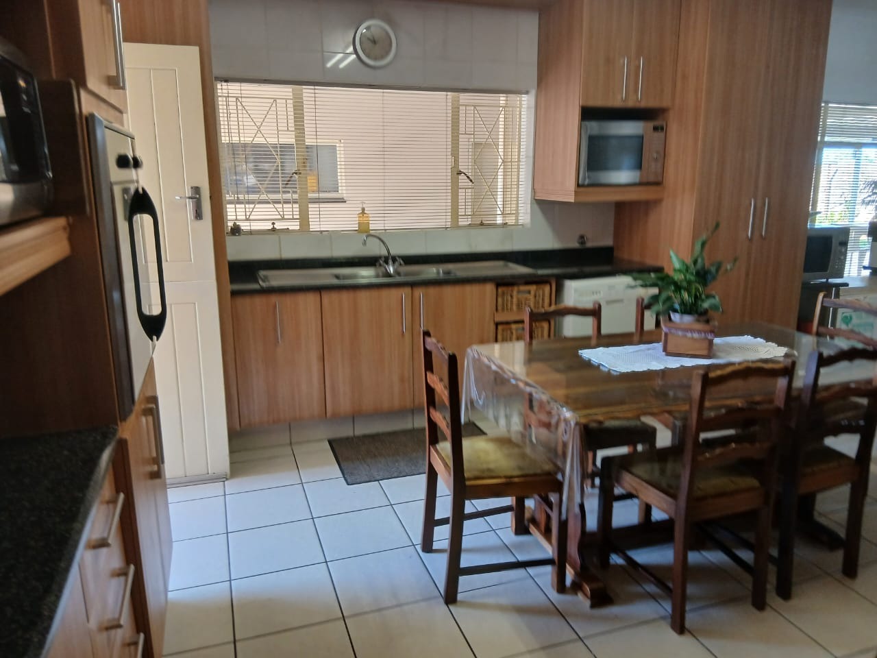 Security is a priority, with features such as 24-hour security, robust burglar bars, and secure security gates, all within a totally walled and fenced perimeter. This pet-friendly home provides a secure and convenient suburban lifestyle. With an erf size of 433 sqm, it offers a substantial footprint for family life.