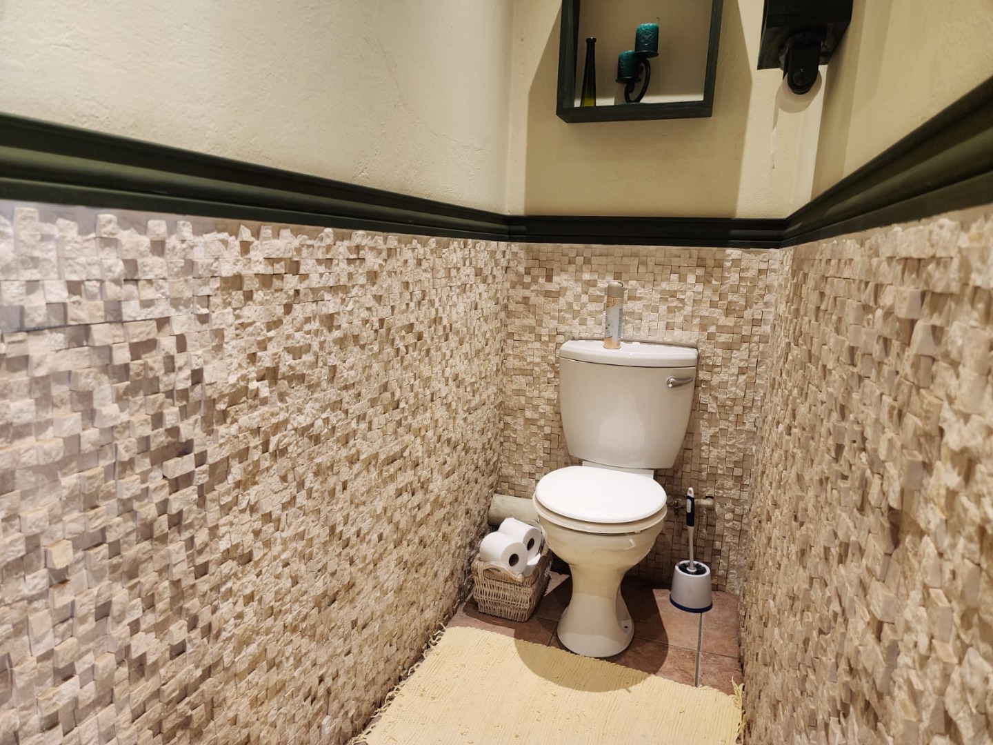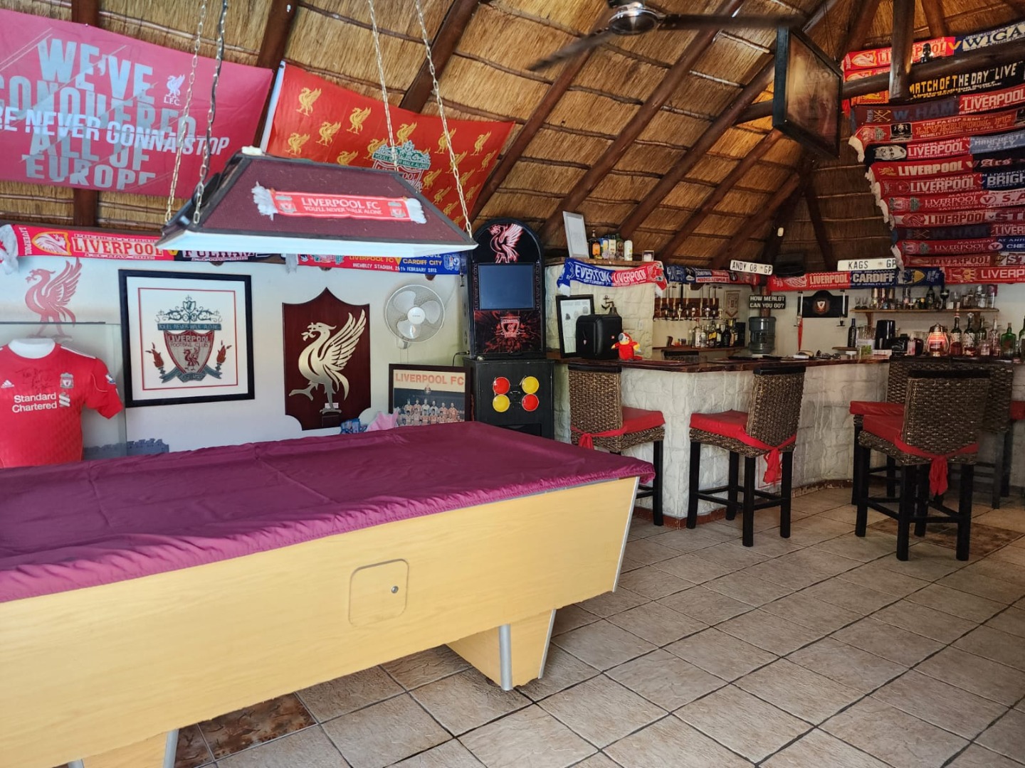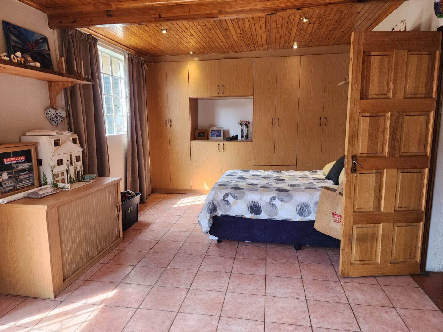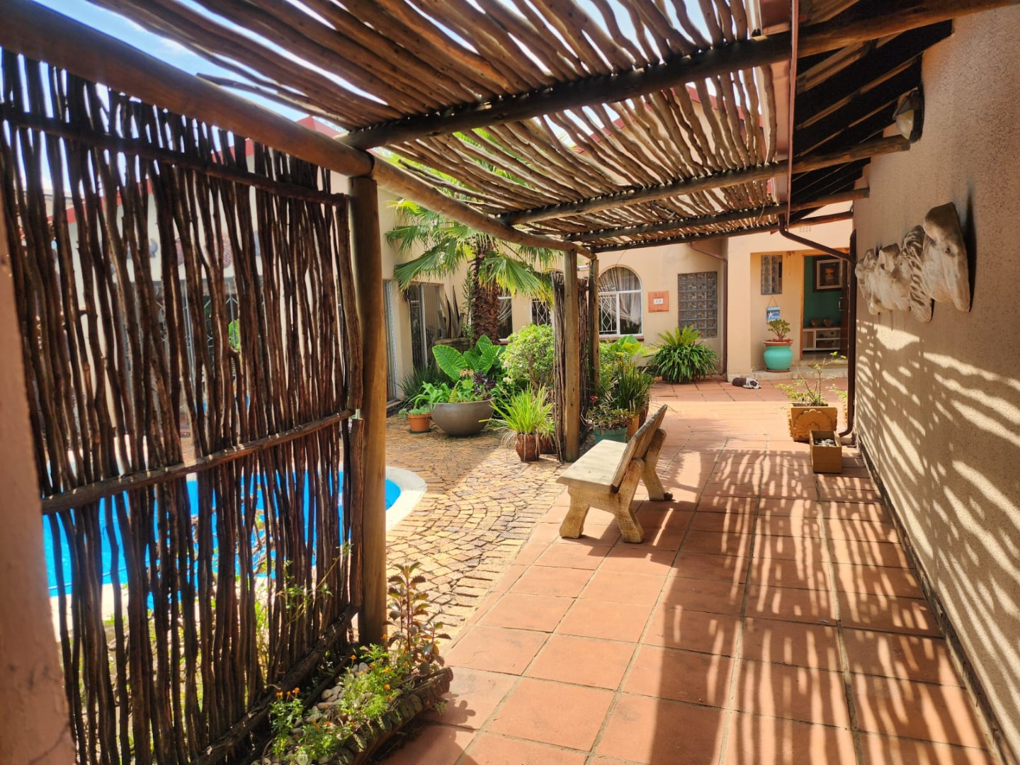 A dedicated indoor bar area, complete with built-in cabinetry and space for a pool table, further enhances the home’s entertainment appeal. An outdoor lapa with a built-in braai provides the perfect setting for relaxed gatherings and alfresco dining.