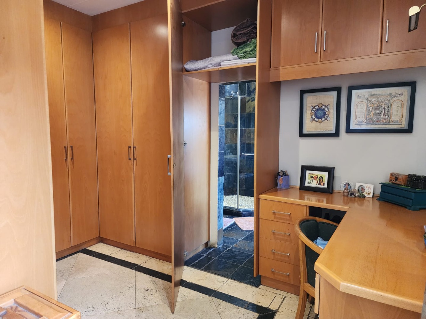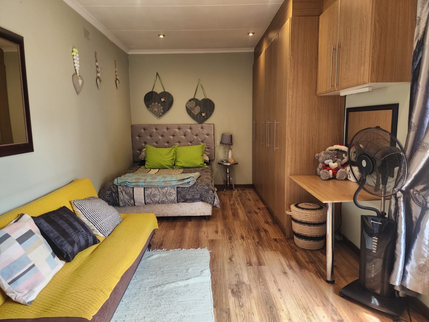 The home features four well-appointed bedrooms designed with comfort in mind. Two bedrooms include laminated flooring, built-in cupboards, and air conditioning.