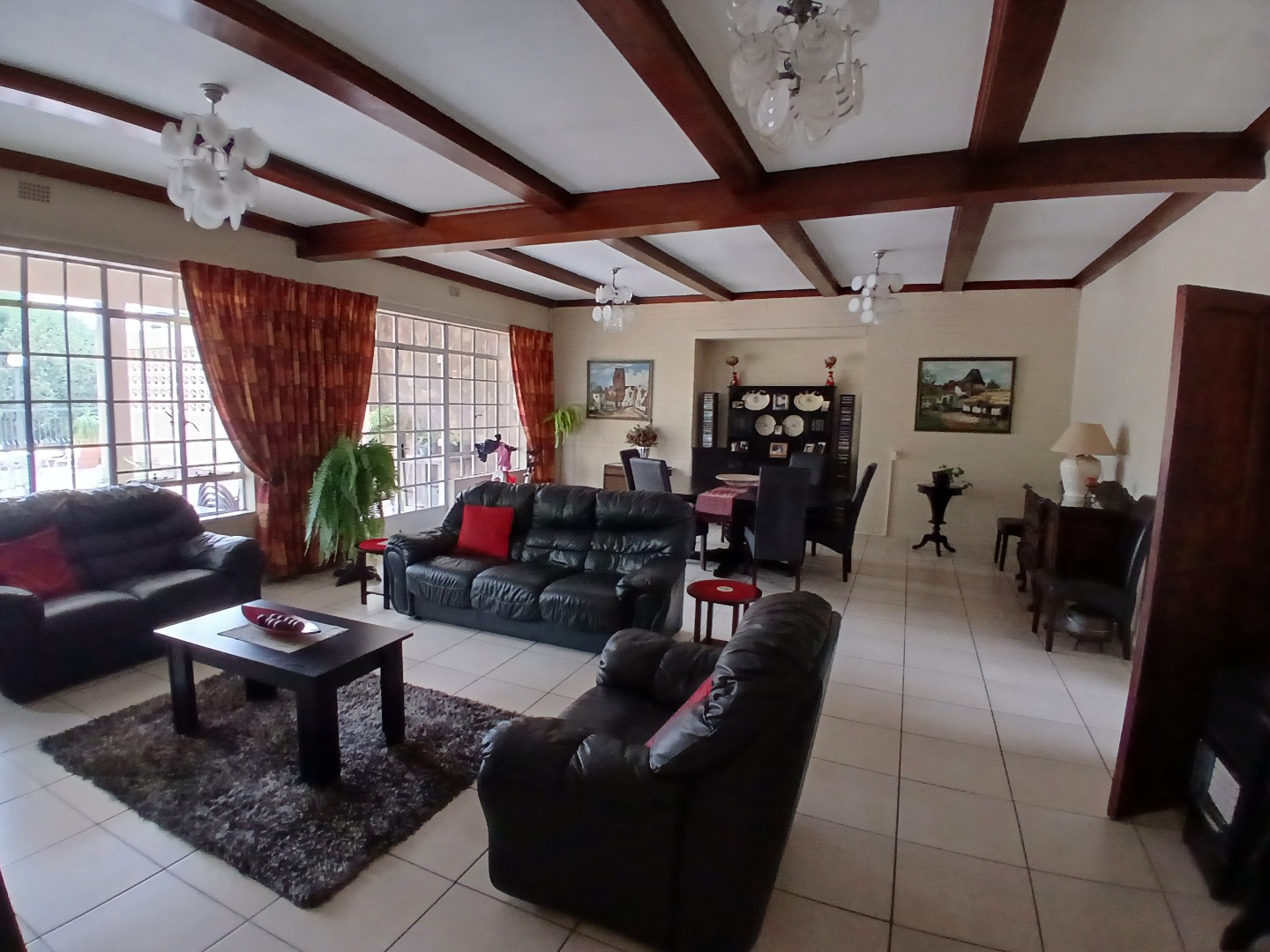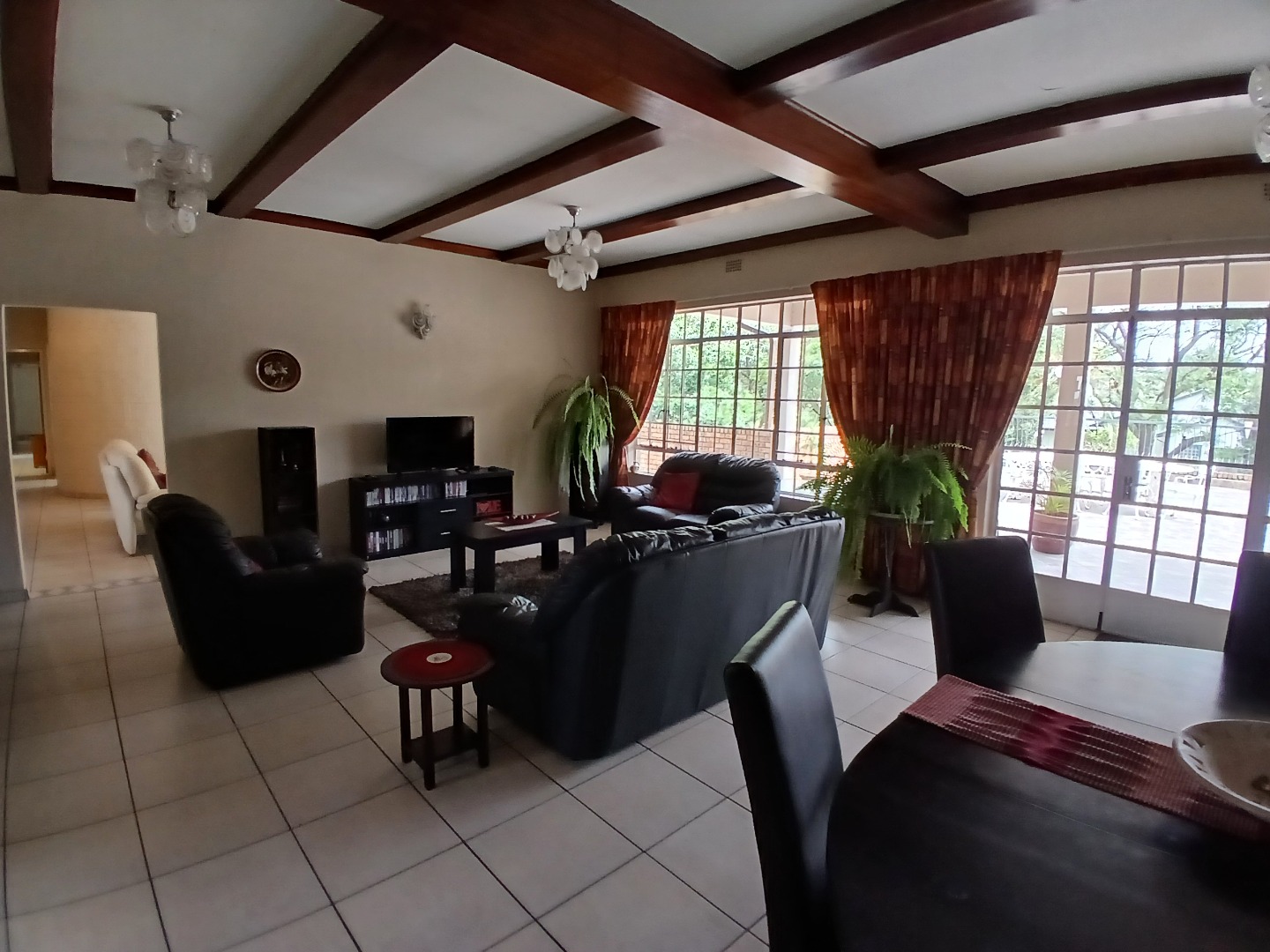 This remarkable property features three generous lounges, including a main lounge with doors opening onto a massive outdoor patio—ideal for entertaining or relaxing in the open air.