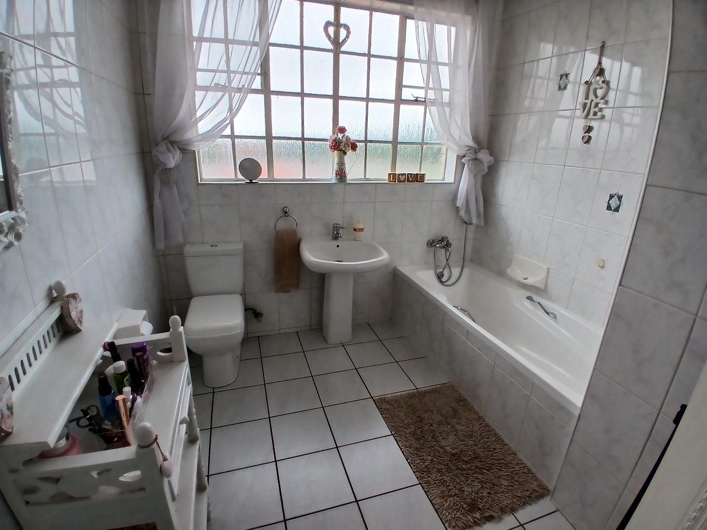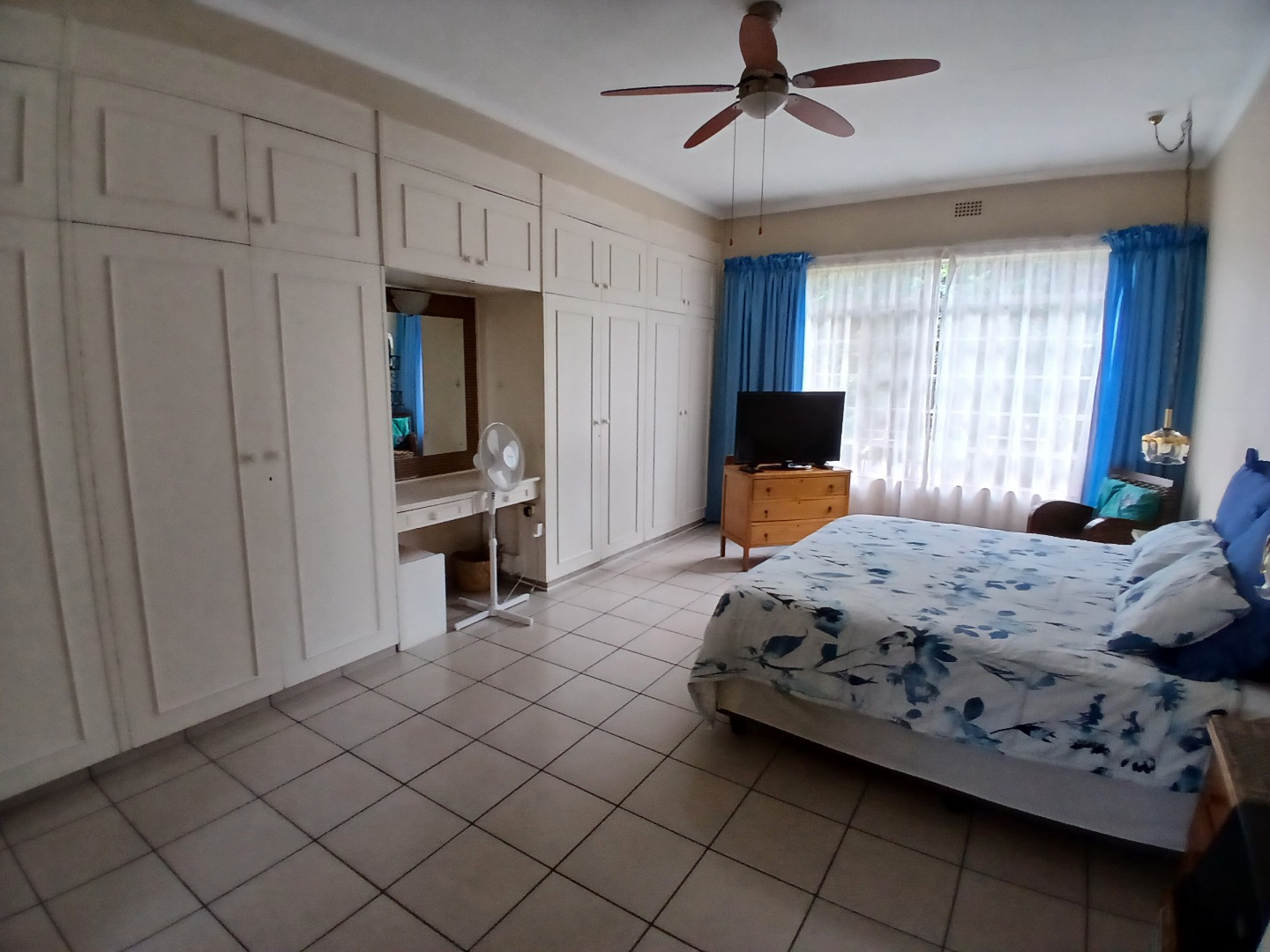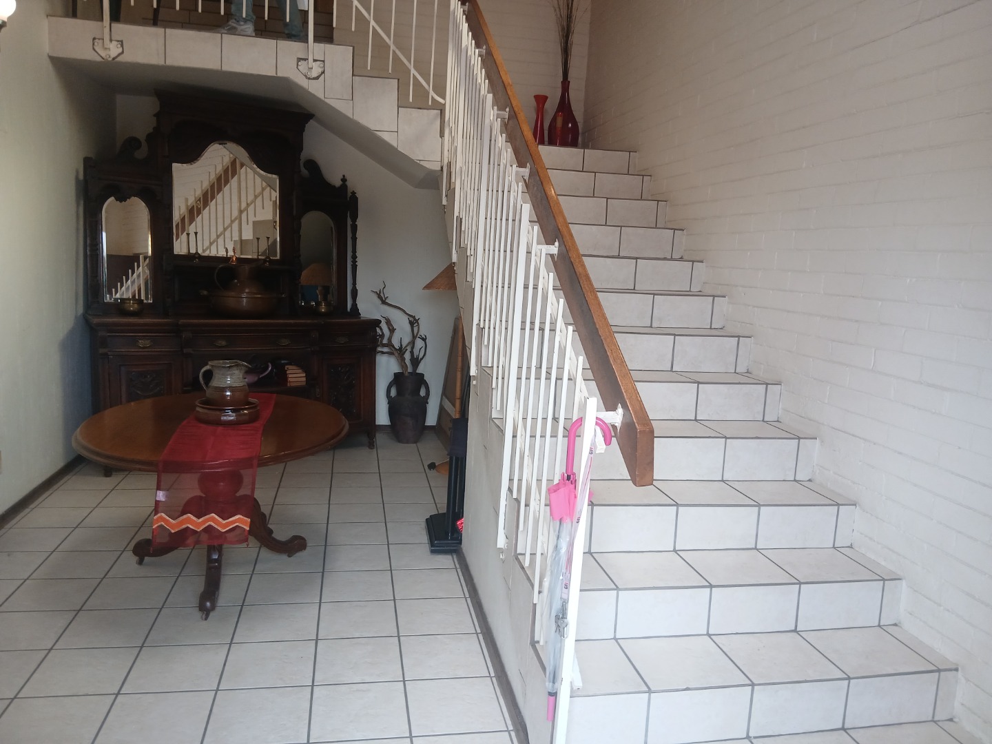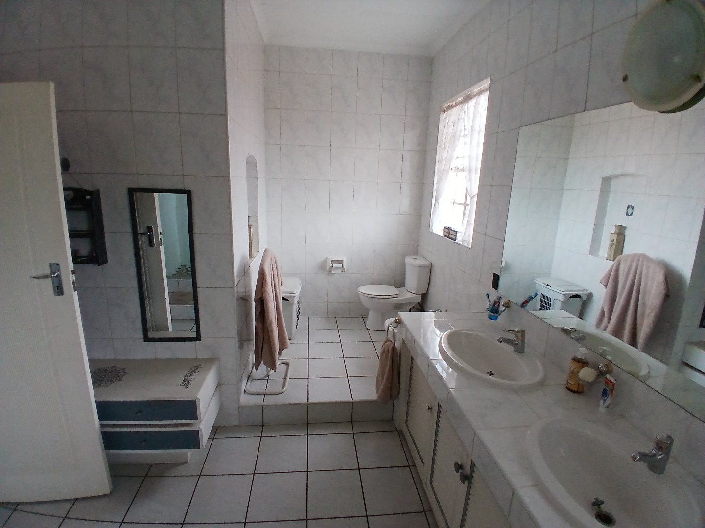 This penthouse boasts four well-sized bedrooms, three of which are fully tiled and fitted with built-in cupboards. The luxurious main bedroom includes a spacious en-suite bathroom fit for royalty, while the remaining bedrooms share a neat bathroom equipped with a bath, basin, and toilet. A guest toilet with a basin is also conveniently located for visitors.