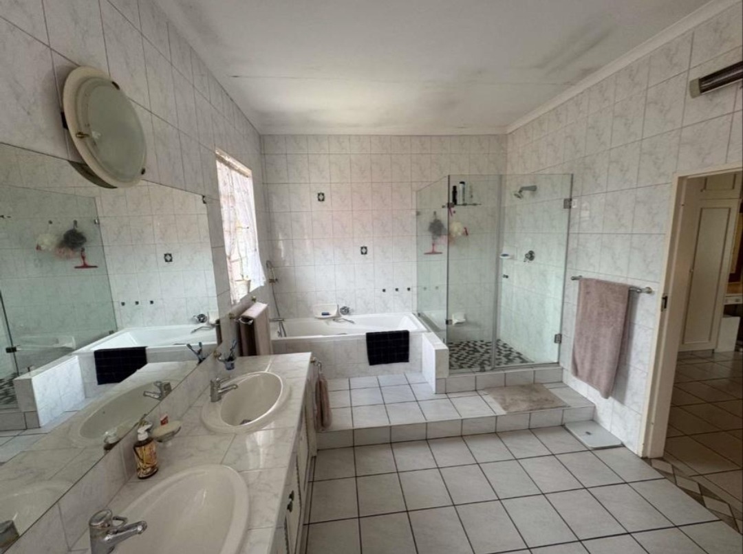 •Main En-Suite: Bath with hand shower, large shower, double basins, toilet, and bidet