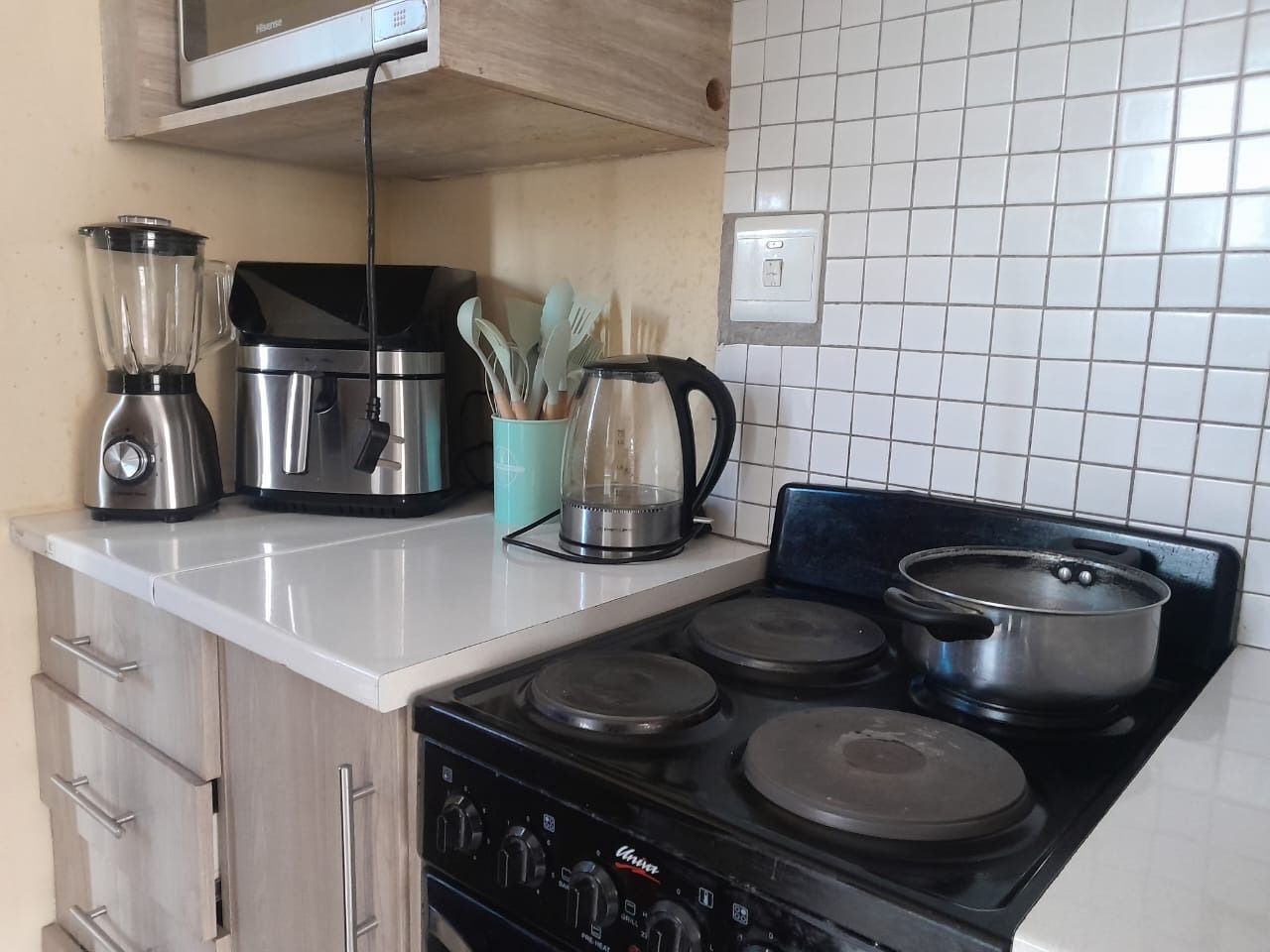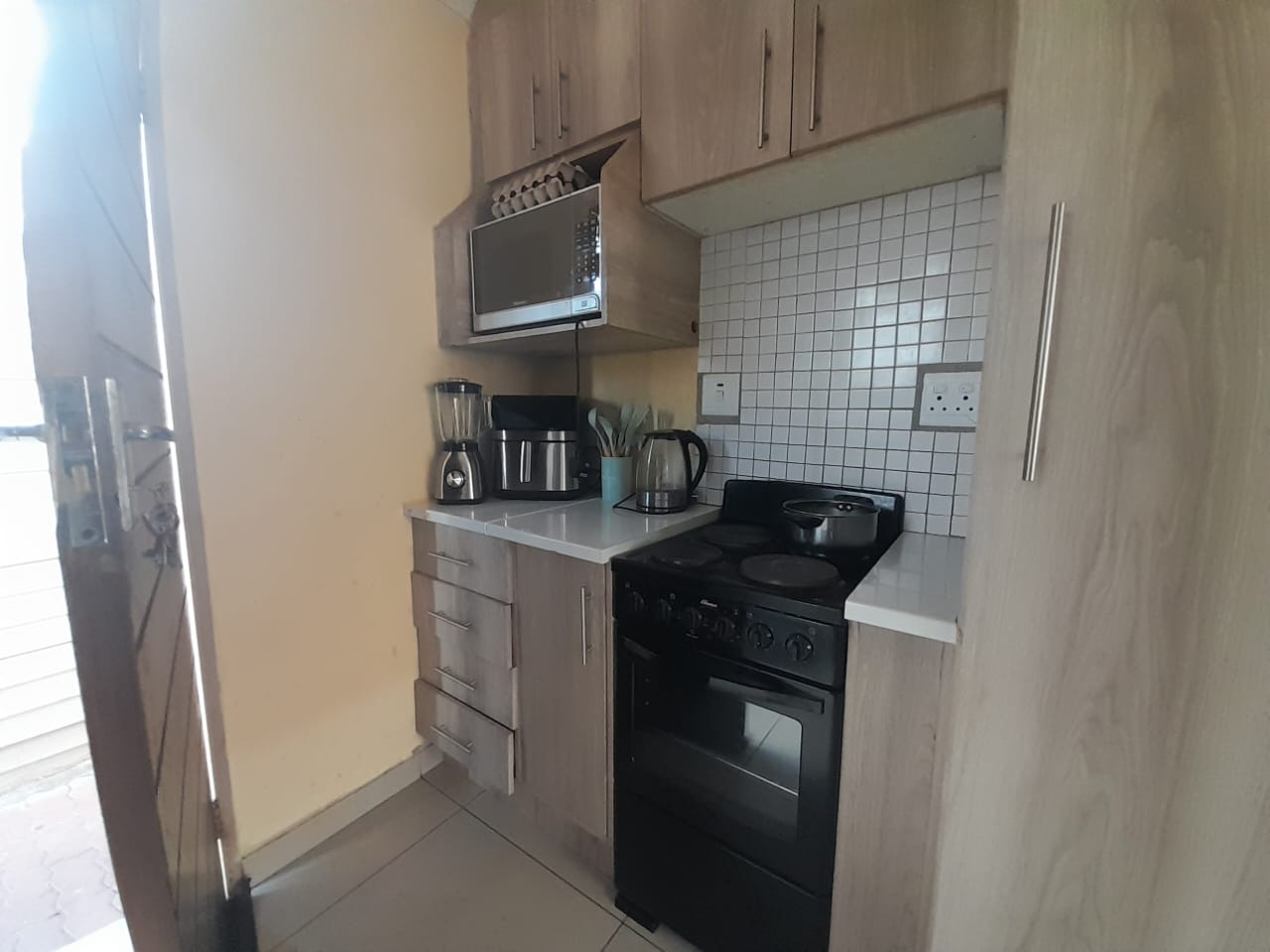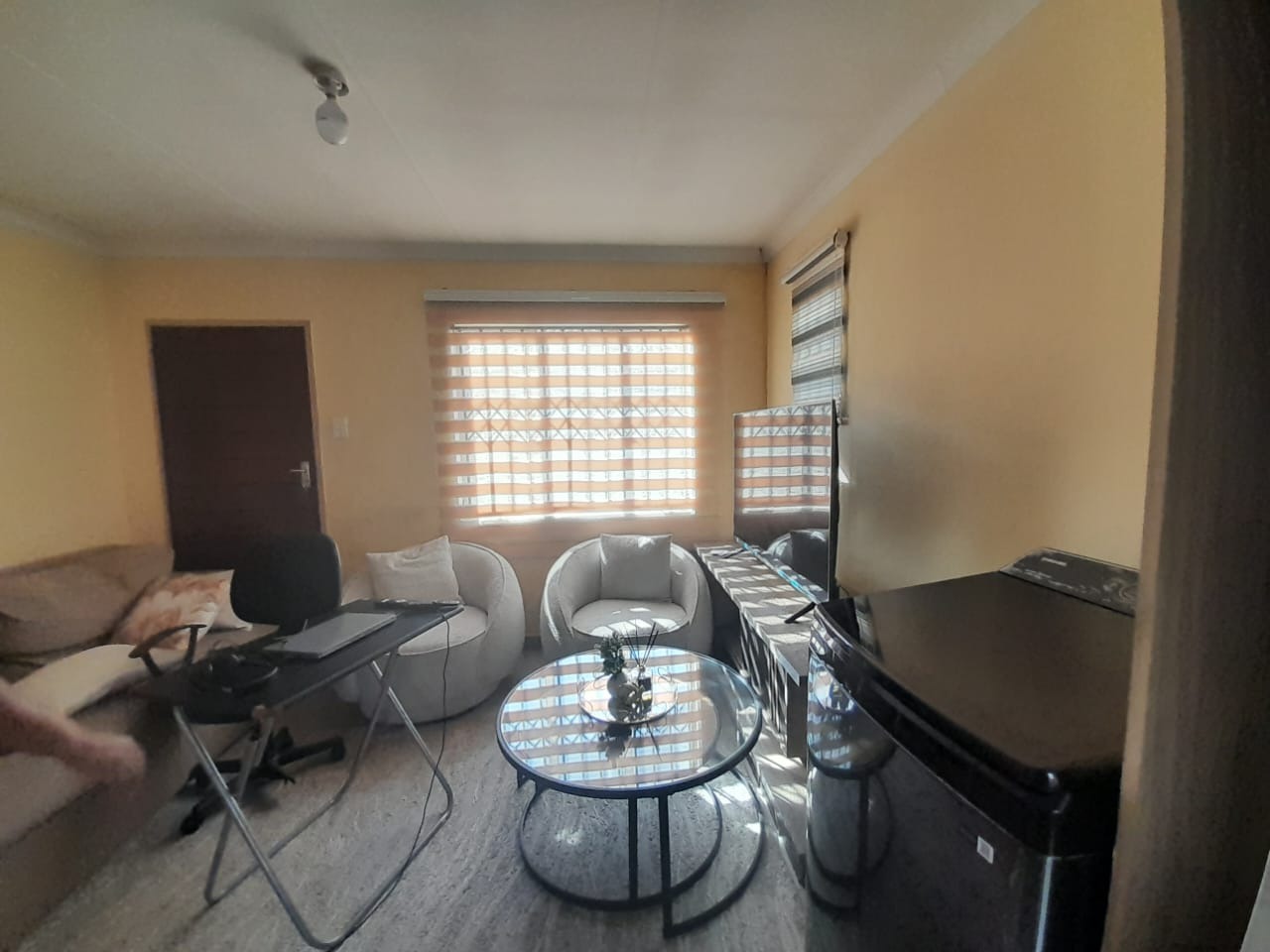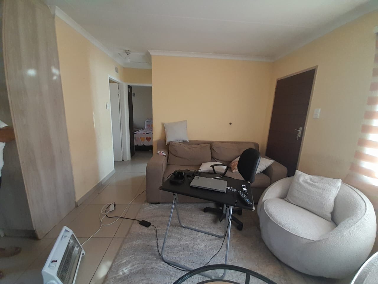 This property is located in a beautiful, clean and quiet neighborhood in Sky City. This property offers an adorable open plan living space. The kitchen that boasts neatly done cabinets with a granite counter top, an electric stove/oven. This home also offers two good size bedrooms with built-in cabinet in one of them and a wardrobe in the second bedroom . The neat bathroom comes with a bath, basin and toilet.