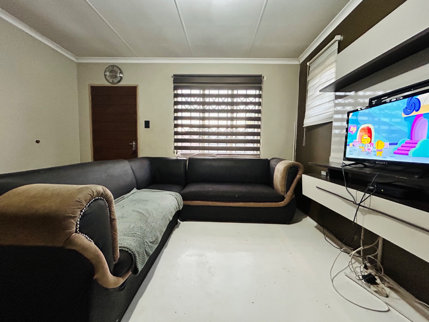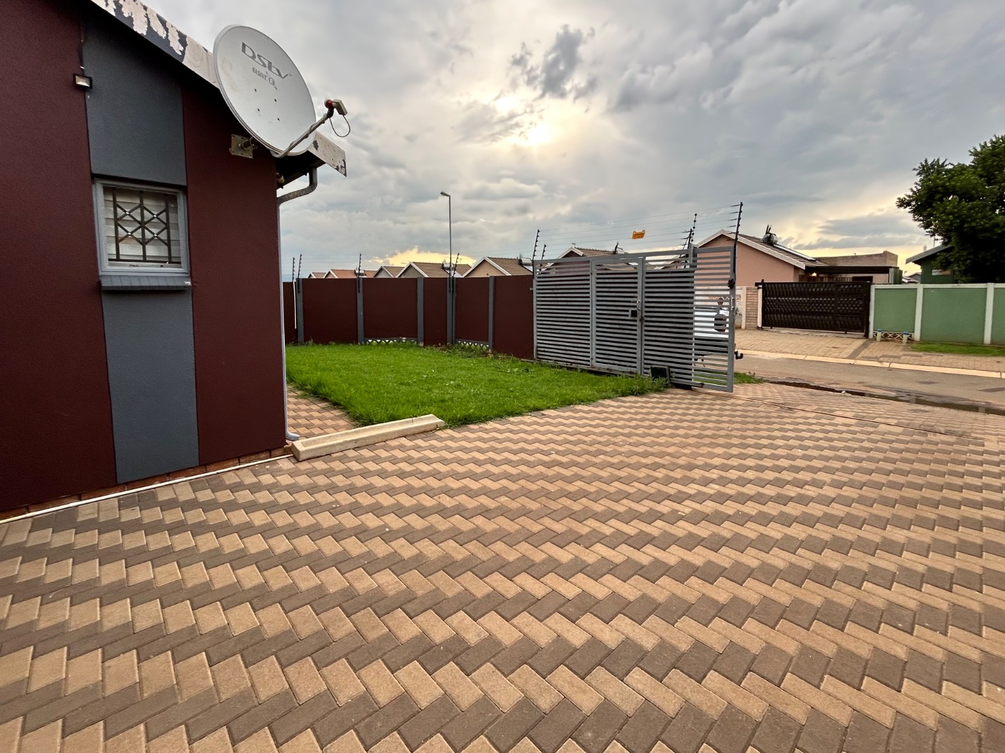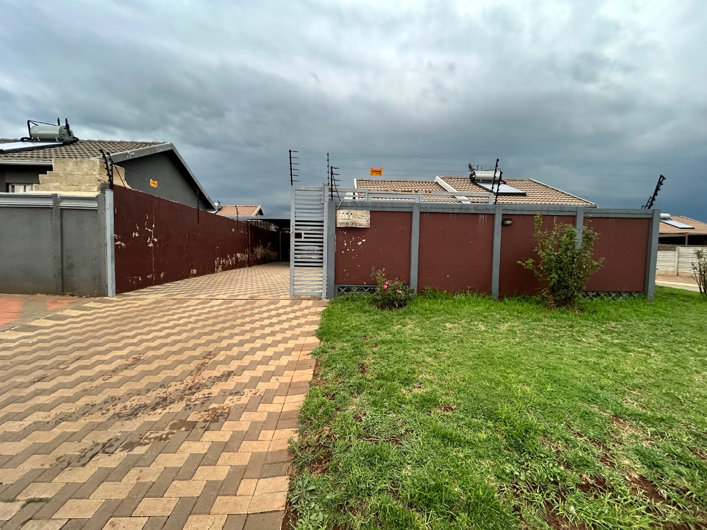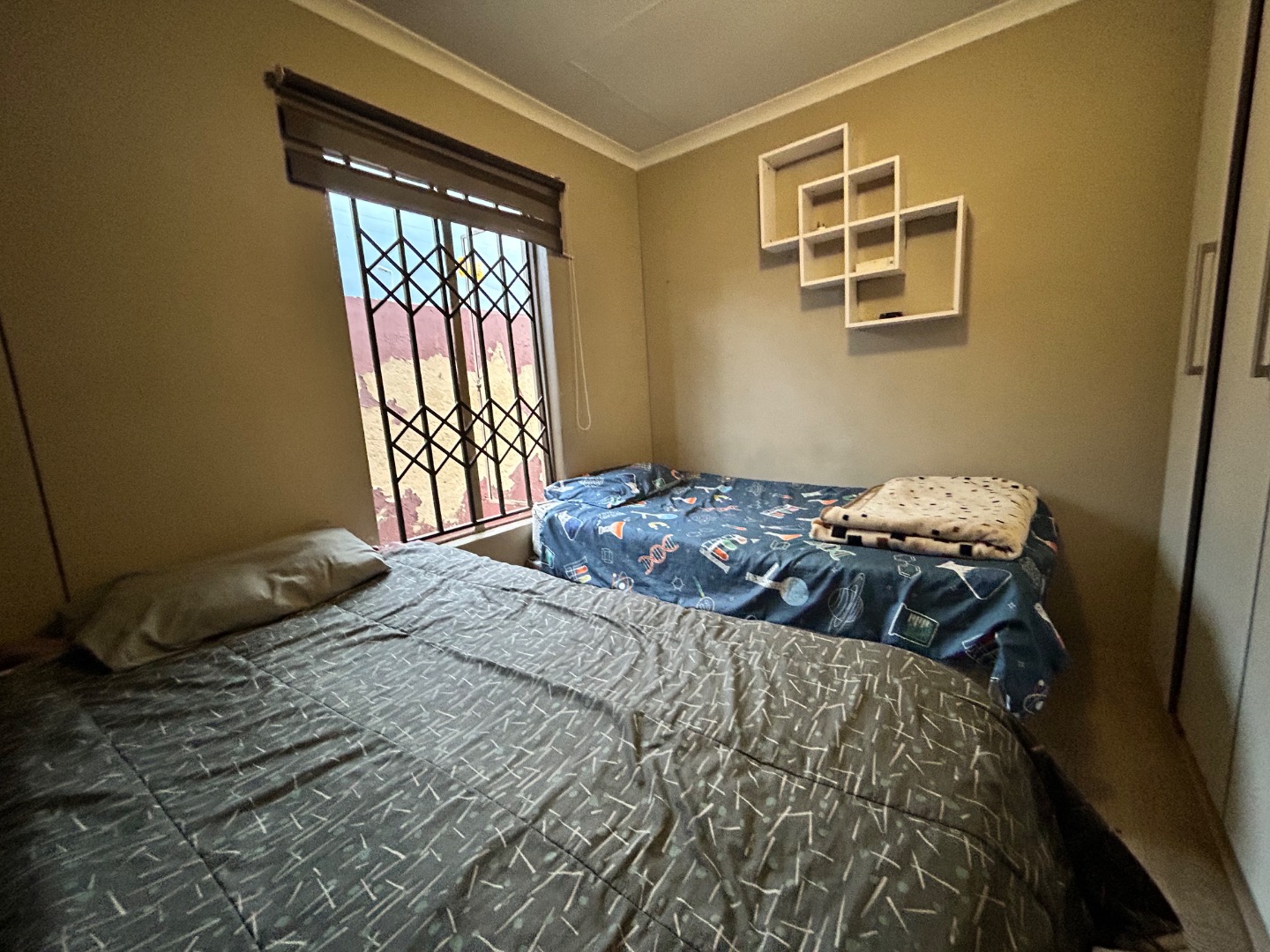 Security is a key highlight, with a fenced perimeter featuring electric fence elements, robust burglar bars on windows, and a security gate on the main door, providing peace of mind. Energy efficiency is also considered with a solar water heater installed on the roof. Sky City is a growing residential area in Alberton, known for its community atmosphere and accessibility to local amenities.
