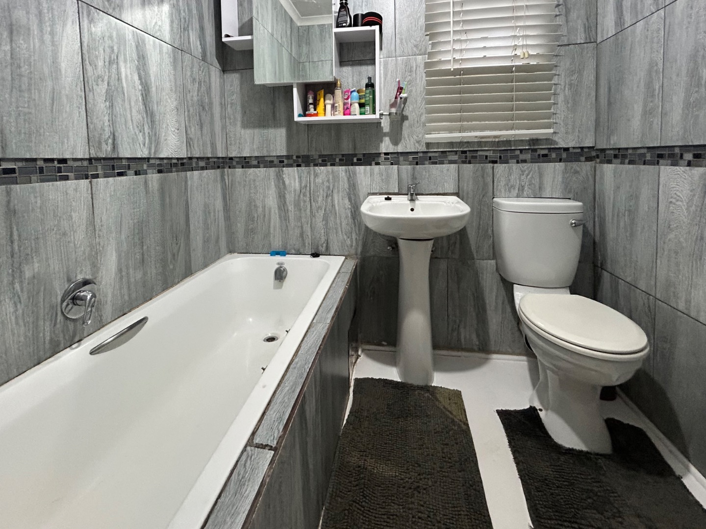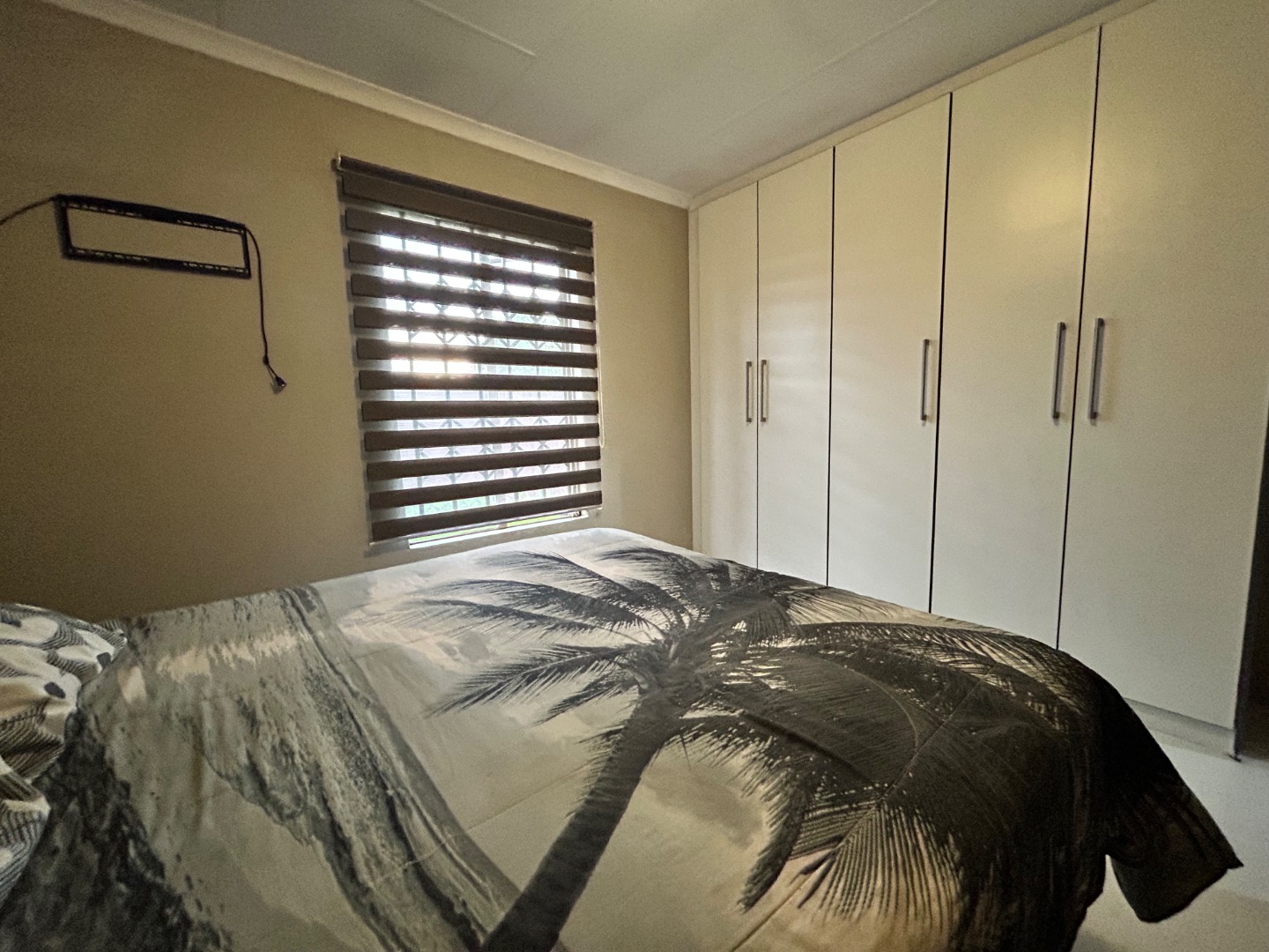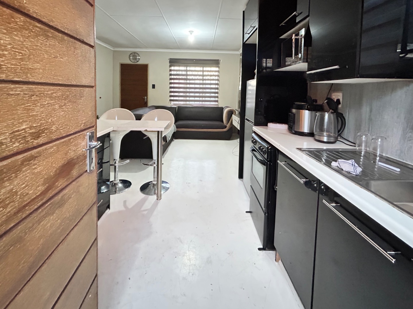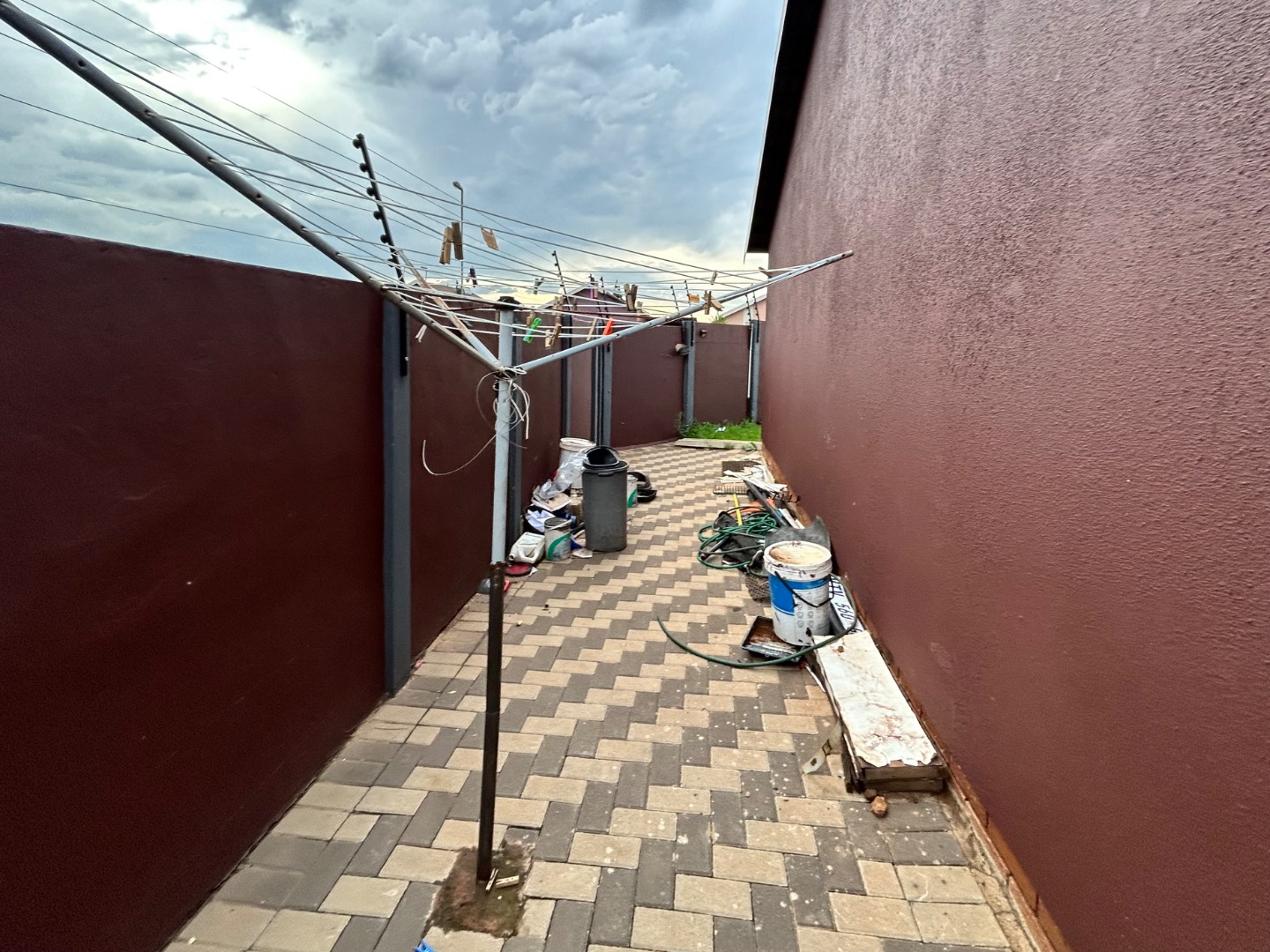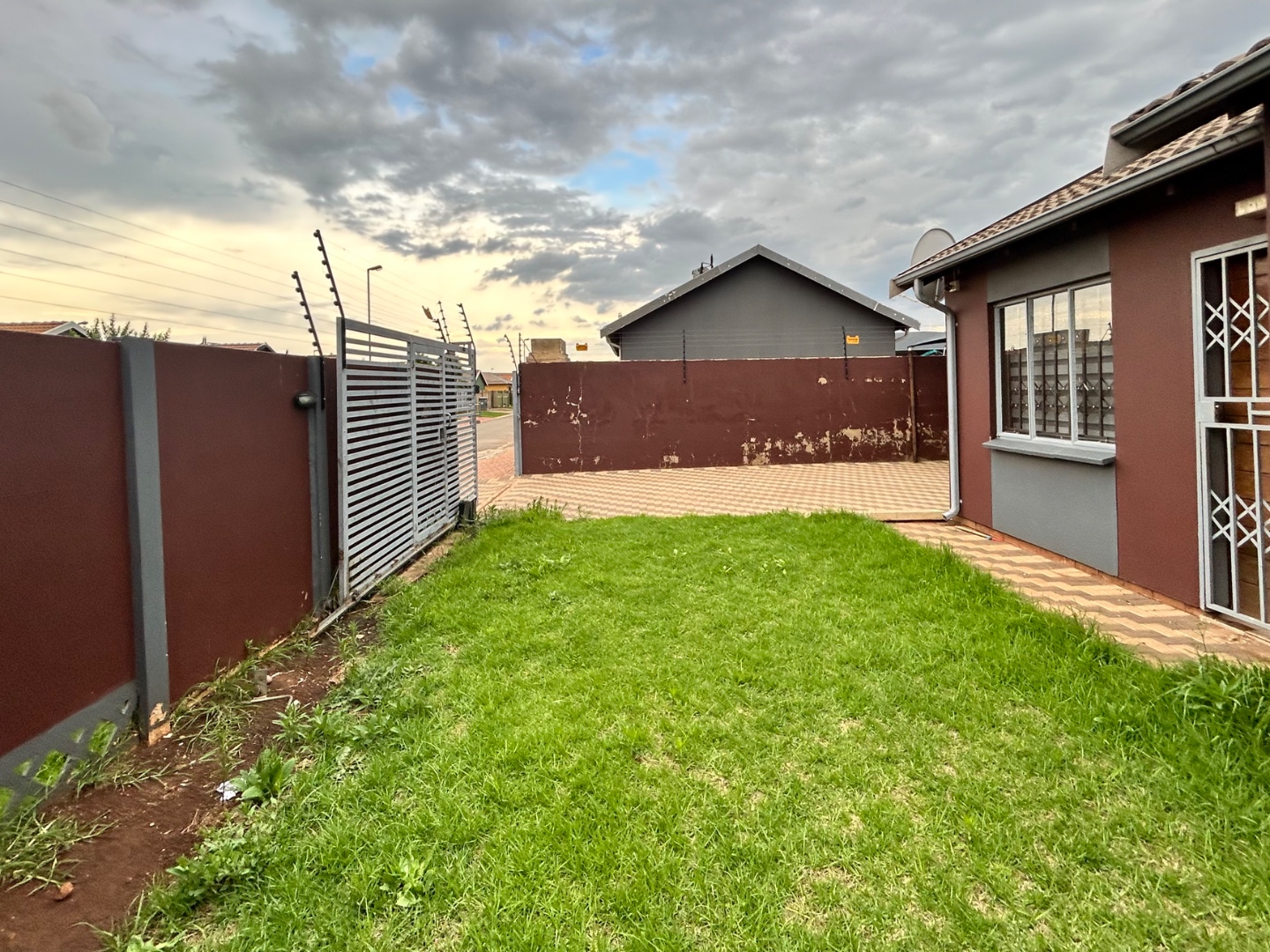 Security is a key highlight, with a fenced perimeter featuring electric fence elements, robust burglar bars on windows, and a security gate on the main door, providing peace of mind. Energy efficiency is also considered with a solar water heater installed on the roof. Sky City is a growing residential area in Alberton, known for its community atmosphere and accessibility to local amenities.
