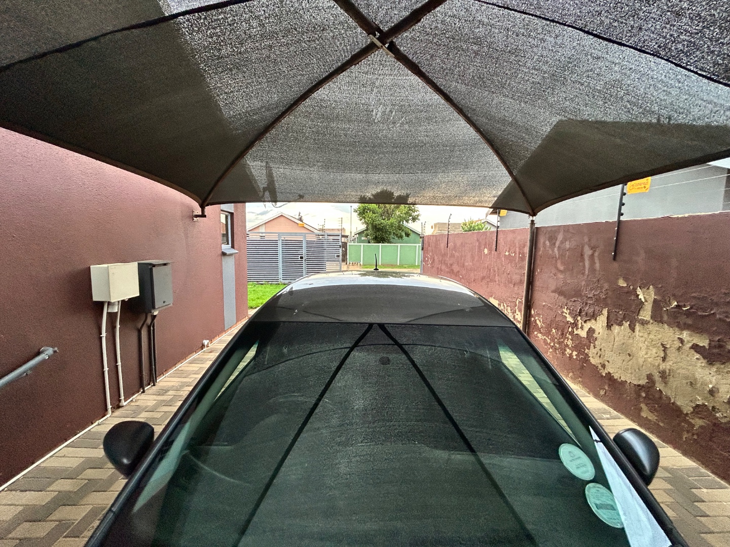 Discover this inviting two-bedroom, one-bathroom home situated in the vibrant suburban community of Sky City, Alberton. This property offers a blend of modern aesthetics and practical living, ideal for individuals or small families seeking comfort and security. The exterior presents a neat appearance with a recently painted facade, a paved driveway, and a convenient carport providing sheltered parking.