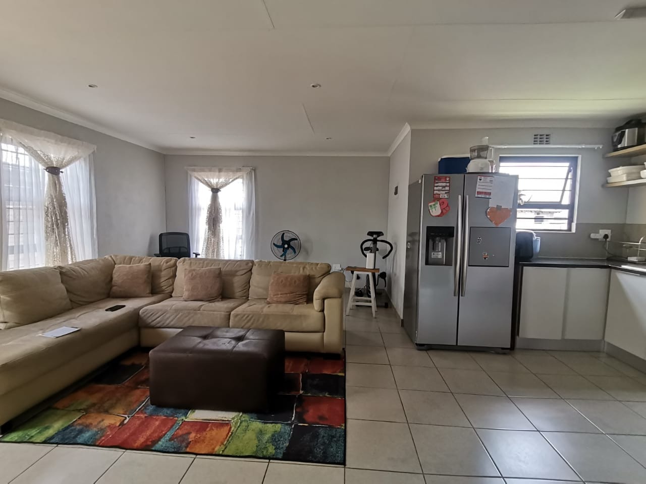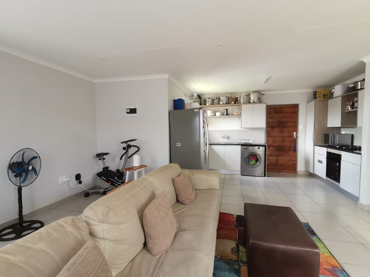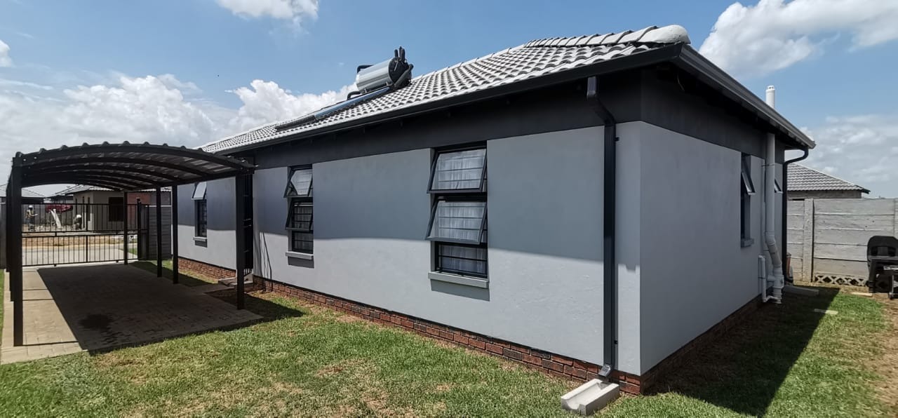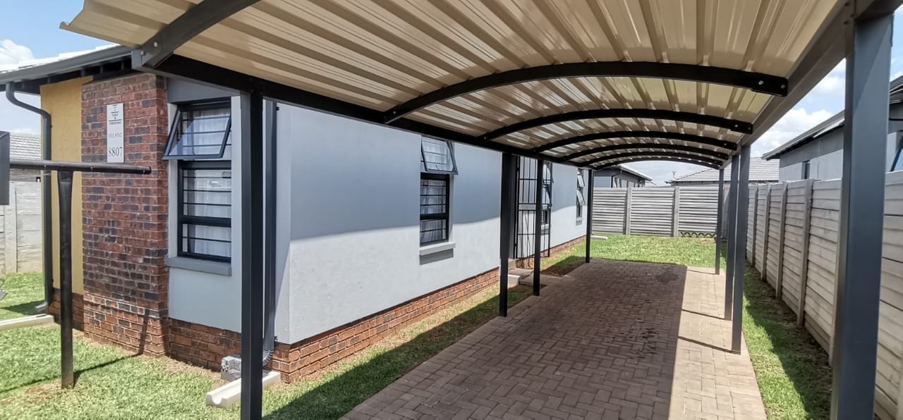 The outside has a carport and good size yard. The estate has strict security measures in place and a 24h Guard at the entrance. The estate has sport park facilities for kids and adults alike to enjoy the outdoors. water and electricity are pre-paid.