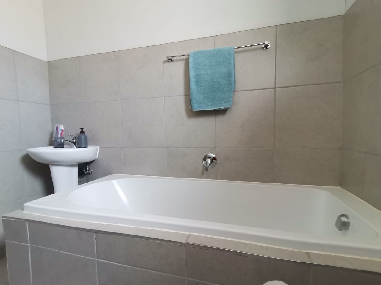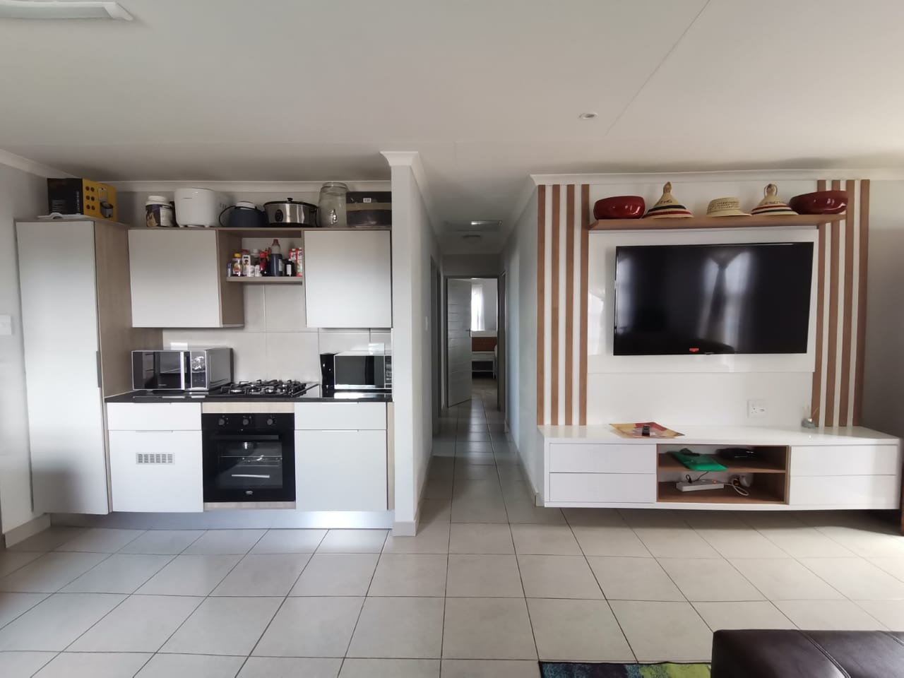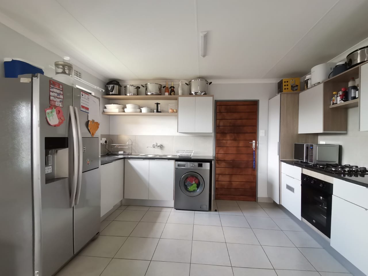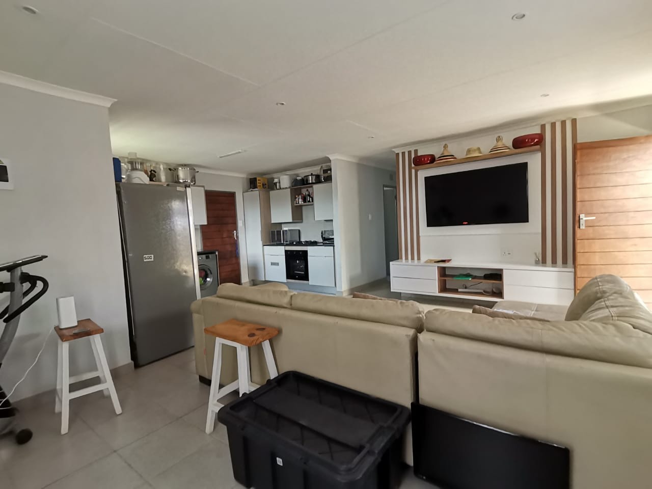 The outside has a carport and good size yard. The estate has strict security measures in place and a 24h Guard at the entrance. The estate has sport park facilities for kids and adults alike to enjoy the outdoors. water and electricity are pre-paid.