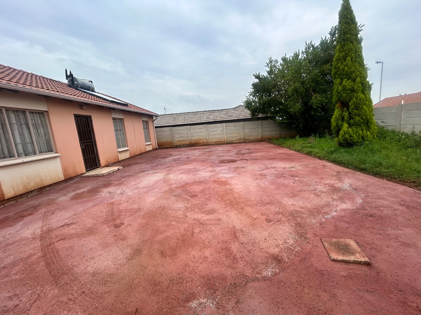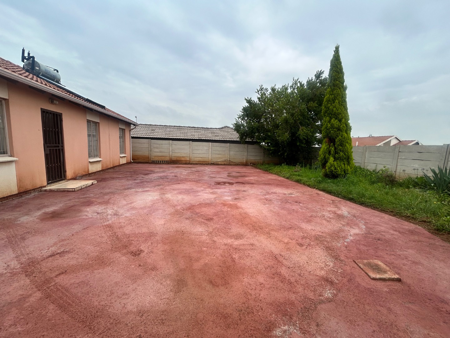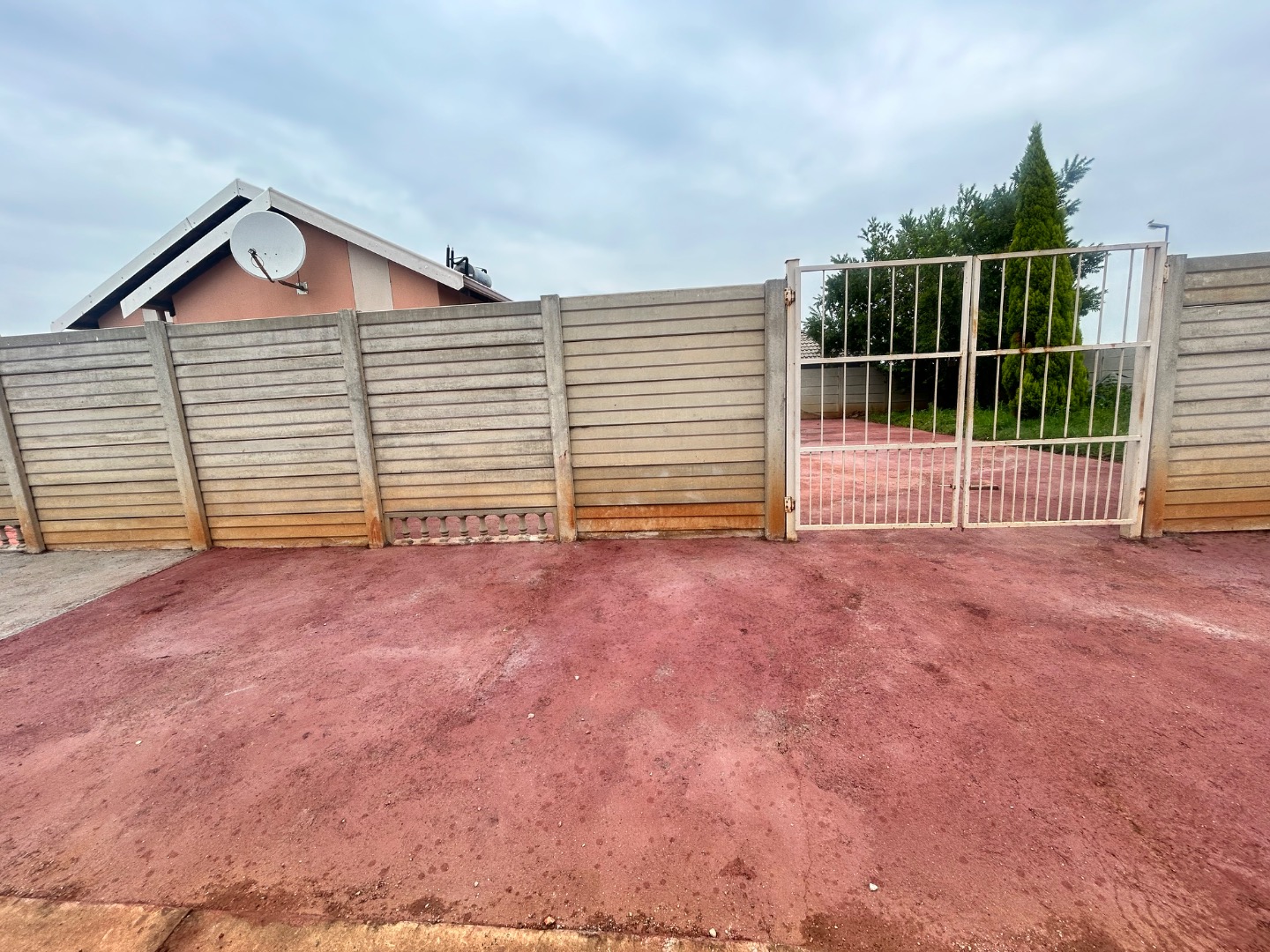 Nestled in the suburban community of Sky City, Alberton, this property offers a practical living solution in a developing area of South Africa. The single-story residence features a welcoming peach-colored exterior and a well-maintained tiled roof. Security is paramount, with fitted security bars on windows and a robust security gate on the main door, complemented by a concrete perimeter fence for privacy.
