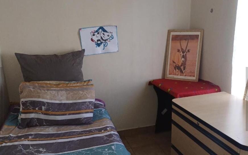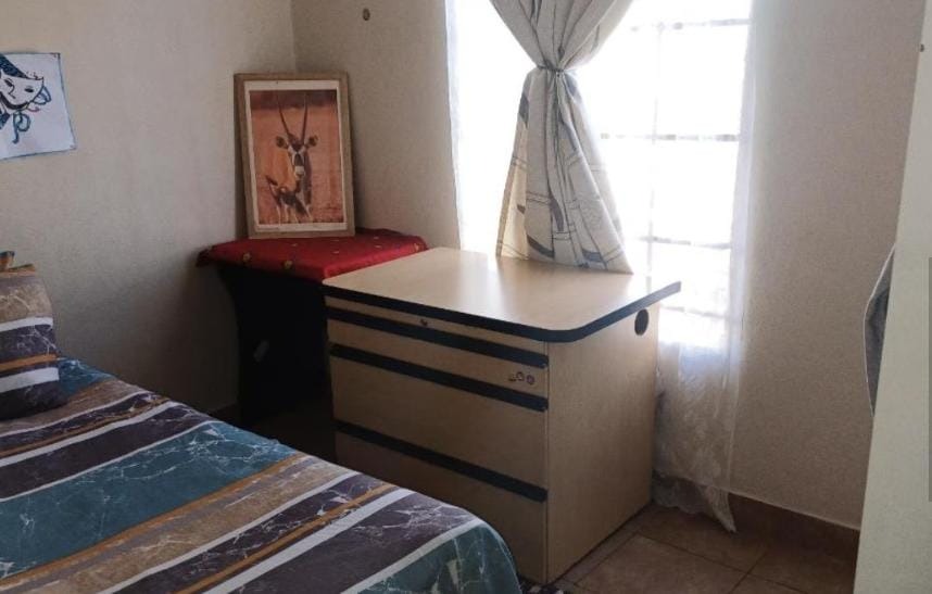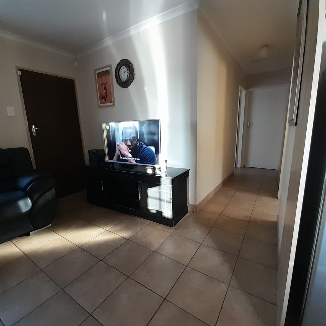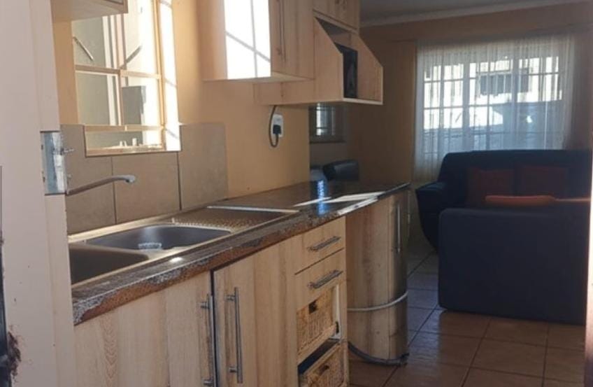 Discover this inviting three-bedroom, two-bathroom home located in the developing community of Sky City, Alberton. Designed for practical living, the residence features an open-plan layout that seamlessly connects the living and dining areas with the kitchen. The main living space benefits from ample natural light through a large window, complemented by durable tiled flooring throughout. The kitchen is equipped with modern wood-grain cabinetry, dark countertops, an integrated hob and range hood, and a double sink, offering functional storage and preparation space. While some areas show signs of wear, they present an opportunity for personalization. The property offers three comfortable bedrooms, including one with an en-suite bathroom, providing privacy and convenience. Each bedroom is designed to receive natural light, with functional layouts that can accommodate various furnishing styles. The bathrooms are well-appointed to serve the household's needs. Externally, the property boasts a fully paved yard, ensuring low maintenance and providing a neat outdoor space. Security is a key feature, with high boundary walls, security gates, and burglar bars on windows, offering peace of mind. The home also includes two garages and two additional parking spaces, catering to multiple vehicles. Pets are allowed, making it suitable for animal lovers. Sky City in Alberton is a growing residential area, offering a convenient location for families and individuals seeking an accessible lifestyle within South Africa. This property provides a secure and functional base for its next owners. Key Features: * 3 Bedrooms, 2 Bathrooms (1 en-suite) * Open-plan living and dining area * Functional kitchen with modern cabinetry * Fully paved, low-maintenance exterior * High boundary walls, security gates, and burglar bars * 2 Garages and 2 additional parking spaces * Pet-friendly environment * Located in Sky City, Alberton